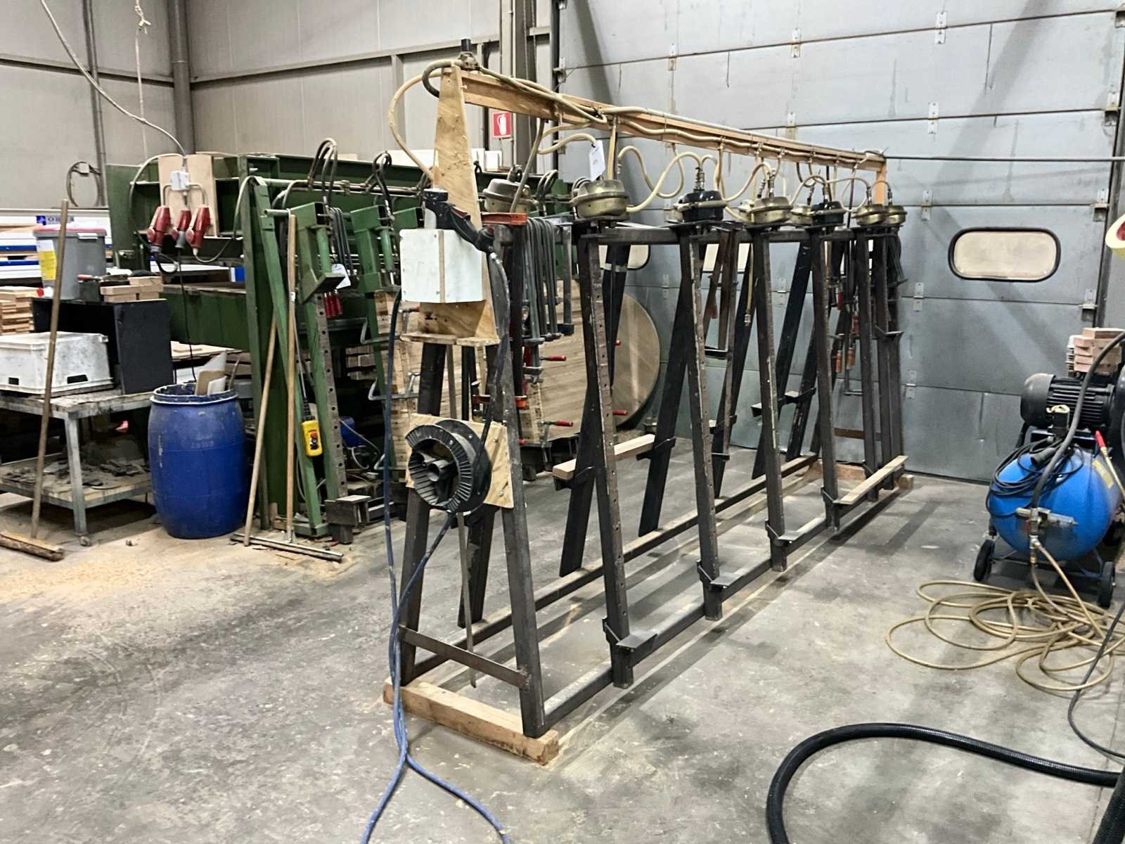 Werkhoogte 15 mogelijkheden, 11x pneumatisch klem, diverse lijmklemmen, Pneumatisch lijmpistool, 5x ongebruikte luchtaansluiting Nee Werkbreedte: 3500mm Werkhoogte: 1500mm