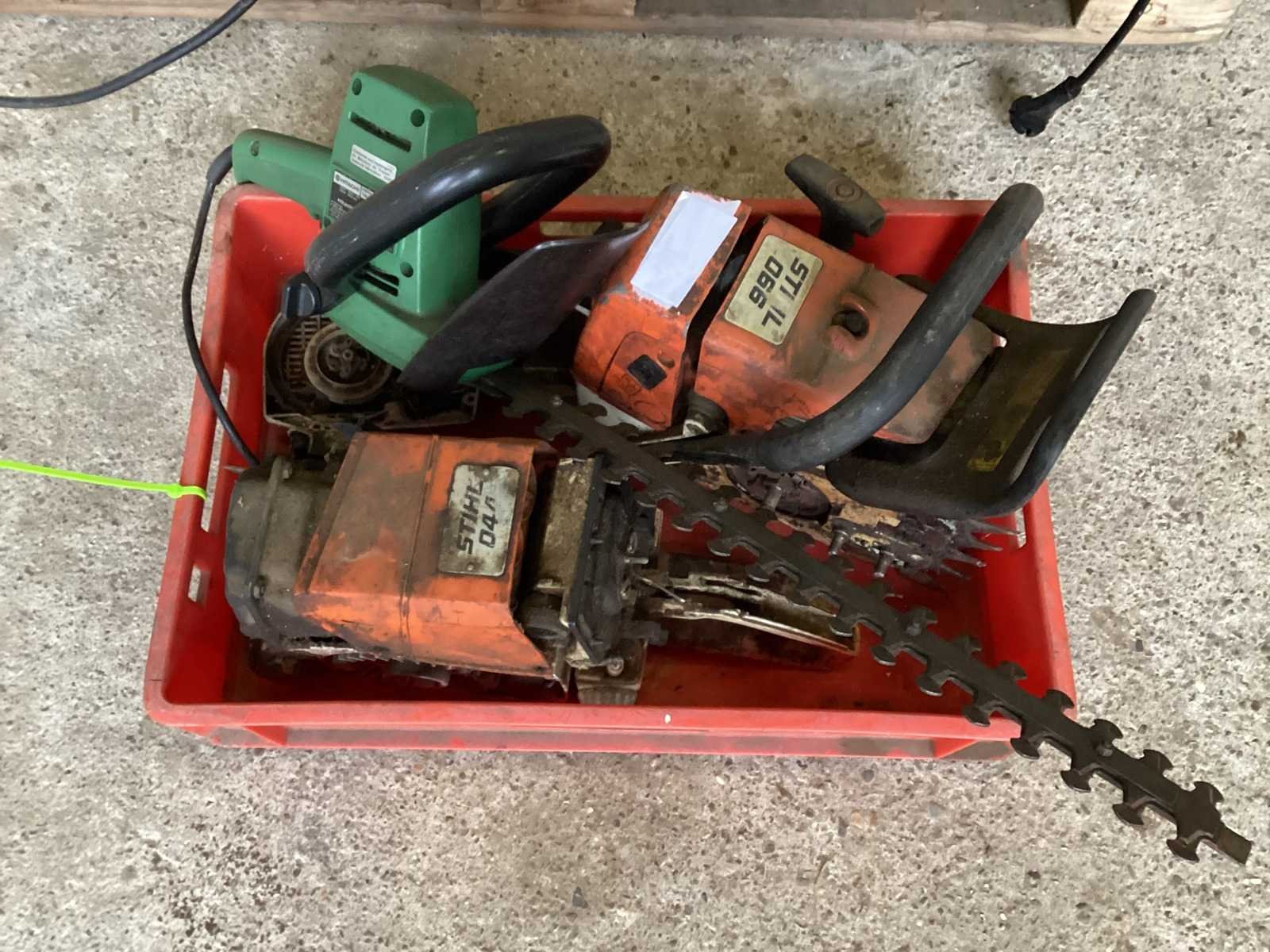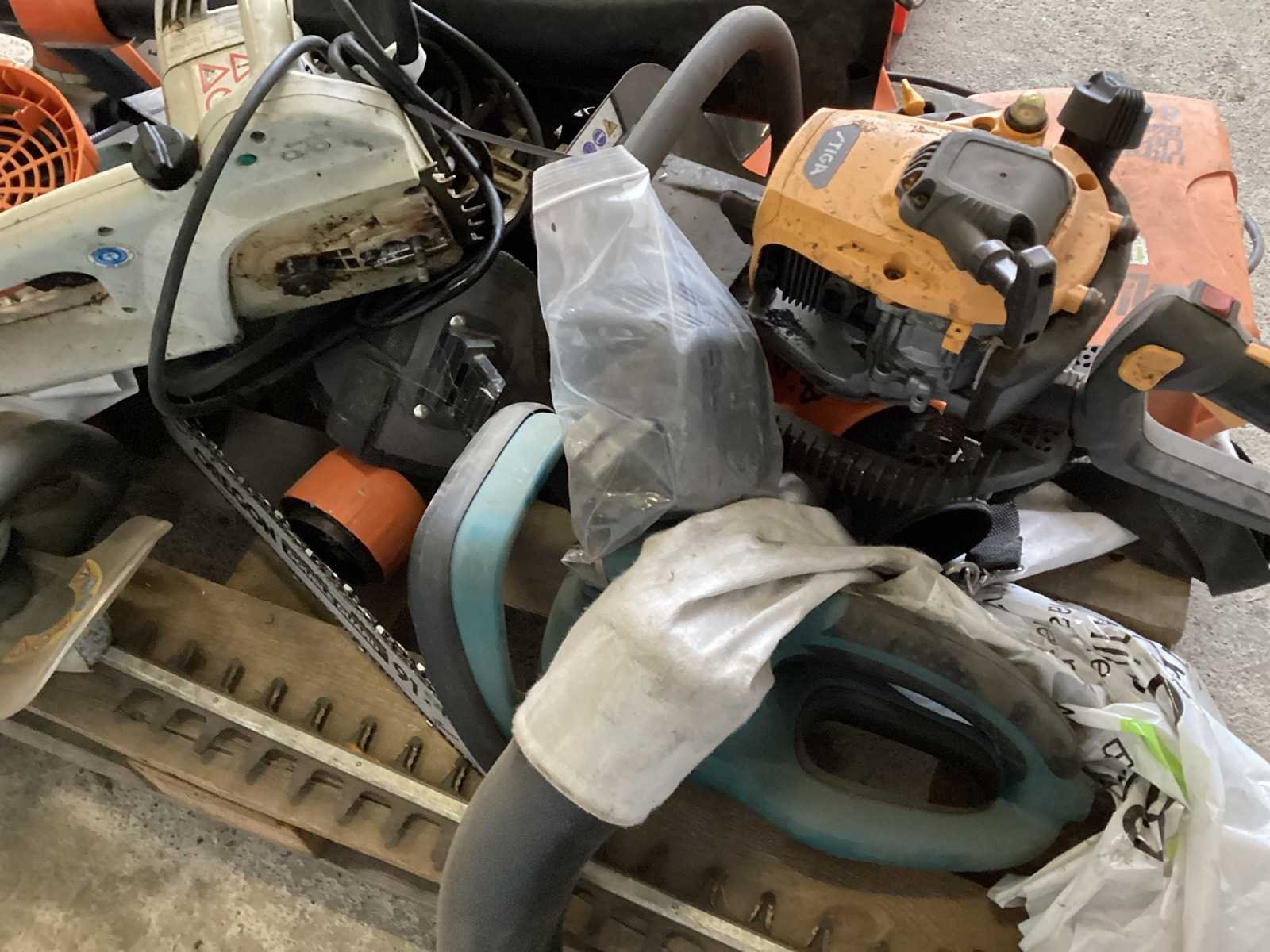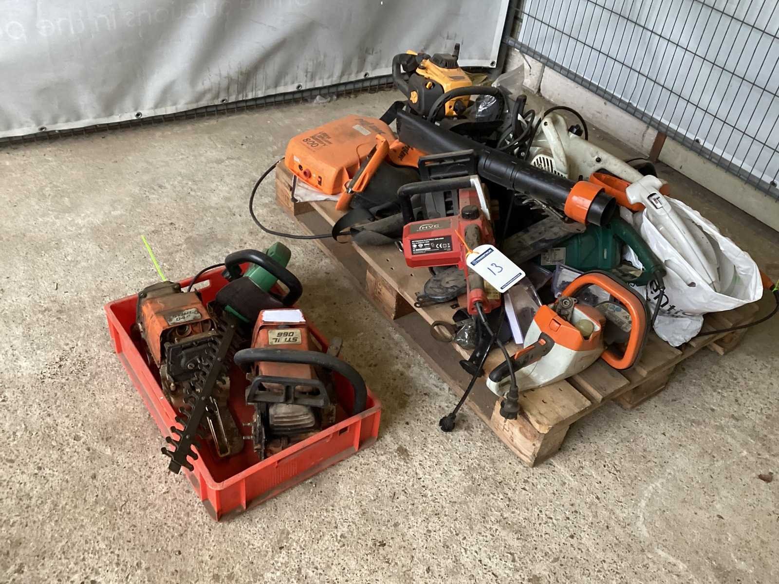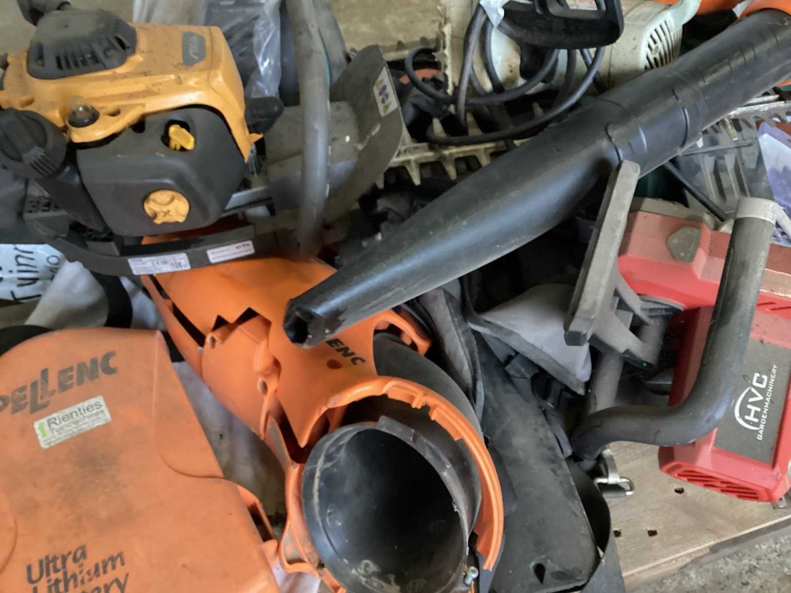 Diverse machines op pallet , bladblazers, kettingzagen accugereedschap Nee