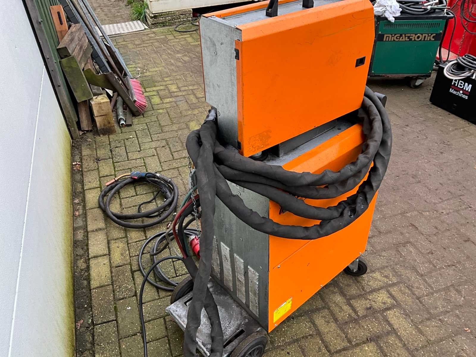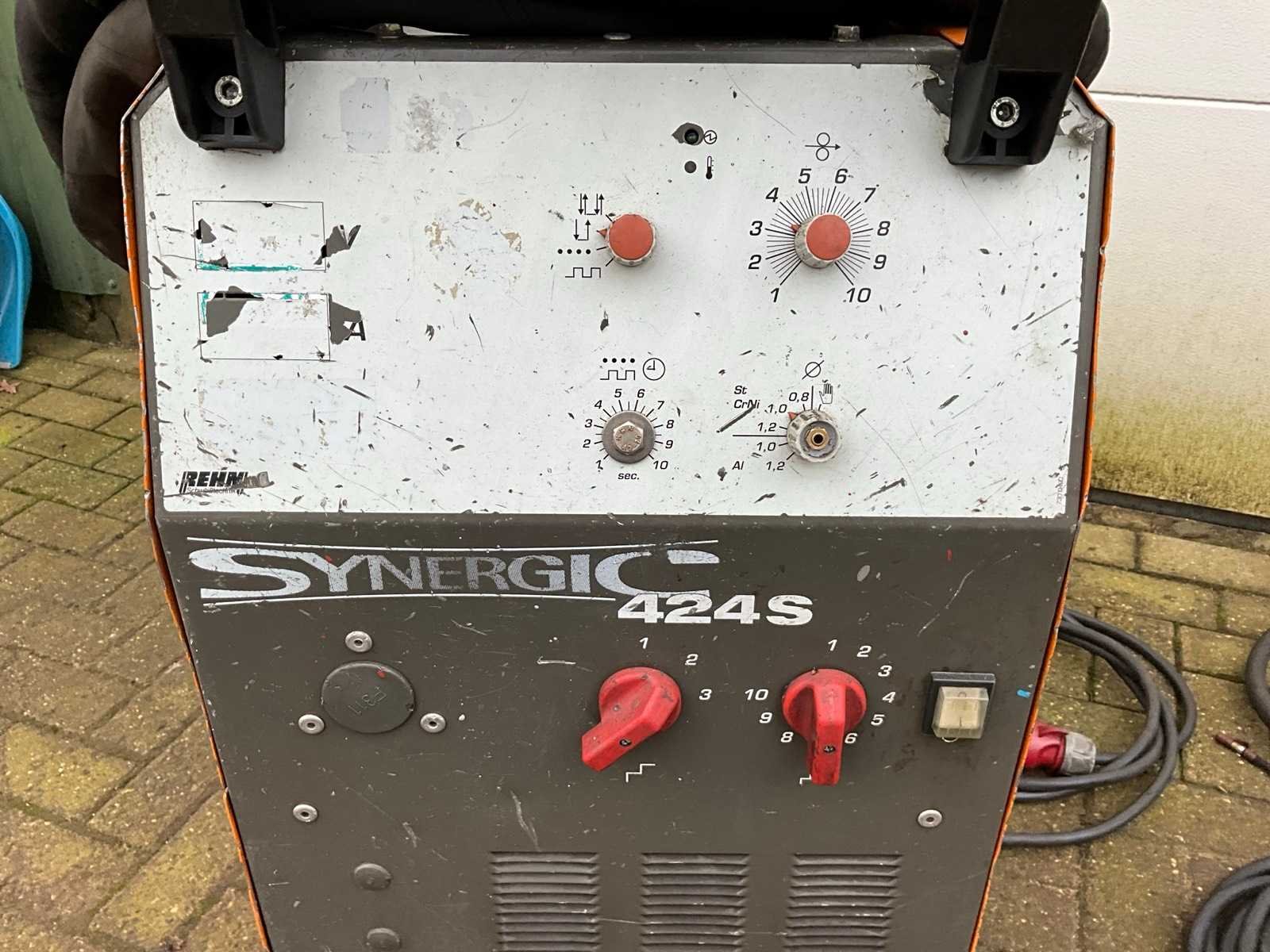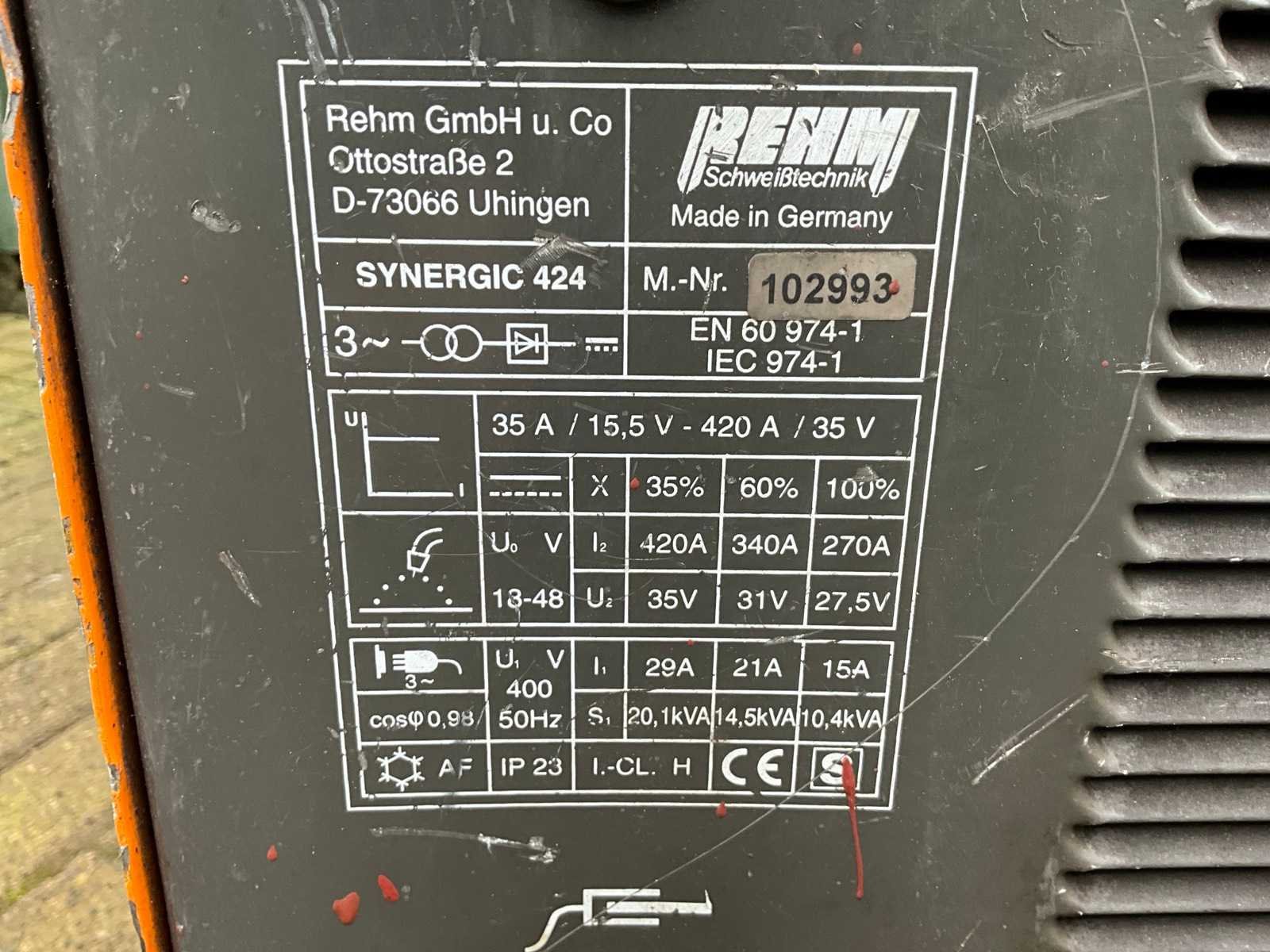 Nee Merk: Rehm Type: Synergic 424 S Max. lasvermogen: 420A Aansluiting: 380V Draadaanvoerunit: true Afmeting l: 1100mm Afmeting b: 500mm Afmeting h: 1500mm