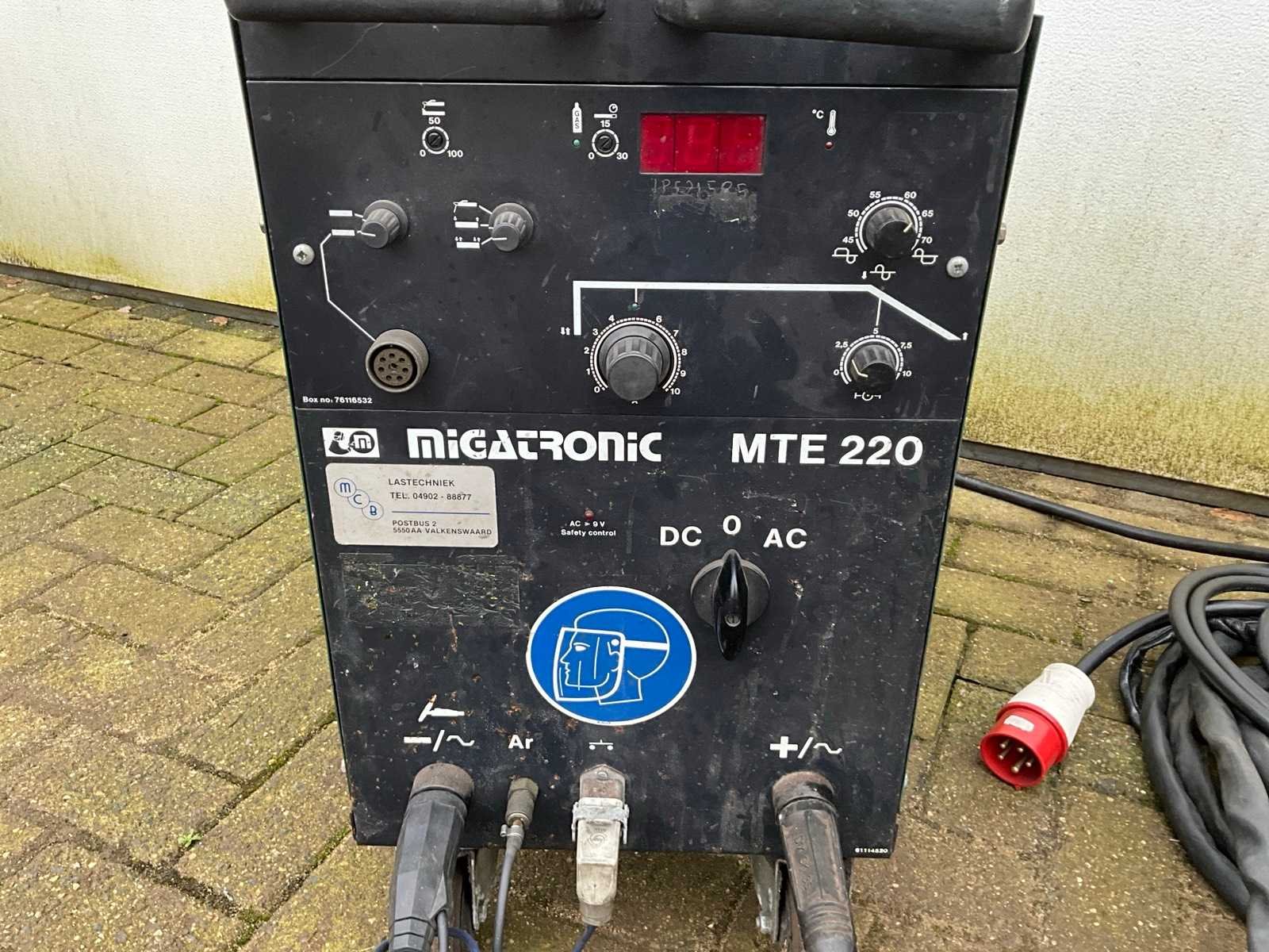 Nee Merk: Migatronic Type: MTE 220 Max. lasvermogen: 220A Aansluiting: 380V Afmeting l: 1200mm Afmeting b: 700mm Afmeting h: 900mm
