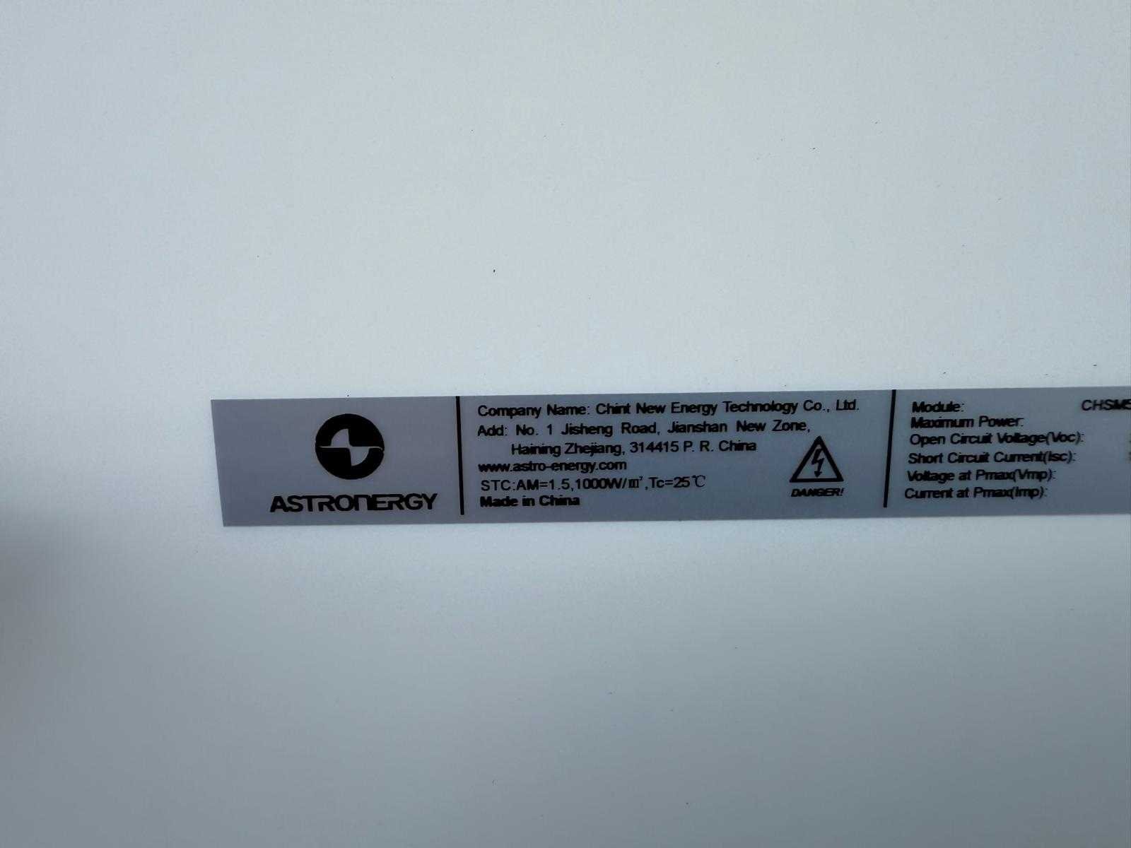 Set van 108 zonnepanelen (410 wp) met GoodWe GW36K-MT omvormer zonnepanelen: Astronergy CHSM54M-HC-410 omvormer: GoodWe GW36K-MT | met ARC detection (3 fase) totaal vermogen: 44.280 Wp vermogen: 410 Wp per zonnepaneel conditie: nieuw No Merk: Astronergy Type: CHSM54M-HC-410 Max. dc power: 410W Eigen gewicht: 22kg Totale afmeting L: 1722mm Totale afmeting Breedte: 1134mm Totale afmeting Hoogte: 30mm