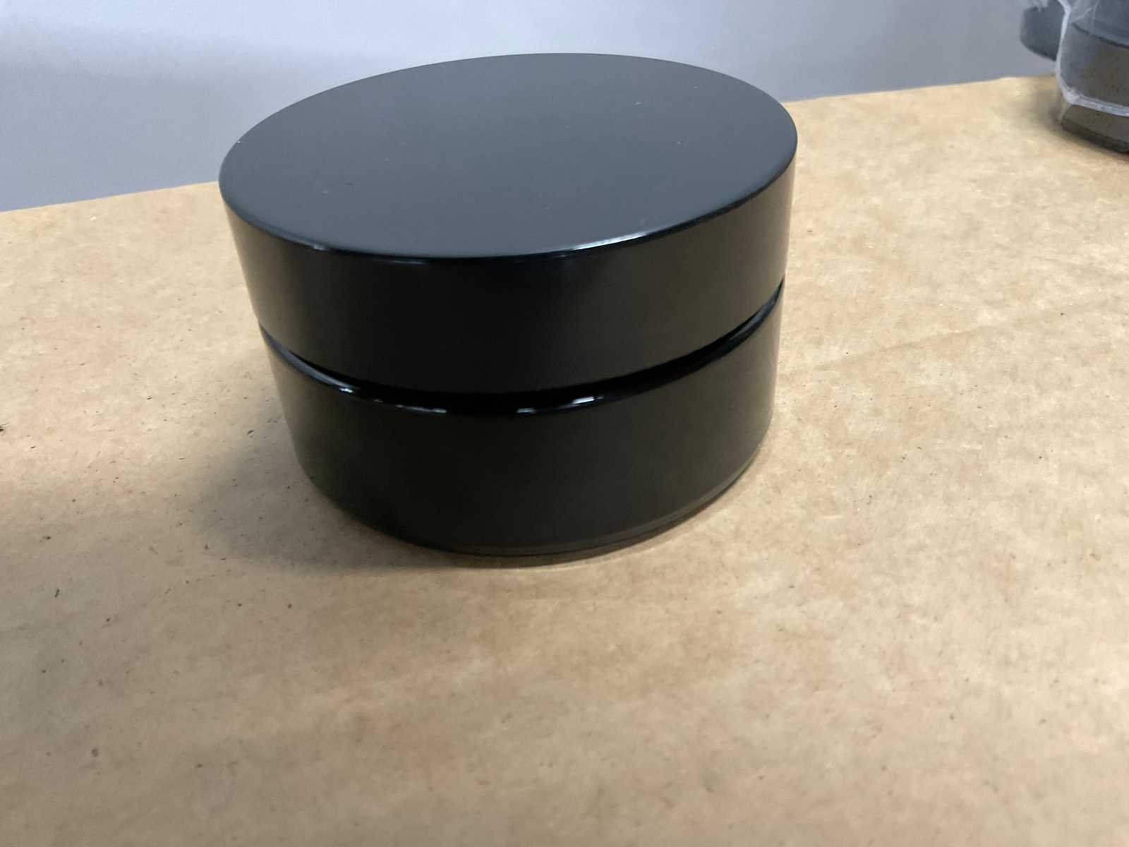 Partij violet glazen potjes met schroefdeksel en glazen pipetjes