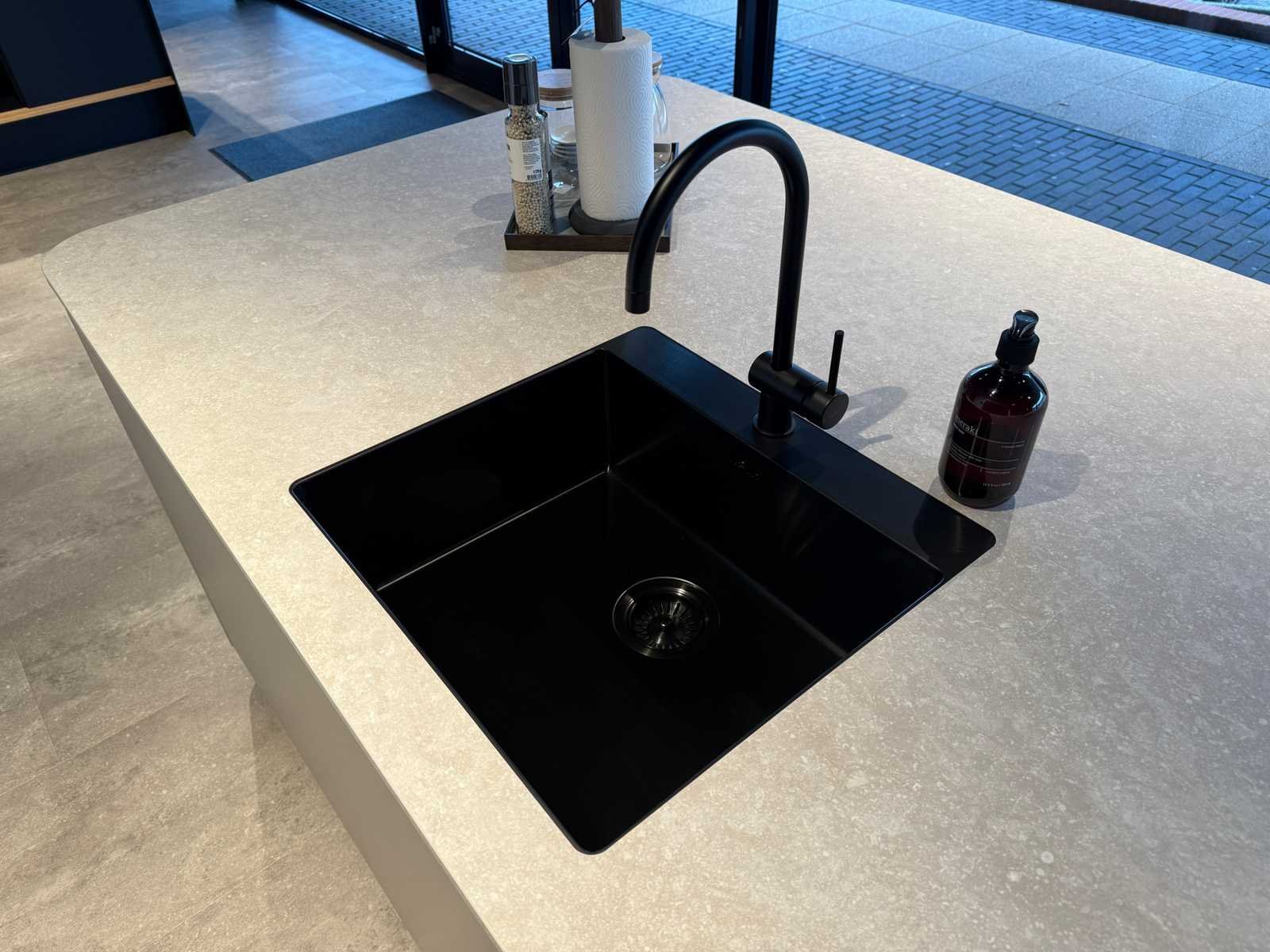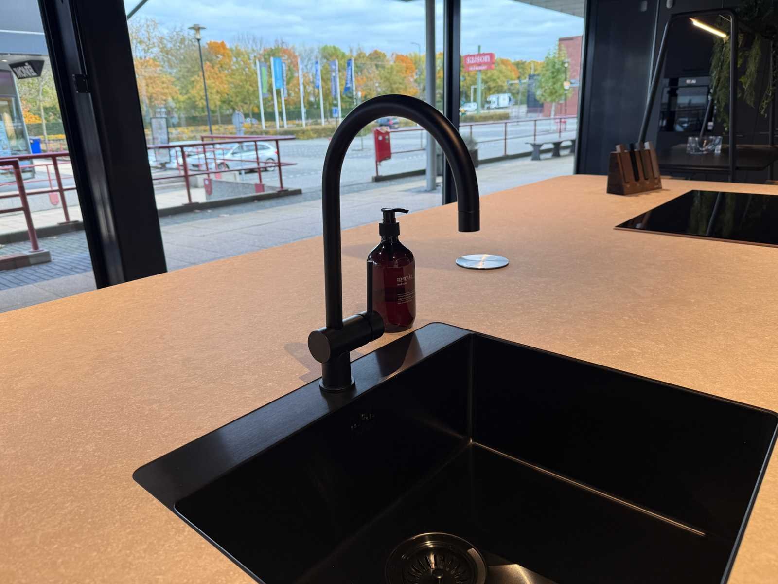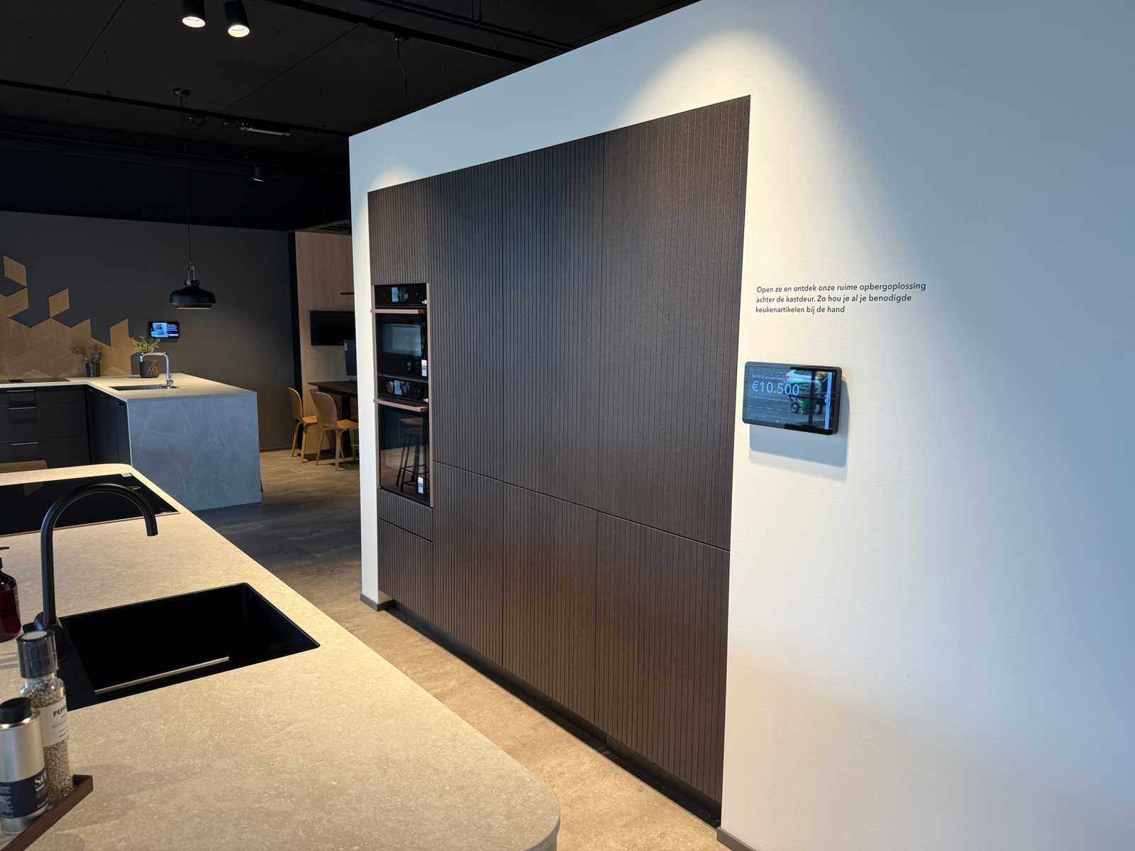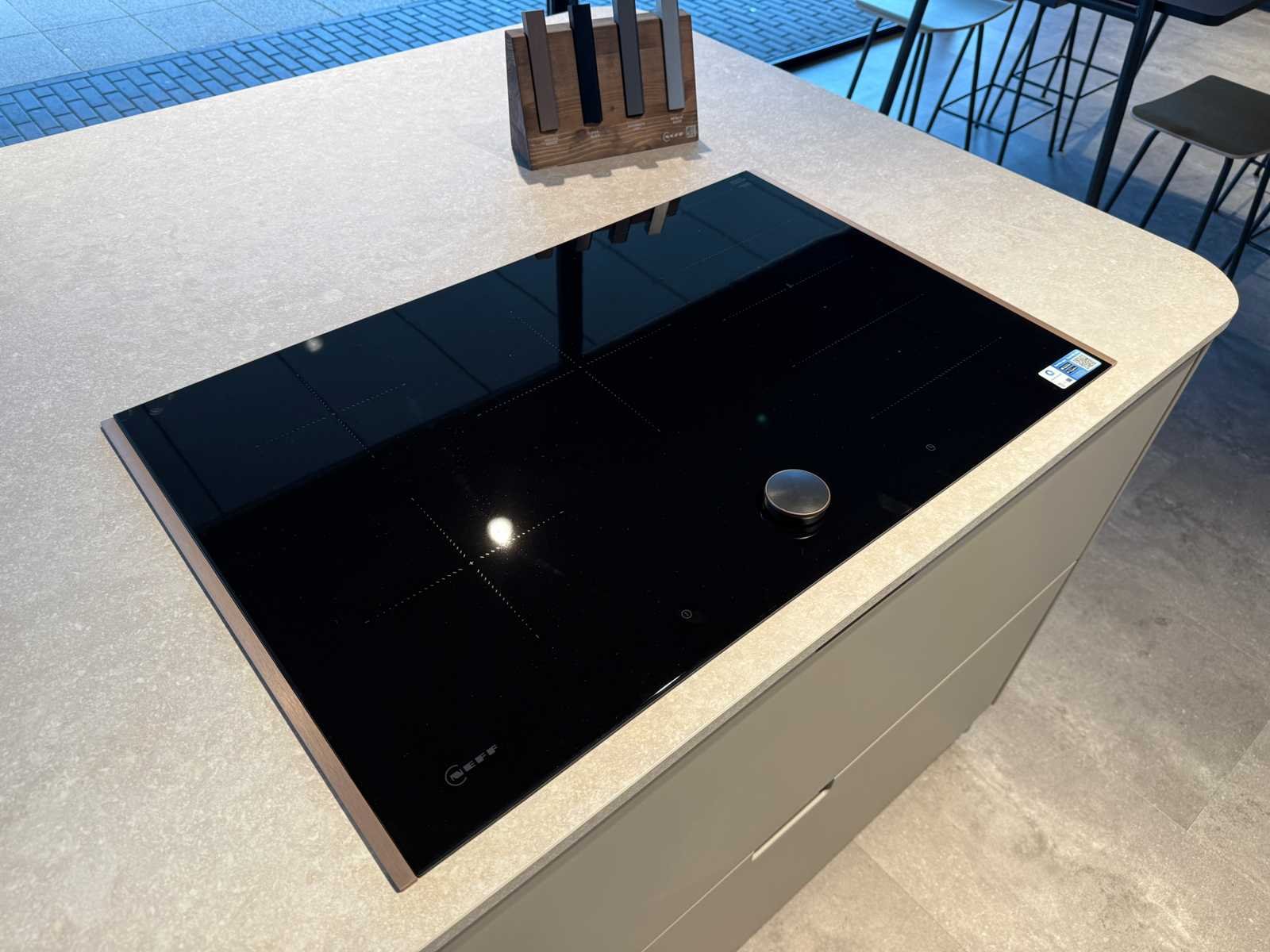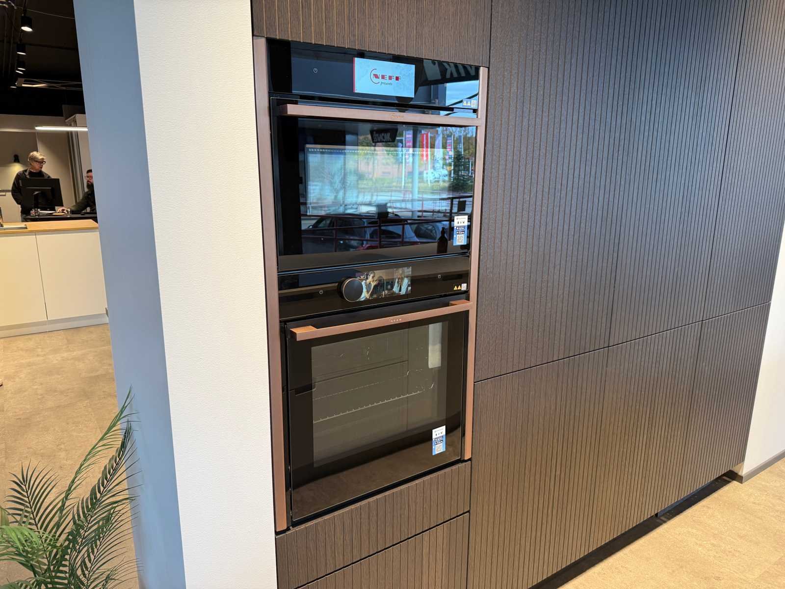 Keuken dient gedemonteerd te worden op locatie No Merk: Kvik Type keukenopstelling: Eiland Lengte: 240cm Breedte: 60cm Hoogte: 220cm Aanrechtblad: Kunststof Magnetron: Neff C29MY7MY0 Fornuis: Neff T69YYV4C0 Koelkast: Siemens KI81RSOE0 Vriezer: Siemens GI81NHNE0 Softclose: true Oven: Stoomoven Neff B69FY5CY0 Vaatwasser: Siemens SX85E801BE Lengte kookeiland: 320cm Breedte kookeiland: 110cm Hoogte kookeiland: 94cm Kleur: Evento arizona beige + Corisa dark oak
