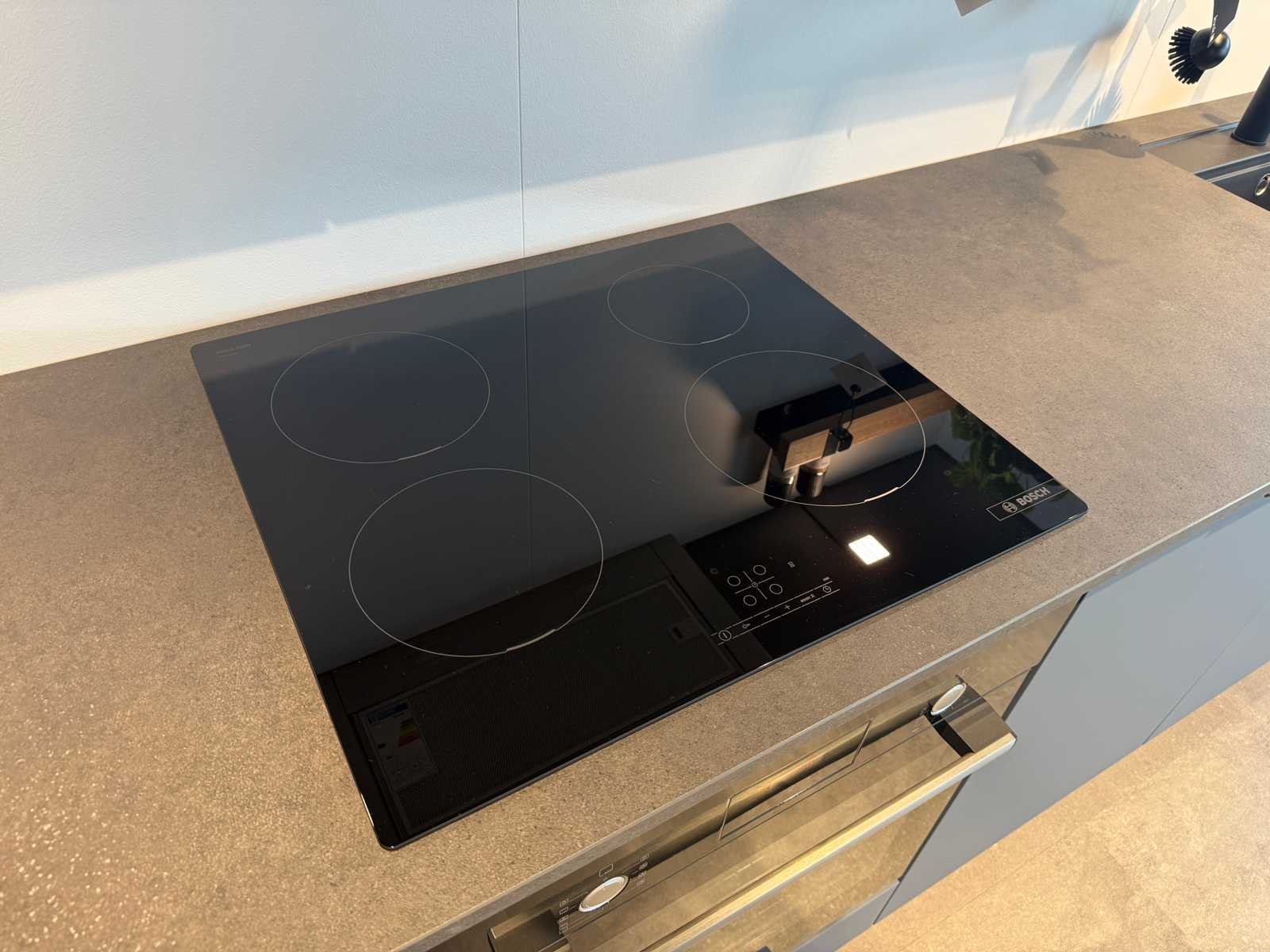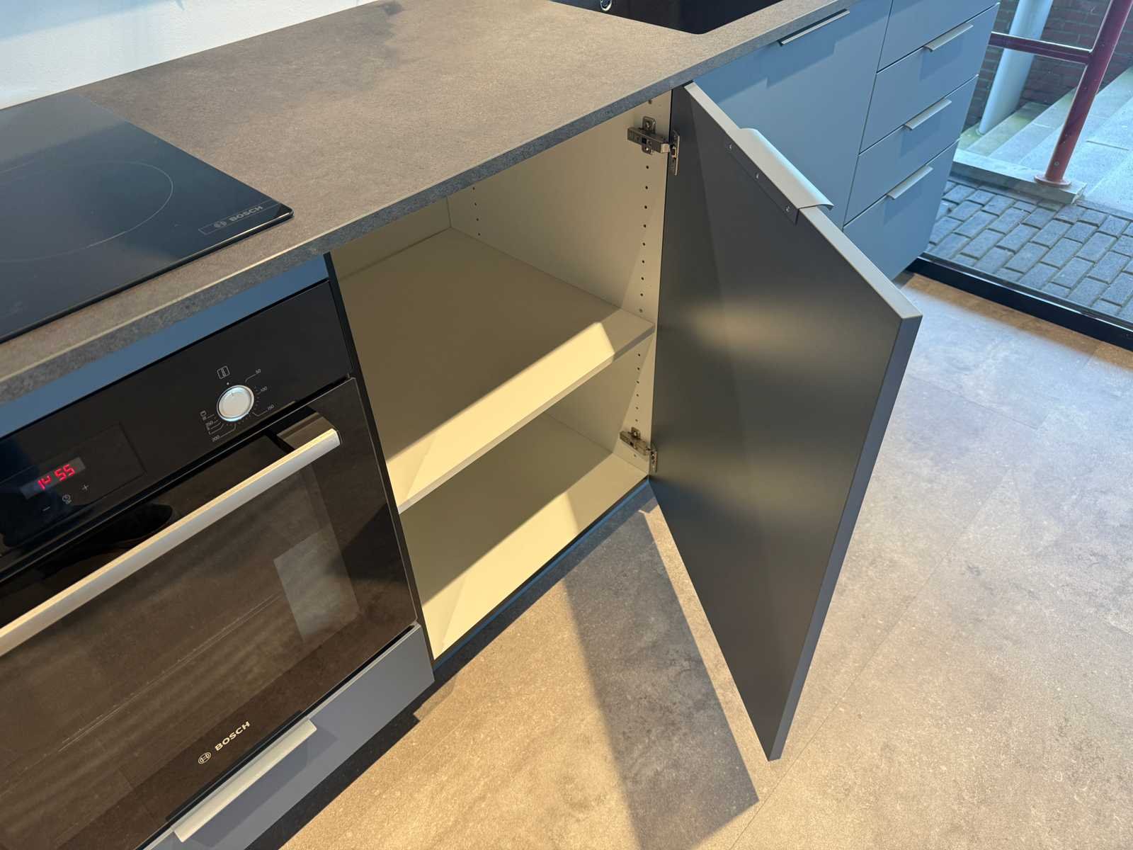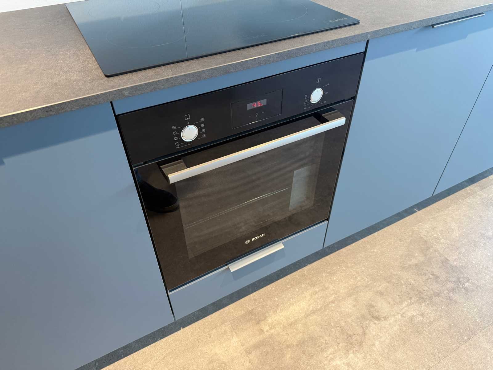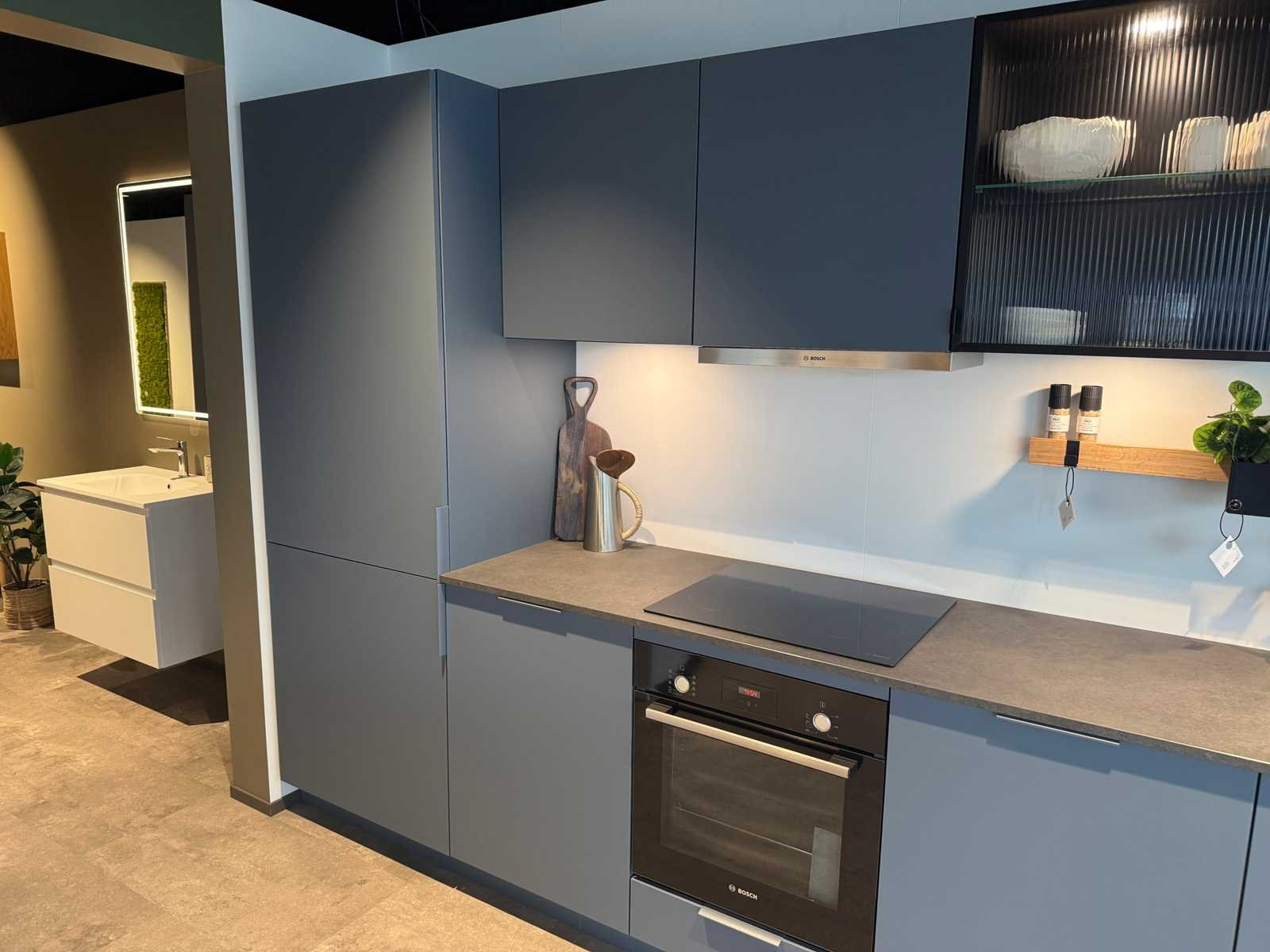 Keuken dient gedemonteerd te worden op locatie Nee Merk: Kvik Type keukenopstelling: Recht Lengte: 378,6cm Breedte: 60cm Hoogte: 220cm Werkblad hoogte: 94cm Aanrechtblad: Kunststof Fornuis: Bosch PUE611BB5D Koelkast: Siemens KB96NSDD0 Softclose: true Oven: Bosch HBF134EB1 Afzuigkap: Bosch DFM064W54 Kleur: Bordo blue