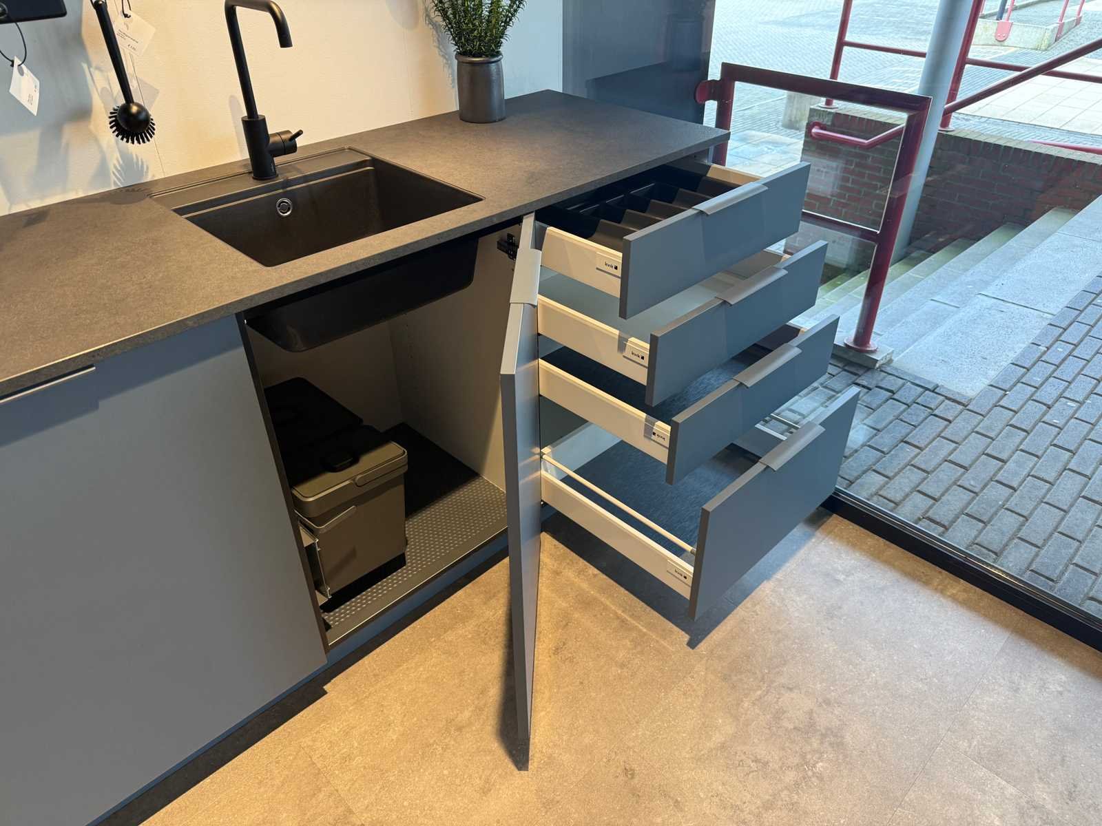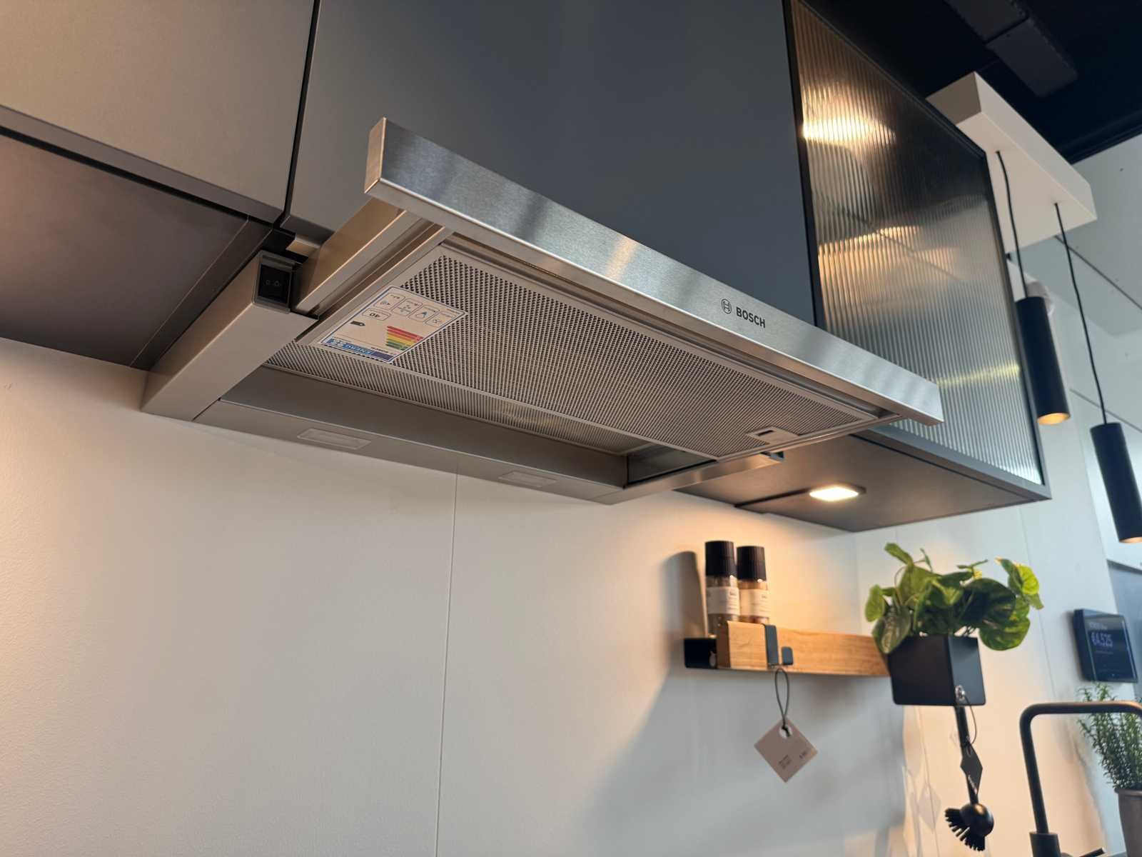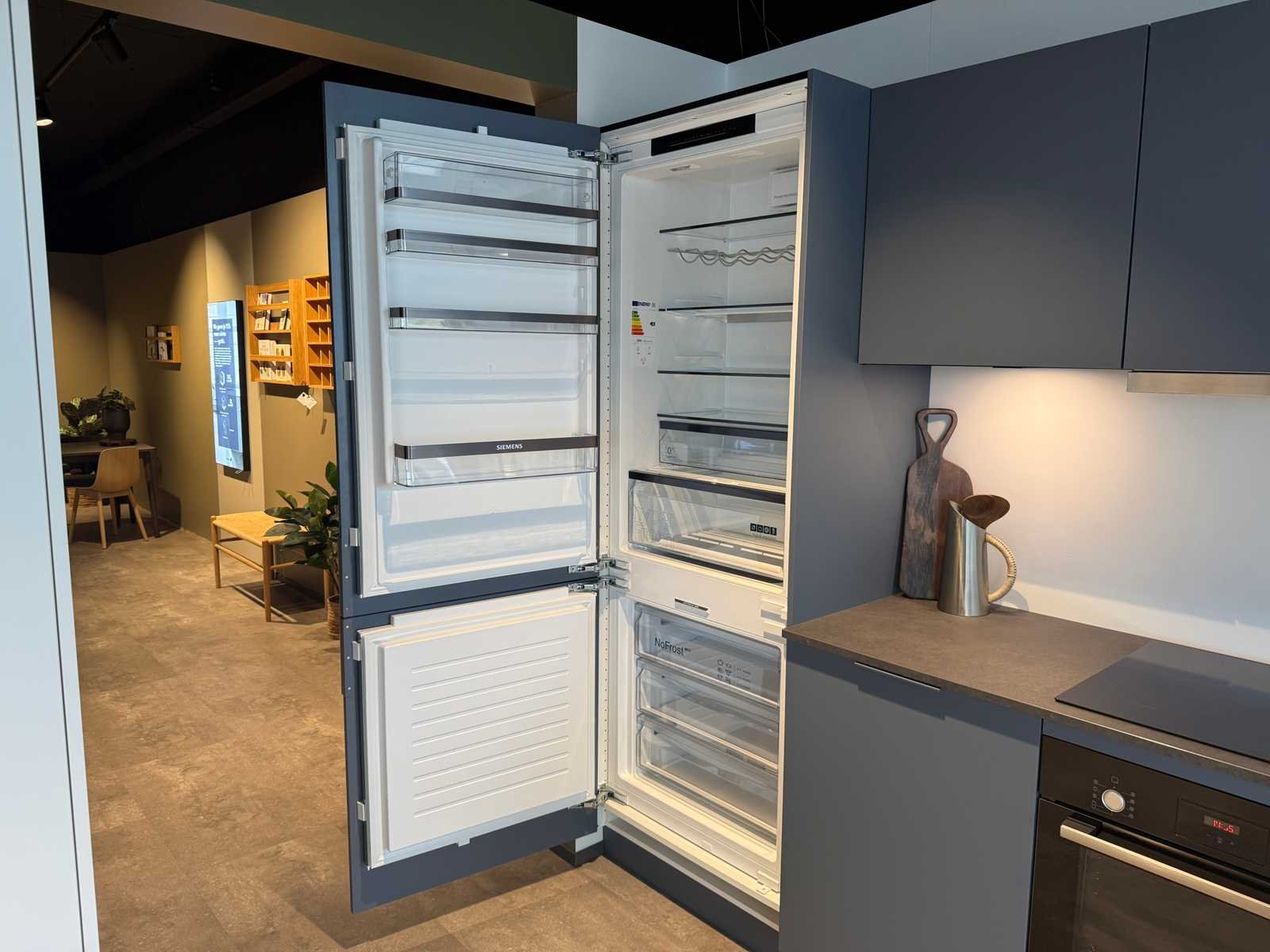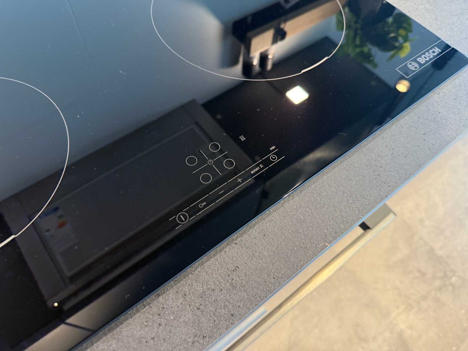 Keuken dient gedemonteerd te worden op locatie Nee Merk: Kvik Type keukenopstelling: Recht Lengte: 378,6cm Breedte: 60cm Hoogte: 220cm Werkblad hoogte: 94cm Aanrechtblad: Kunststof Fornuis: Bosch PUE611BB5D Koelkast: Siemens KB96NSDD0 Softclose: true Oven: Bosch HBF134EB1 Afzuigkap: Bosch DFM064W54 Kleur: Bordo blue