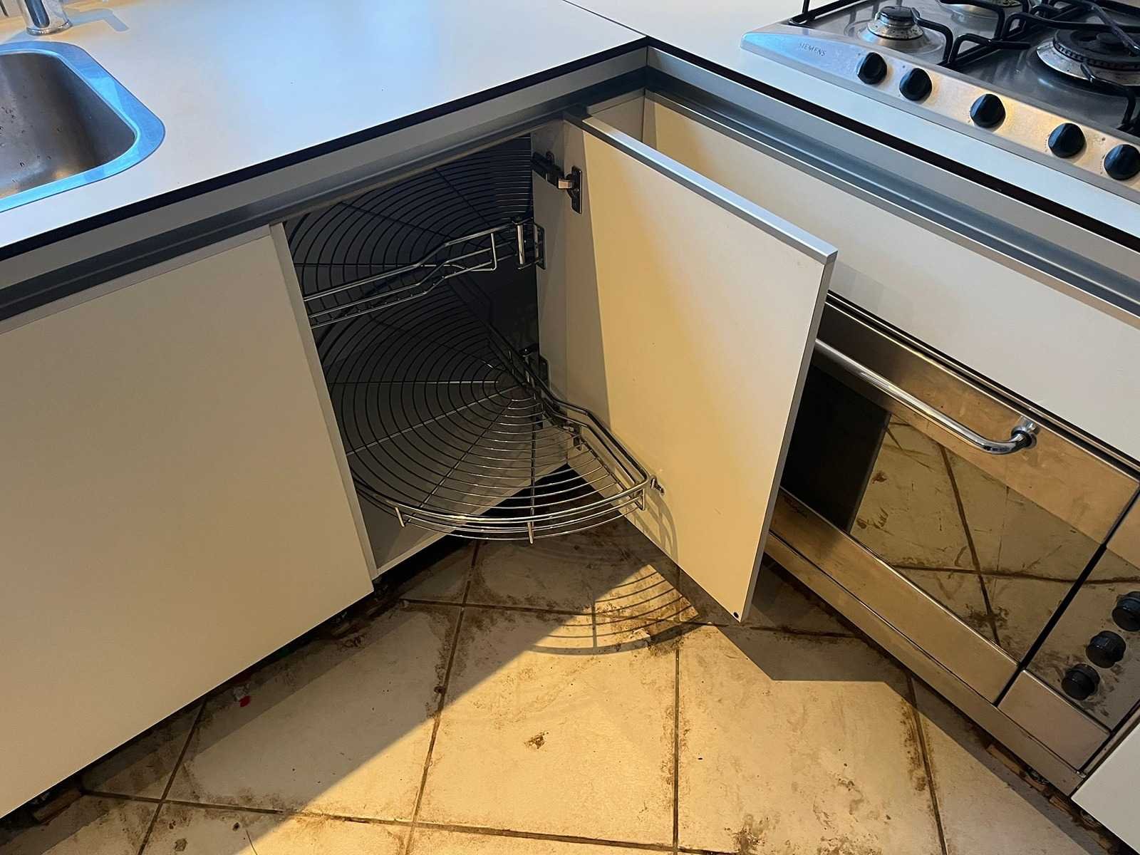 Conditie gebruikt; afmetingen linkerdeel lxb ca. 214x64 cm; afmetingen tussendeel lxb ca. 303x60 cm; afmetingen rechterdeel lxb ca. 243x60 cm; reeds gedemonteerd en ingepakt op pallets (afstapelen, omruilen of statiegeld per pallet); pallets zijn niet inbegrepen; statiegeld betalen bij afhalen, of pallets afstapelen; werkblad niet ingepakt op pallets Nee Merk: Binova Type keukenopstelling: U keuken Aanrechtblad: Hout wit Fornuis: Siemens Koelkast: Liebherr Vriezer: Liebherr Oven: Whirlpool Afzuigkap: Siemens Vaatwasser: Miele Hoofdkleur: Wit