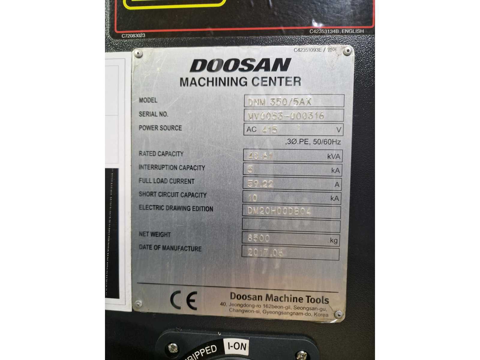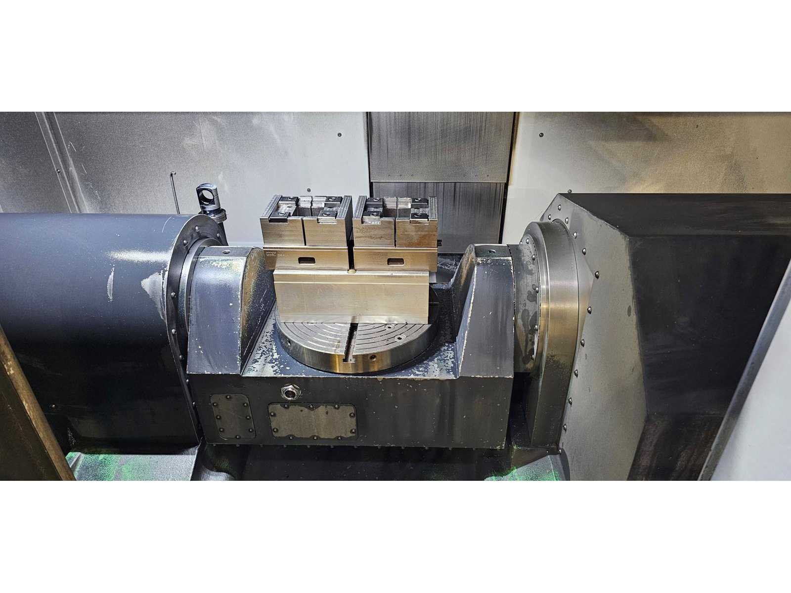 Posities op ATC: 30 A-as: +30° ~ -120° C-as: 360° Tafelrotatiesnelheid: 30 tpm Ondeugden niet inbegrepen! No Merk: Doosan Type: DNM 350/5AX Bouwjaar: 2017 Serienummer: MV0053-000316 Opname iso: BT-40 Verplaatsing x-as: 600mm Verplaatsing y-as: 655mm Verplaatsing z-as: 500mm Snelheid van n =: 1rpm Snelheid tot n =: 12000rpm CNC-besturing, merk, type: Fanuc i Series Spanentransporteur: true Koelmiddelpomp: true Werkstuk gewicht max.: 250kg T-gleuf opspantafelafmeting B: 350mm T-gleuf opspantafelafmeting L: 350mm -assig: 5 Motorvermogen (kW): 18.5kW Aansluiting: 400V Totale afmeting Hoogte: 3190mm Totale afmeting Breedte: 3150mm Totale afmeting L: 3209mm Machinegewicht: 8500kg