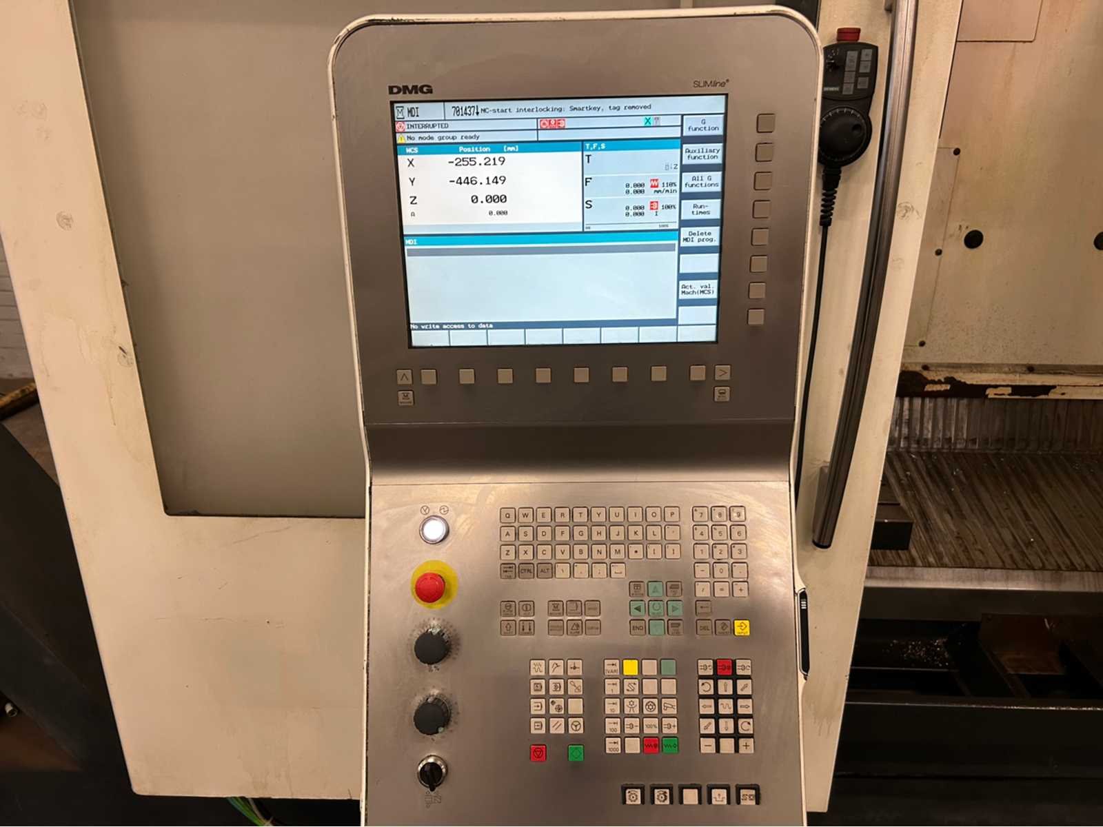 No Merk: DMG Type: DMC 1035V Ecoline Bouwjaar: 2011 Serienummer: 1539000478E Opname iso: 40 Verplaatsing x-as: 1035mm Verplaatsing y-as: 560mm Verplaatsing z-as: 510mm Snelheid tot n =: 10000rpm CNC-besturing, merk, type: Siemens 810D Powerline Spanentransporteur: true Koelmiddelpomp: true Werkstuk gewicht max.: 1000kg T-gleuf opspantafelafmeting B: 560mm T-gleuf opspantafelafmeting L: 1200mm -assig: 3 Aansluiting: 400V Machinegewicht: 4050kg
