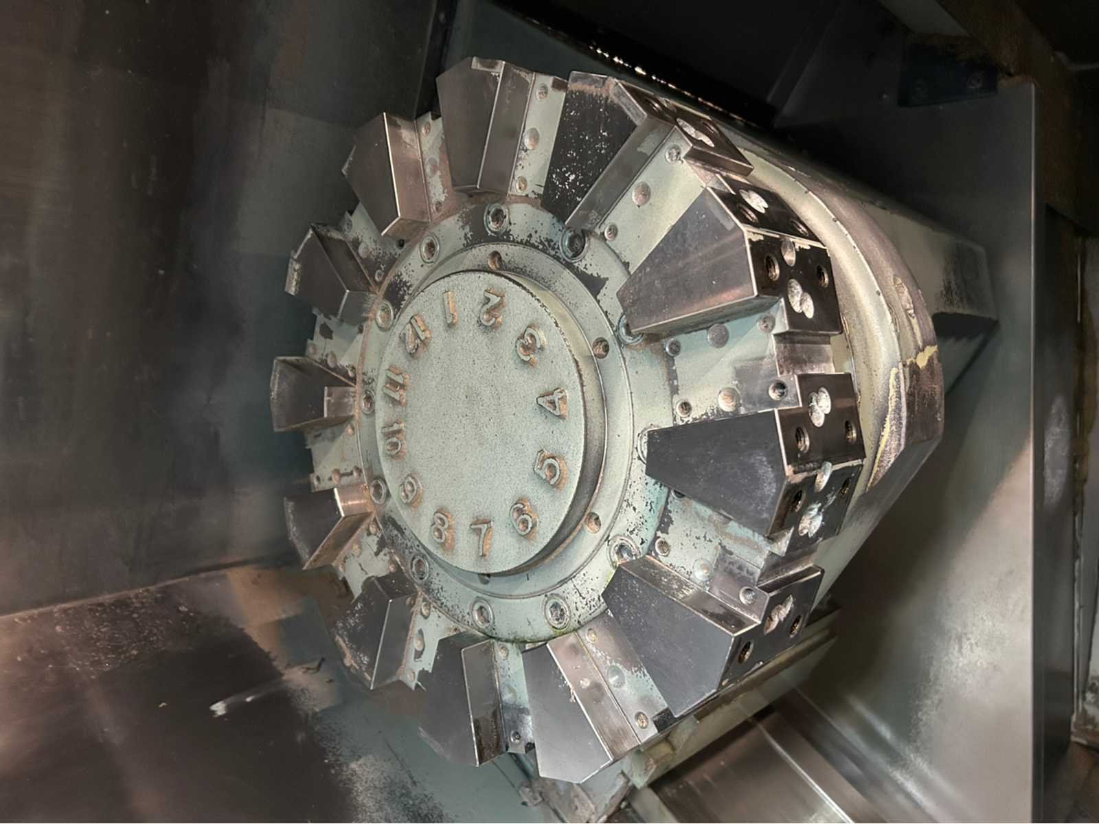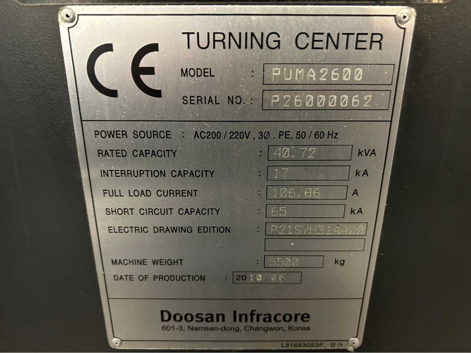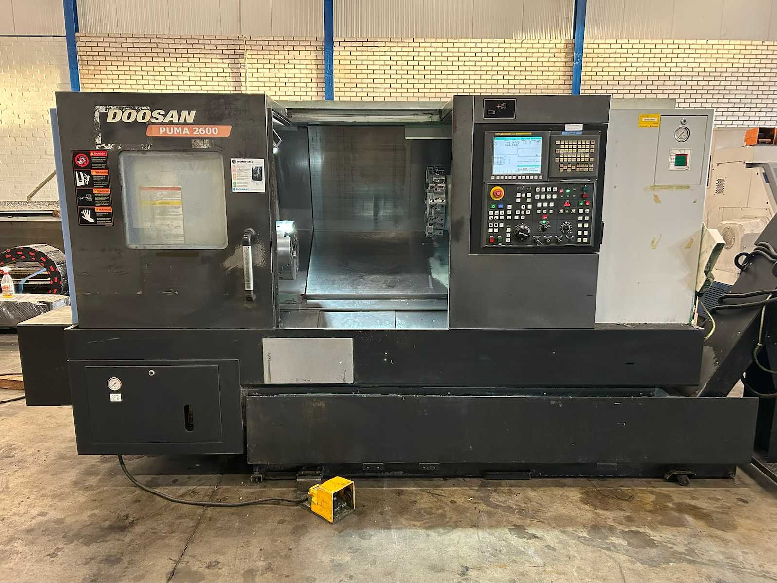 310mm SWM AUTOBLOK chuck! De machine wordt geleverd met gereedschap dat op de foto's te zien is! No Merk: Doosan Type: Puma 2600 Bouwjaar: 2010 Serienummer: P26000062 Draai: 376mm Draailengte: 760mm Holle spil Ø: 76mm Snelheid van n =: 1rpm Snelheid tot n =: 3500rpm Aantal gereedschapwisselstations: 12 Koelmiddelpomp: true Spanentransporteur: true CNC-besturing, merk, type: Fanuc i Series Motorvermogen (kW): 26kW Aansluiting: 400V Handboek aanwezig: true Machinegewicht: 5500kg Afmeting l: 4480mm Afmeting b: 1863mm Afmeting h: 1900mm