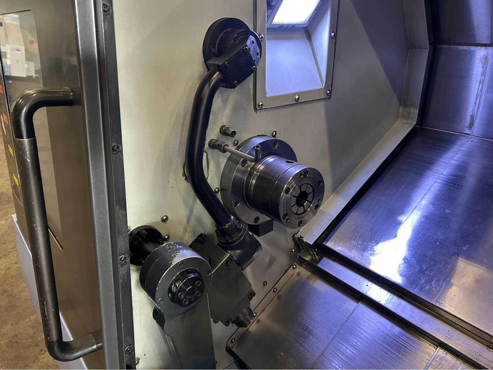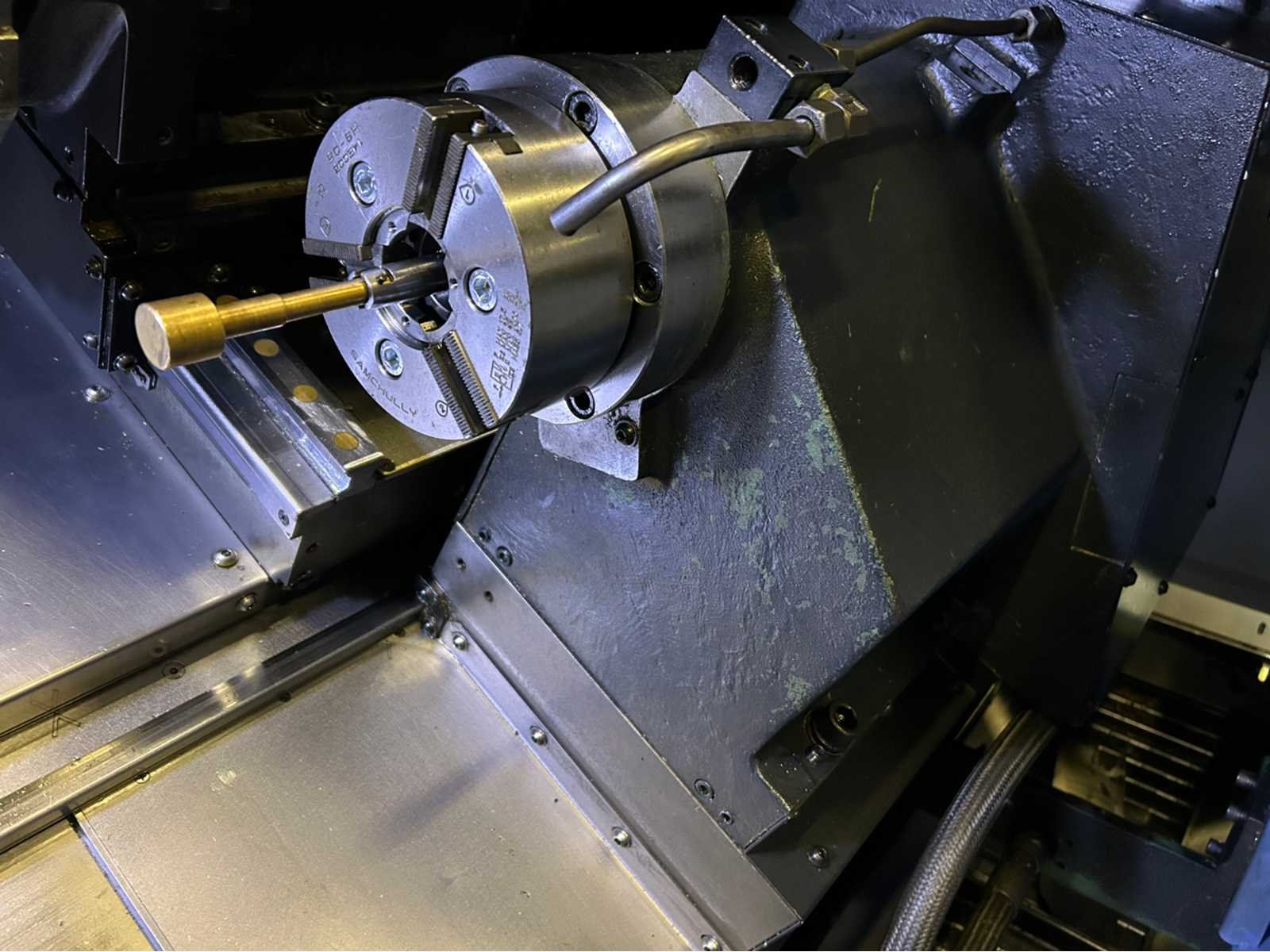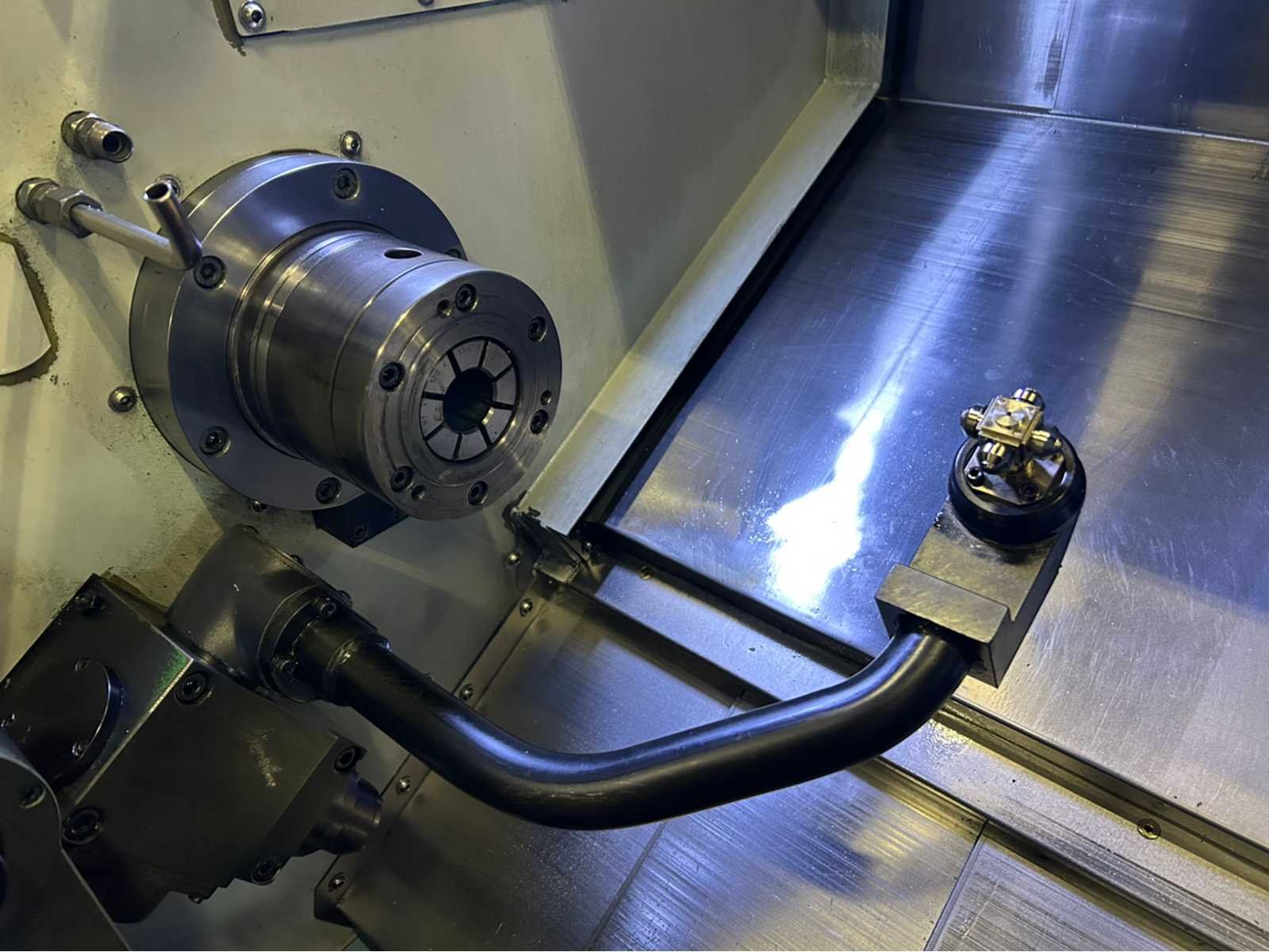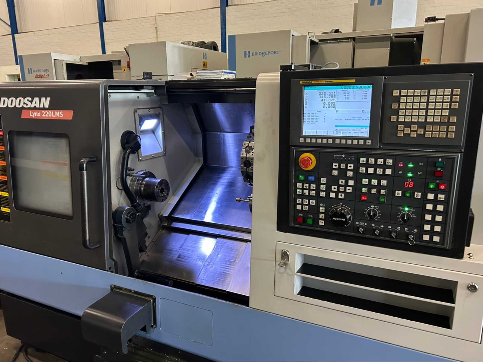 X-as: 175mm Z-as: 550mm C-as: 0.001° Subspil: ja Subspindelsnelheid: 6000 rpm Live gereedschap: ja Live gereedschapssnelheid: 6000 tpm Stroomstartmotorvermogen: 3,6 kW De machine is uitgerust met: - Live Tooling - subspil - deelvanger - gereedschapsvoorzetter - chiptransporteur - deeltransportband - Staafvoeder - EZ-gids - Doosan easy operation package Nee Merk: Doosan Type: Lynx 220 LMSA Bouwjaar: 2012 Serienummer: ML0213-000131 Draai: 320mm Draailengte: 510mm Holle spil Ø: 51mm Snelheid van n =: 1rpm Snelheid tot n =: 6000rpm Aantal gereedschapwisselstations: 24 Koelmiddelpomp: true Spanentransporteur: true CNC-besturing, merk, type: Fanuc i Series Afgelezen urenstand: 9382 Motorvermogen (kW): 14.7kW Aansluiting: 400V Handboek aanwezig: true Machinegewicht: 3400kg Afmeting l: 3850mm Afmeting b: 1800mm Afmeting h: 1770mm