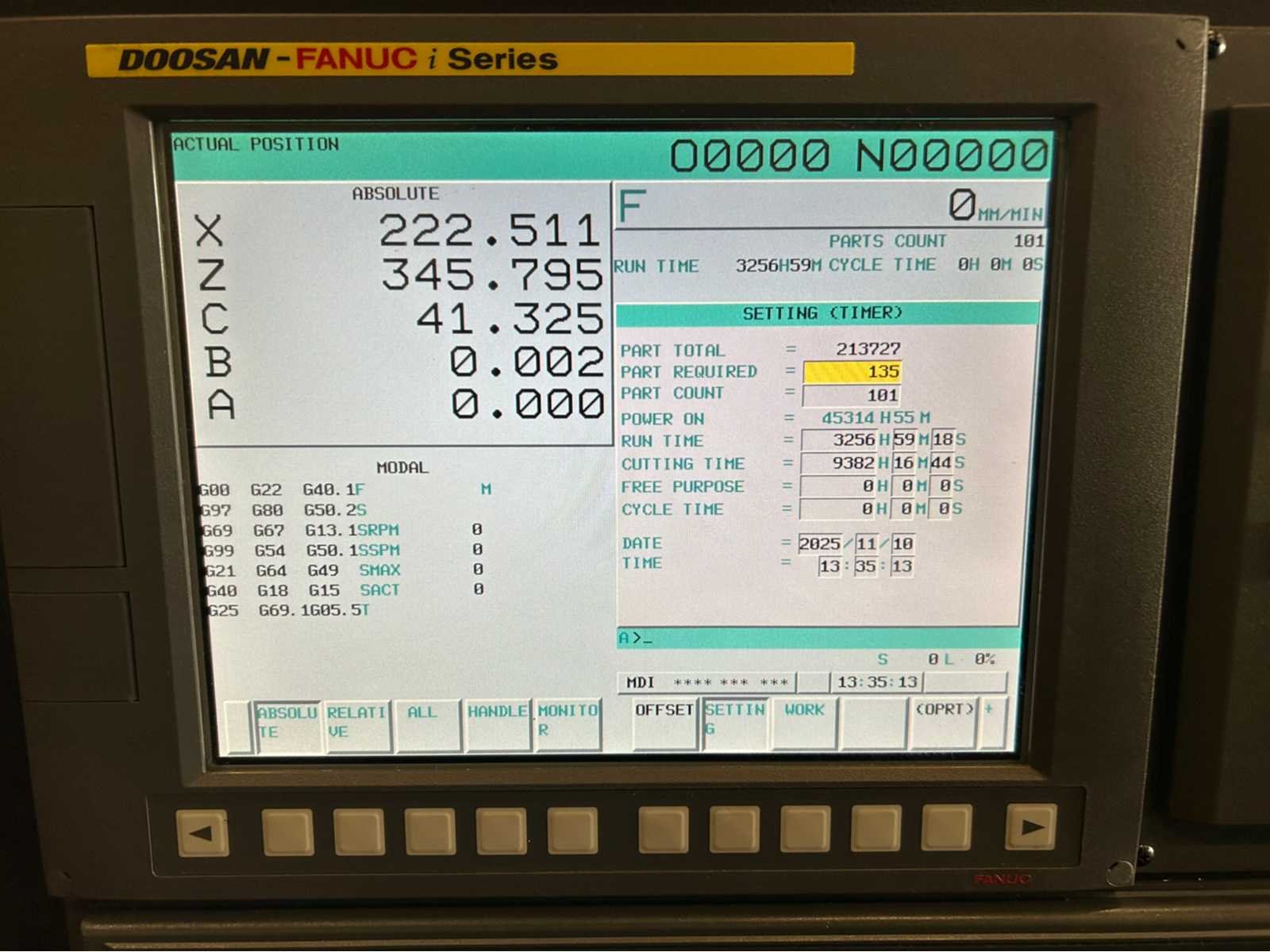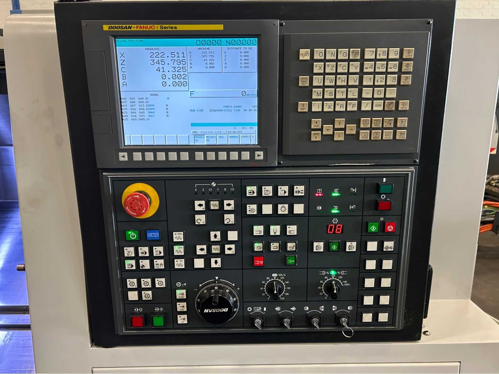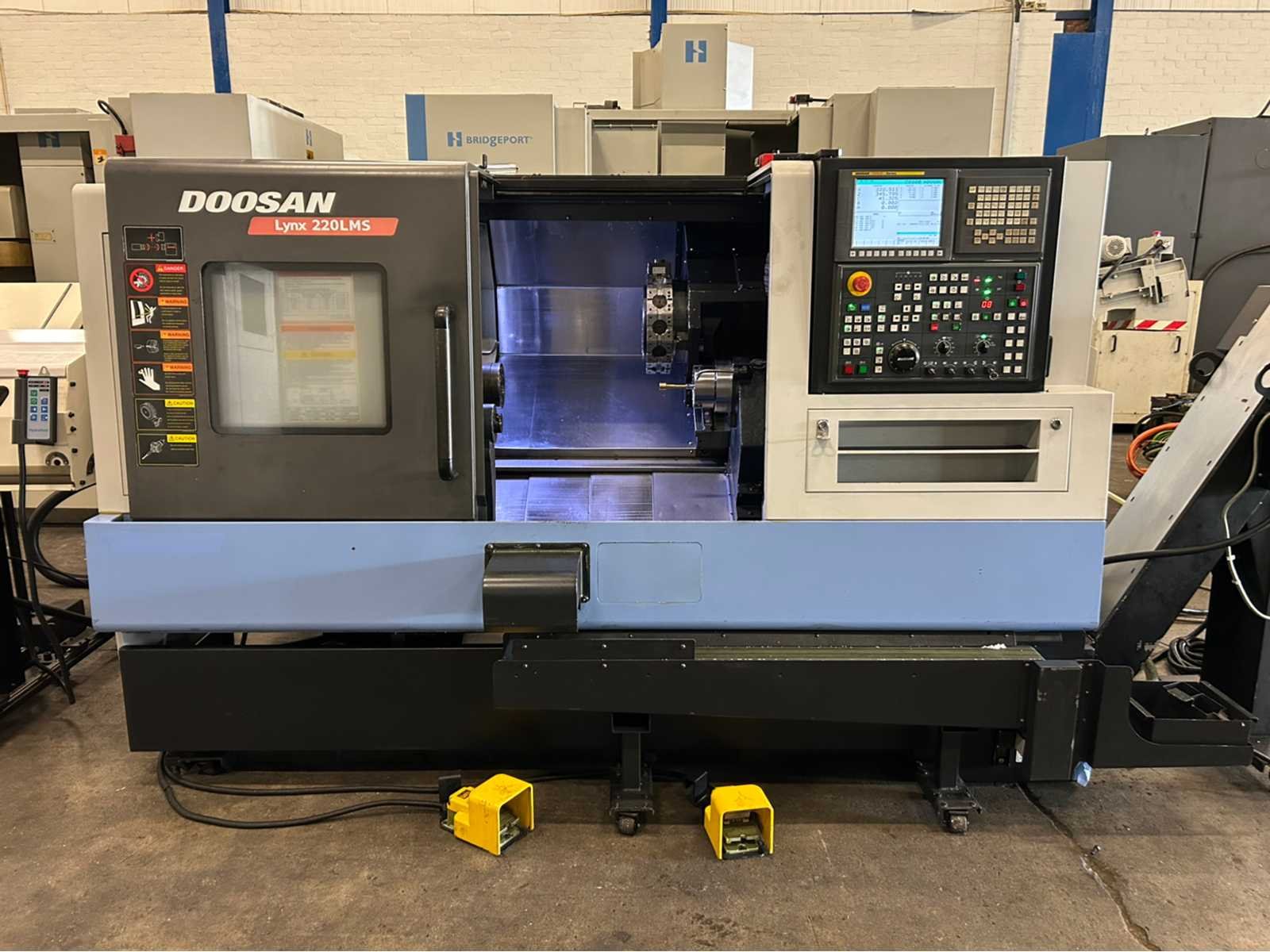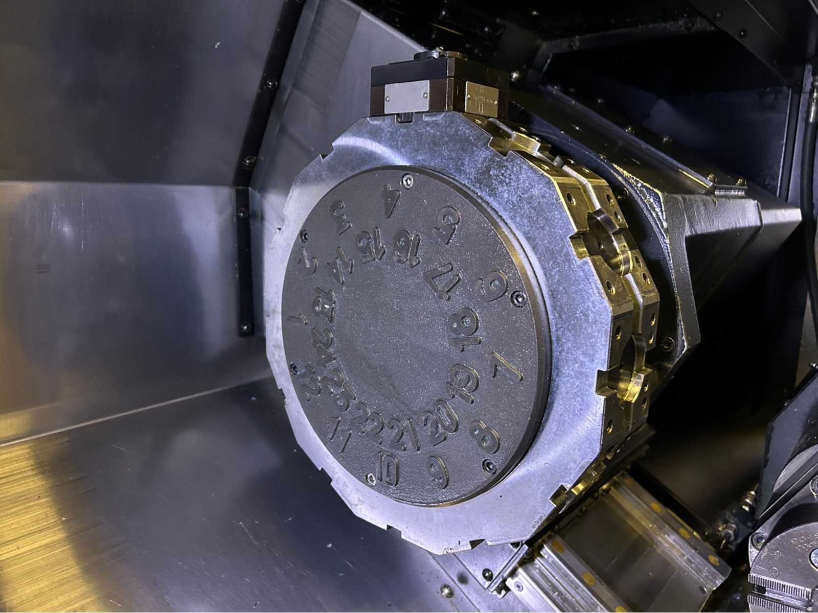 X-as: 175mm Z-as: 550mm C-as: 0.001° Subspil: ja Subspindelsnelheid: 6000 rpm Live gereedschap: ja Live gereedschapssnelheid: 6000 tpm Stroomstartmotorvermogen: 3,6 kW De machine is uitgerust met: - Live Tooling - subspil - deelvanger - gereedschapsvoorzetter - chiptransporteur - deeltransportband - Staafvoeder - EZ-gids - Doosan easy operation package Nee Merk: Doosan Type: Lynx 220 LMSA Bouwjaar: 2012 Serienummer: ML0213-000131 Draai: 320mm Draailengte: 510mm Holle spil Ø: 51mm Snelheid van n =: 1rpm Snelheid tot n =: 6000rpm Aantal gereedschapwisselstations: 24 Koelmiddelpomp: true Spanentransporteur: true CNC-besturing, merk, type: Fanuc i Series Afgelezen urenstand: 9382 Motorvermogen (kW): 14.7kW Aansluiting: 400V Handboek aanwezig: true Machinegewicht: 3400kg Afmeting l: 3850mm Afmeting b: 1800mm Afmeting h: 1770mm