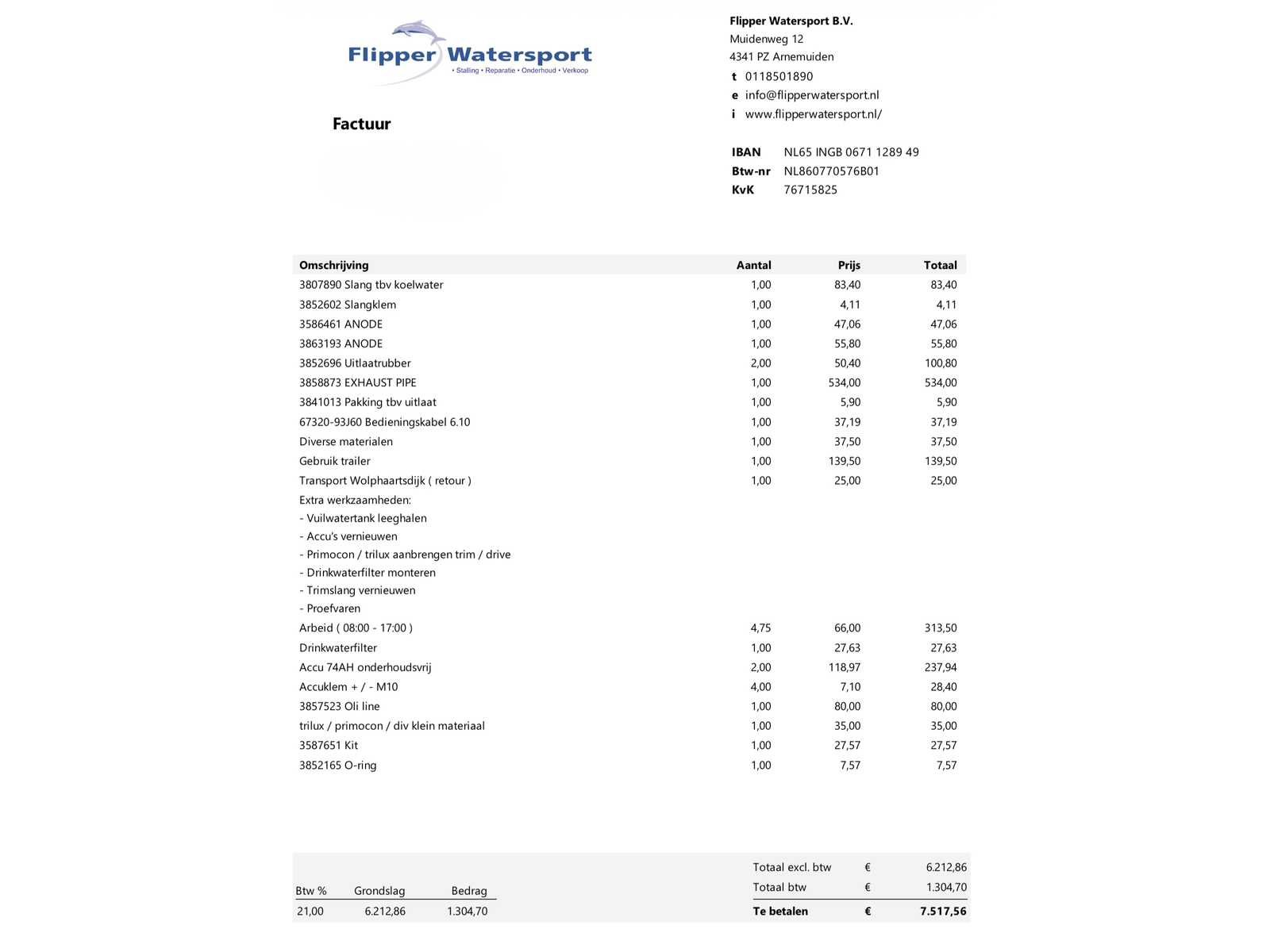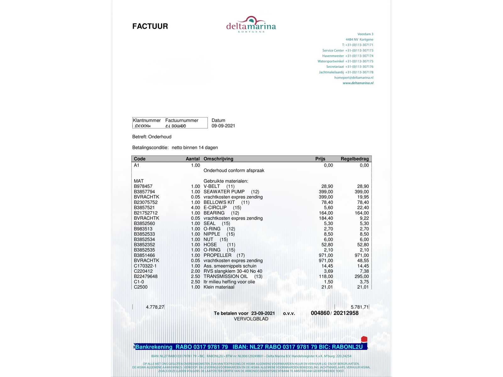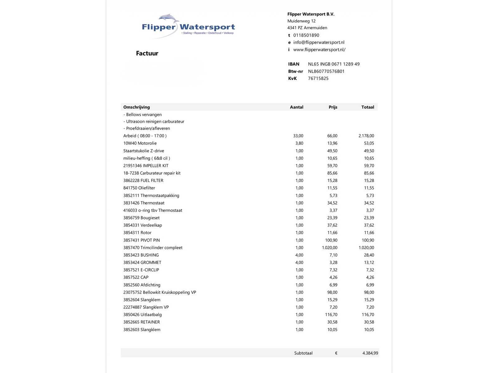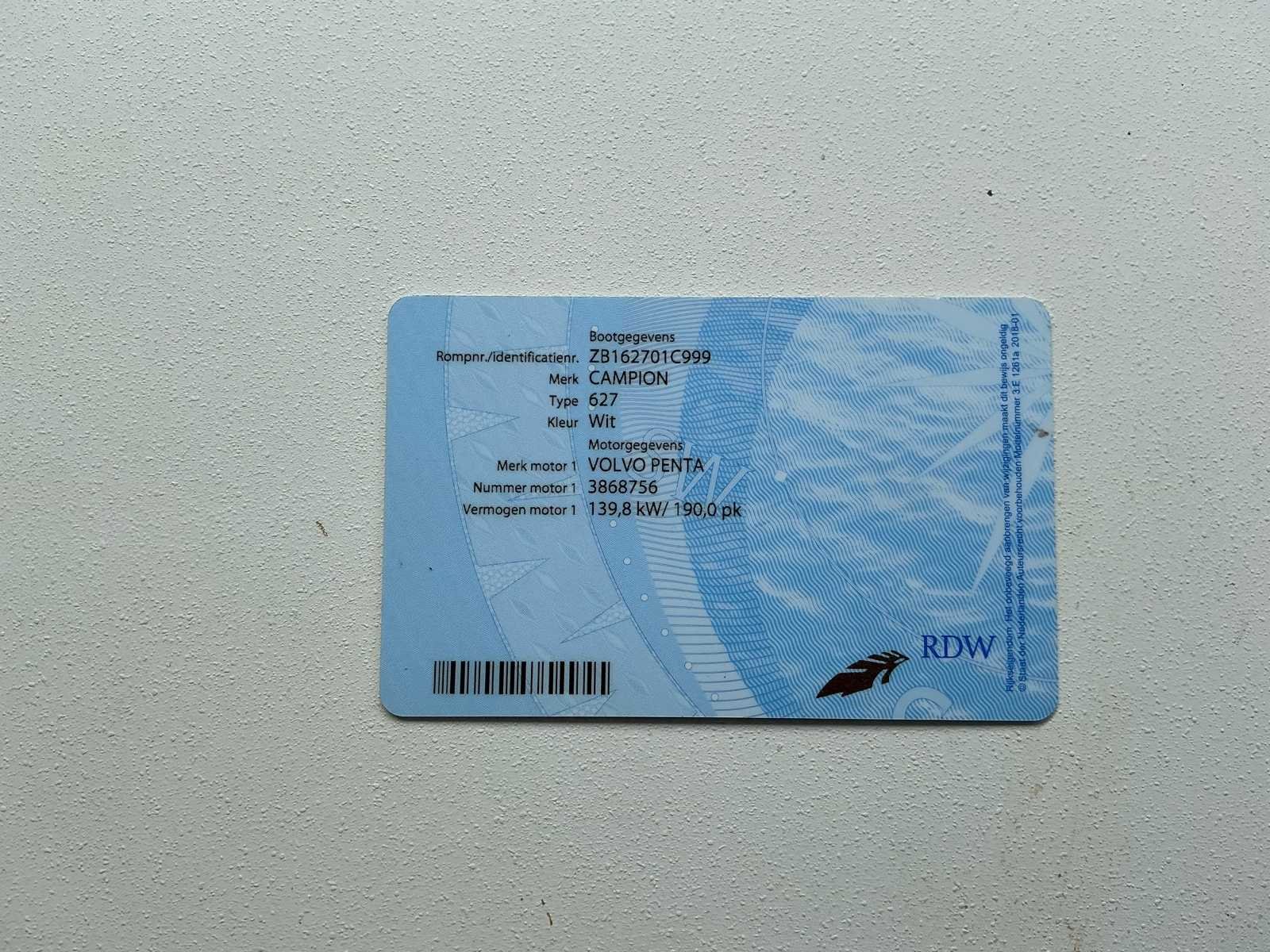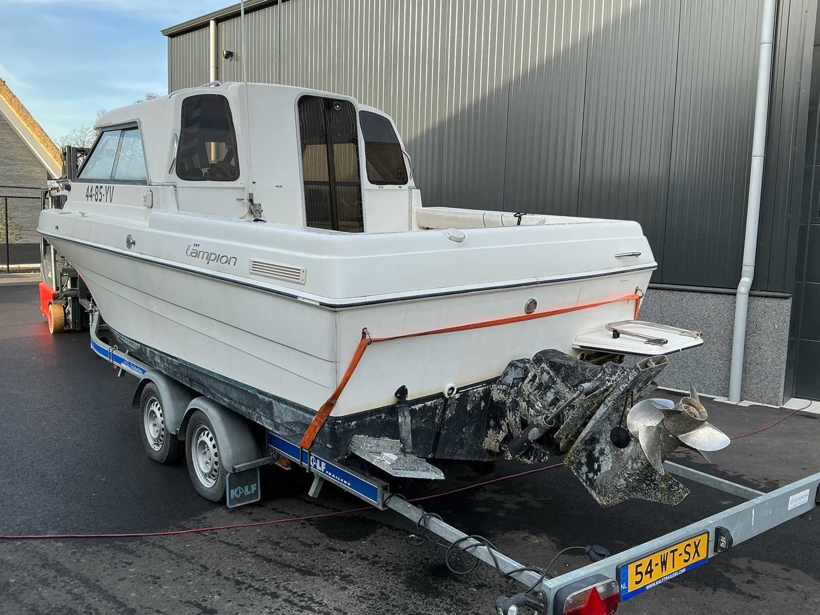 Afmetingen boot: 6,50m lengte x 2,25m breedte Afmeting totaal inclusief trailer: 8m lengte x 2,25m breedte x 2,70m hoogte Voorzien van: Volvo Penta 4.3 V6 benzinemotor met 140 pk Kalf geremde dubbelassige boottrailer voorzien van eigen kenteken en verlichting (let op: sticker met chassisnummer is niet leesbaar) Volvo Penta staartstuk met powertrim Gesloten cabine 2 slaapplaatsen Bestuurdersstoel Dashboard met uitgebreide meterset Marifoon Navigatieapparatuur Navigatieverlichting Zitbank Draaibare tafel Radio met speakers Toilet Inbouw brandstoftank Inbouw watertank Inbouw vuilwatertank Koelkast Wasbak met kraan Gasfornuis Dubbel accusysteem met hoofdstroomschakelaar 220V omvormer Elektrische ankerlier Diverse opbergruimtes Boegrailing Trimflaps Zwemtrap Antifouling Onderhoudsfacturen van afgelopen jaren aanwezig. Zie laatste foto’s. Nee Merk: Campion Type: Victoria 627 Rompmateriaal: Polyester Brandstof: Benzine Bouwjaar: 1999 Serienummer: ZB162701C999 Vermogen: 140kW Kenteken trailer: 54-WT-SX Trailer merk + type: Kalf Aantal cilinders: 6 Lengte over alles: 7m Binnenboord: true Navigatieverlichting: true Navigatie apparatuur: true Marifoon (vhf): true Breedte formaat: 2m