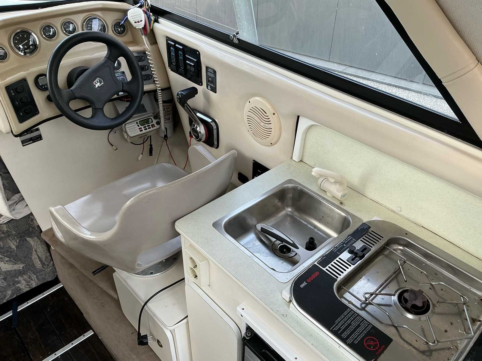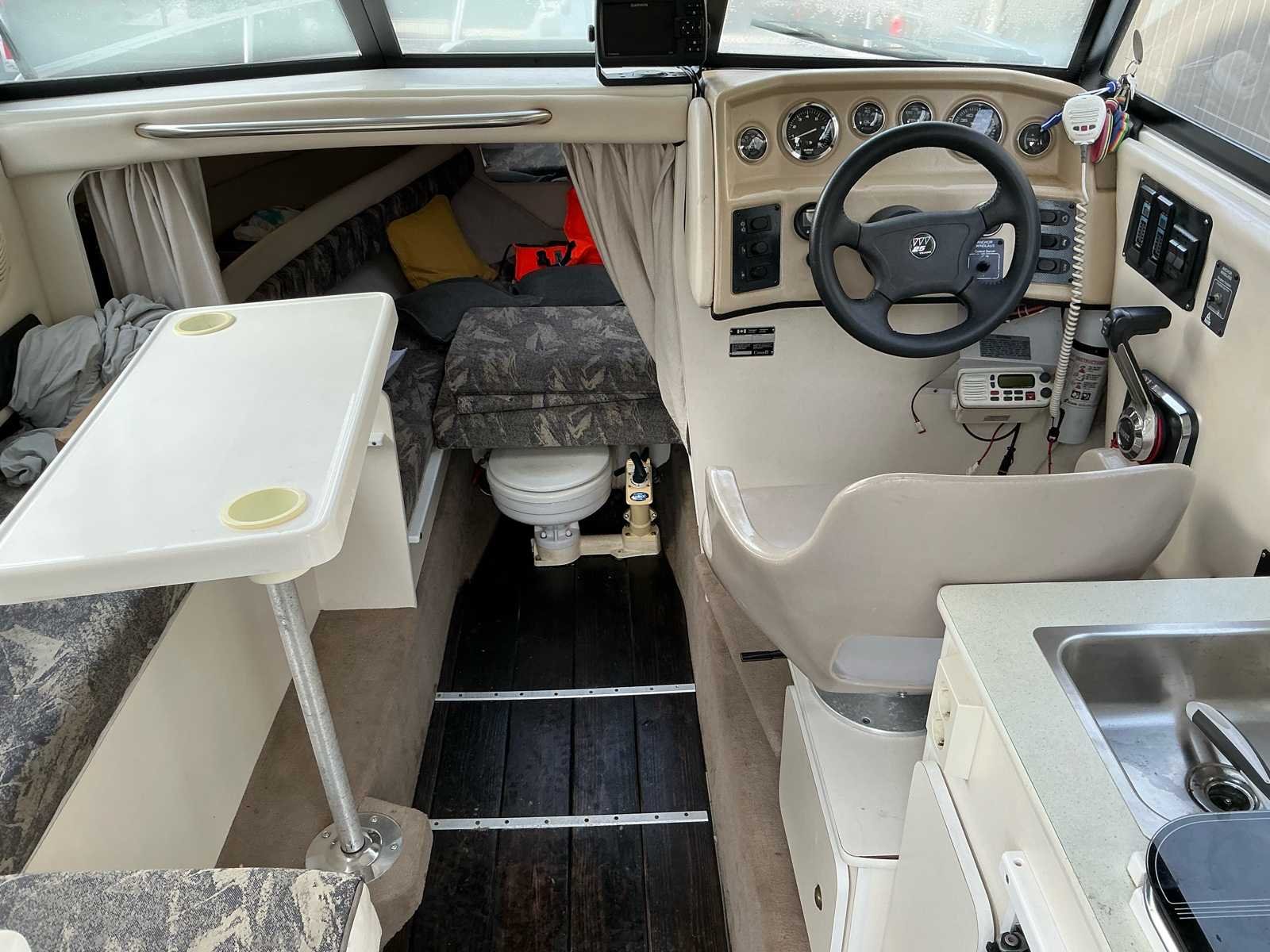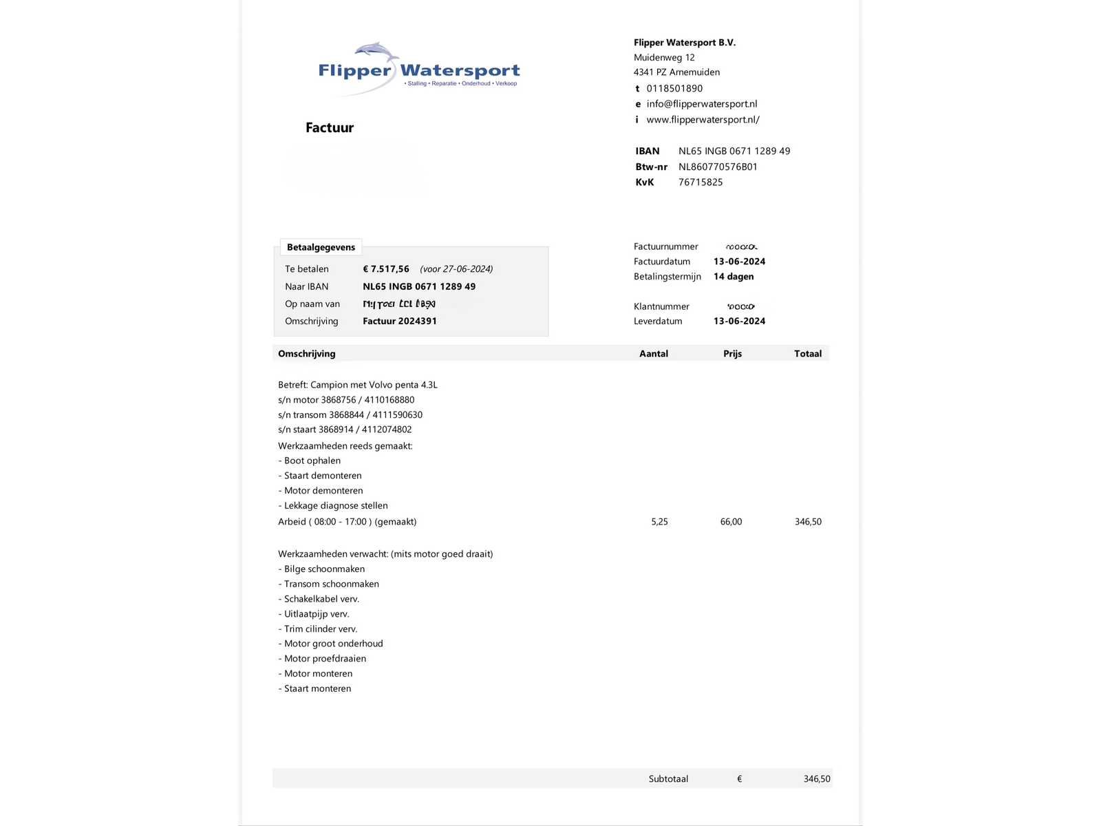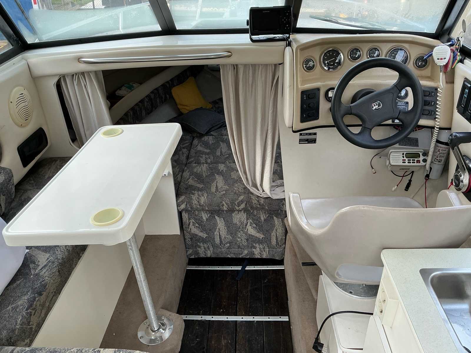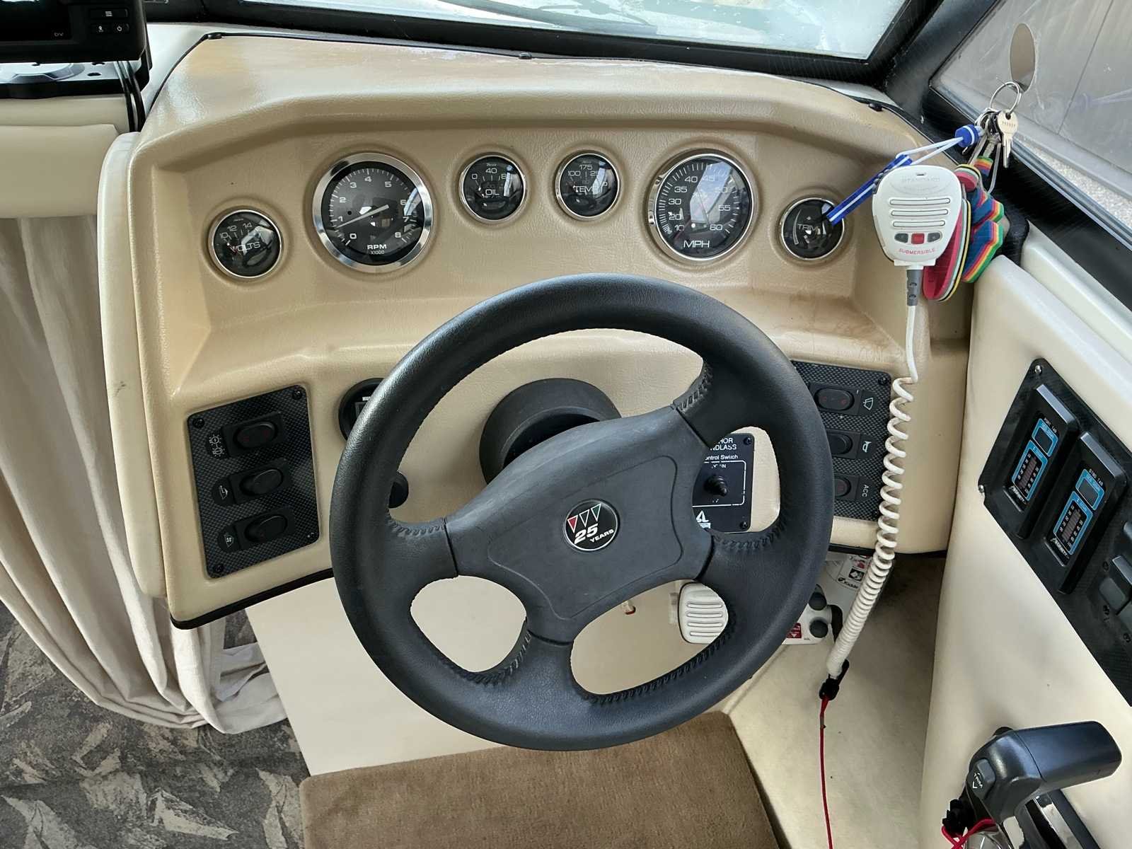 Afmetingen boot: 6,50m lengte x 2,25m breedte Afmeting totaal inclusief trailer: 8m lengte x 2,25m breedte x 2,70m hoogte Voorzien van: Volvo Penta 4.3 V6 benzinemotor met 140 pk Kalf geremde dubbelassige boottrailer voorzien van eigen kenteken en verlichting (let op: sticker met chassisnummer is niet leesbaar) Volvo Penta staartstuk met powertrim Gesloten cabine 2 slaapplaatsen Bestuurdersstoel Dashboard met uitgebreide meterset Marifoon Navigatieapparatuur Navigatieverlichting Zitbank Draaibare tafel Radio met speakers Toilet Inbouw brandstoftank Inbouw watertank Inbouw vuilwatertank Koelkast Wasbak met kraan Gasfornuis Dubbel accusysteem met hoofdstroomschakelaar 220V omvormer Elektrische ankerlier Diverse opbergruimtes Boegrailing Trimflaps Zwemtrap Antifouling Onderhoudsfacturen van afgelopen jaren aanwezig. Zie laatste foto’s. Nee Merk: Campion Type: Victoria 627 Rompmateriaal: Polyester Brandstof: Benzine Bouwjaar: 1999 Serienummer: ZB162701C999 Vermogen: 140kW Kenteken trailer: 54-WT-SX Trailer merk + type: Kalf Aantal cilinders: 6 Lengte over alles: 7m Binnenboord: true Navigatieverlichting: true Navigatie apparatuur: true Marifoon (vhf): true Breedte formaat: 2m
