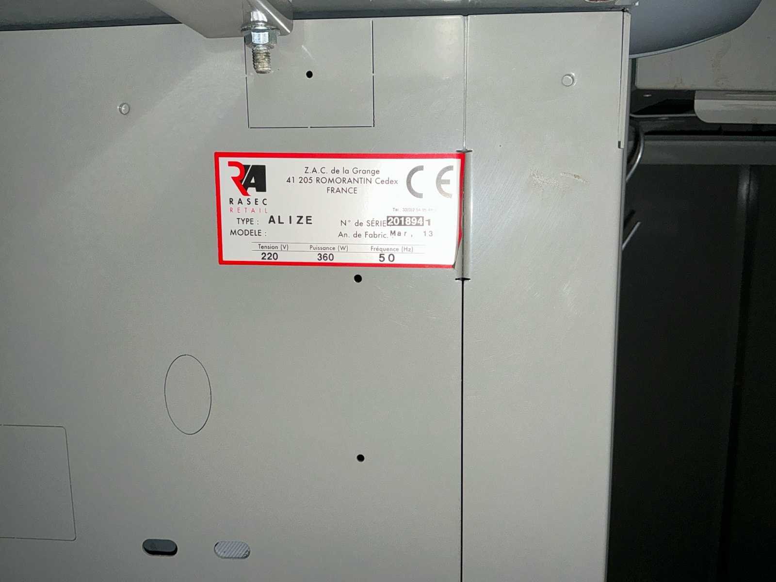 Werkend Nee Merk: Rasec Retail Type: Alize Bouwjaar: 2013 Kassa lade: true Aansluiting: 220V Totale afmeting L: 3700mm Totale afmeting Breedte: 1200mm Totale afmeting Hoogte: 1300mm