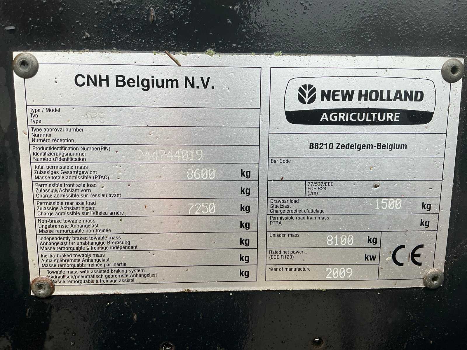 Voorzien van: centrale smering, achteruitrijcamera, K 80 trekhaak, balenmaat 80x90cm, met demontabele trechter, isobus mogelijk Nee Merk: New holland Type: BB9060 Bouwjaar: 2009 Serienummer: 244744019 Kenteken: LGK-40-X Afgelezen aantal balen: 44210 Eigen gewicht: 7250kg Totale afmeting L: 8400mm Totale afmeting Breedte: 2800mm Totale afmeting Hoogte: 3100mm