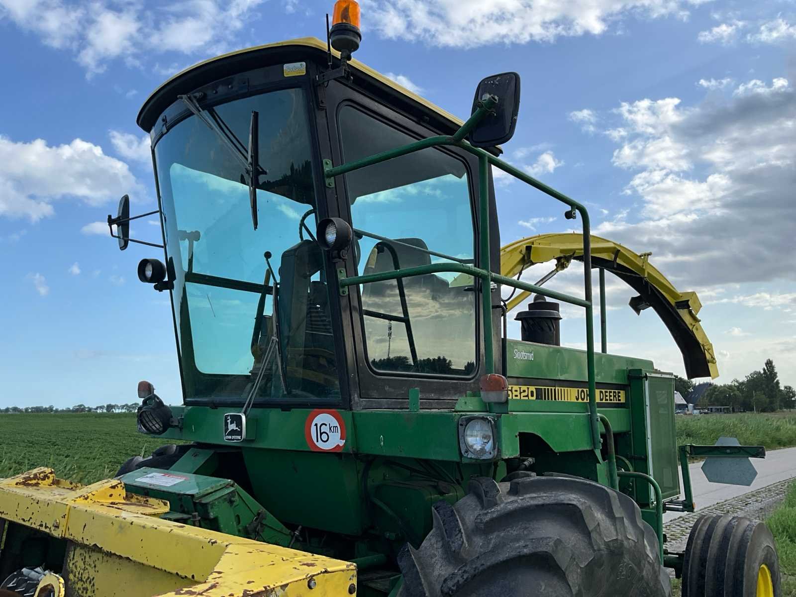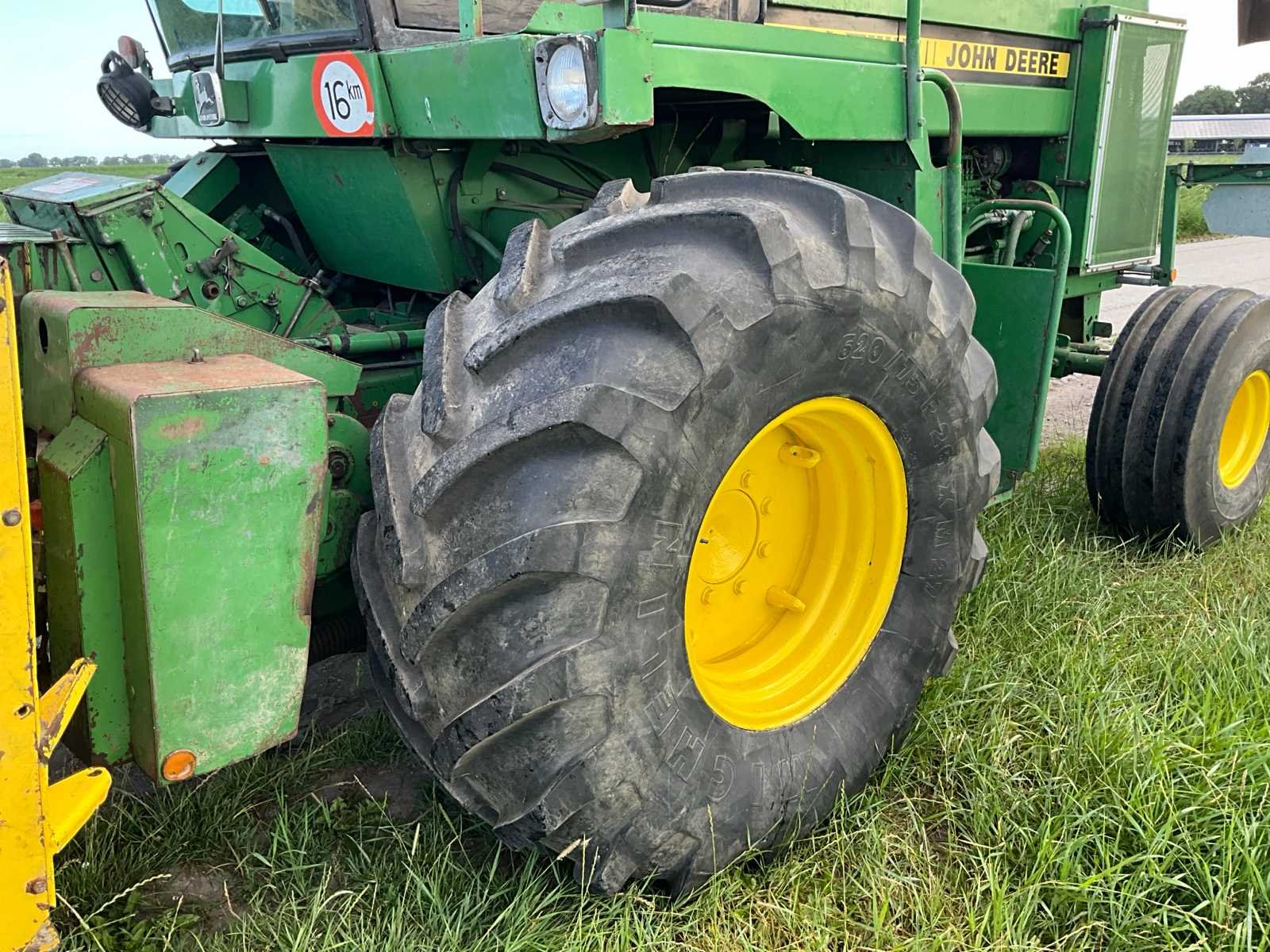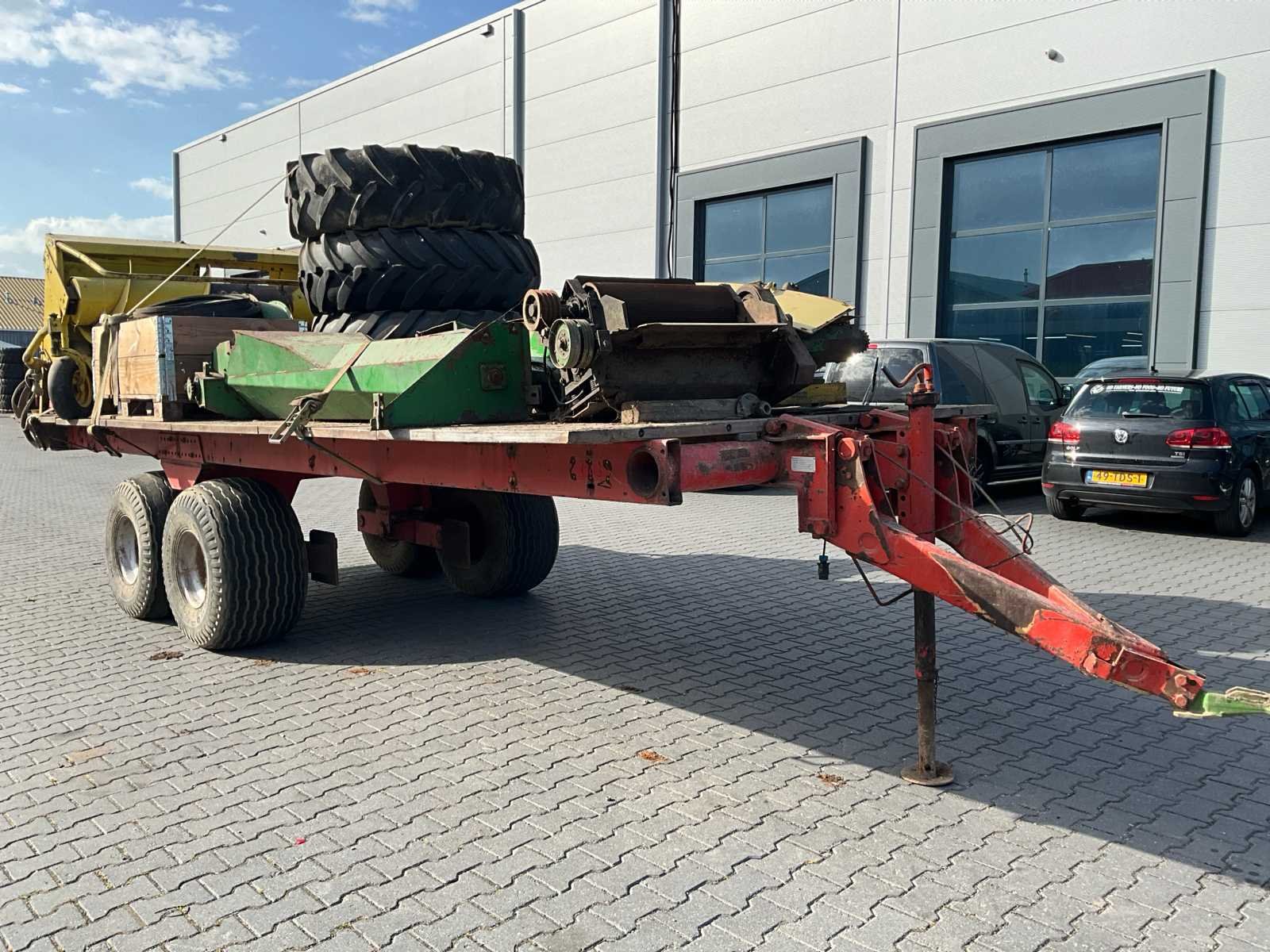 2WD; v.v. 6-cil. dieselmotor; afgelezen urenstand 4324; maïsbek; verstelbare uitgiftepijp; dubbellucht (breedte 4500 mm); graspickup; vijzelbak; korrelkneuzer; gras- en maïsmessen; incl. diverse extra onderdelen/ Gras pick-up/banden (zie foto’s) Inclusief aanhanger! Voorzien van tandemonderstel; Nokia: 500/55-15.5 banden; laadvloer 6000 x 2500mm; ringtrekhaak; Houtenvloer; let op, trekhaak is krom! Met kenteken: LPT-95-P Nee Merk: John deere Type: 5820 Bouwjaar: 1985 Serienummer: E05820X695036 Kenteken: TVX-83-L Brandstof: diesel APK vervaldatum: 1987-06-30 Motorvermogen (kW): 190kW Versnellingsbaktype: Hydrostaat 4-speed Bandenmaat voor: Michelin 620-75/R26 Bandenmaat achter: Goodyear 16.5L-15.1 Max. snelheid: 35km/h Cabine: true Luchtgeveerde stoel: true Afgelezen urenstand: 4033