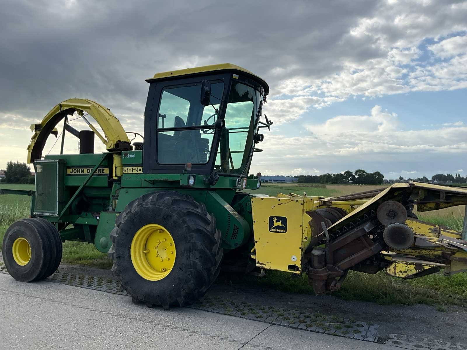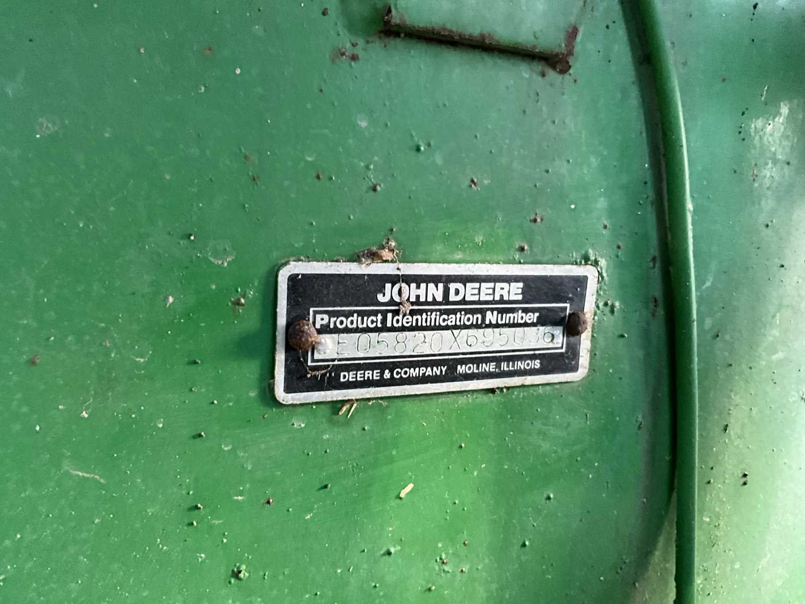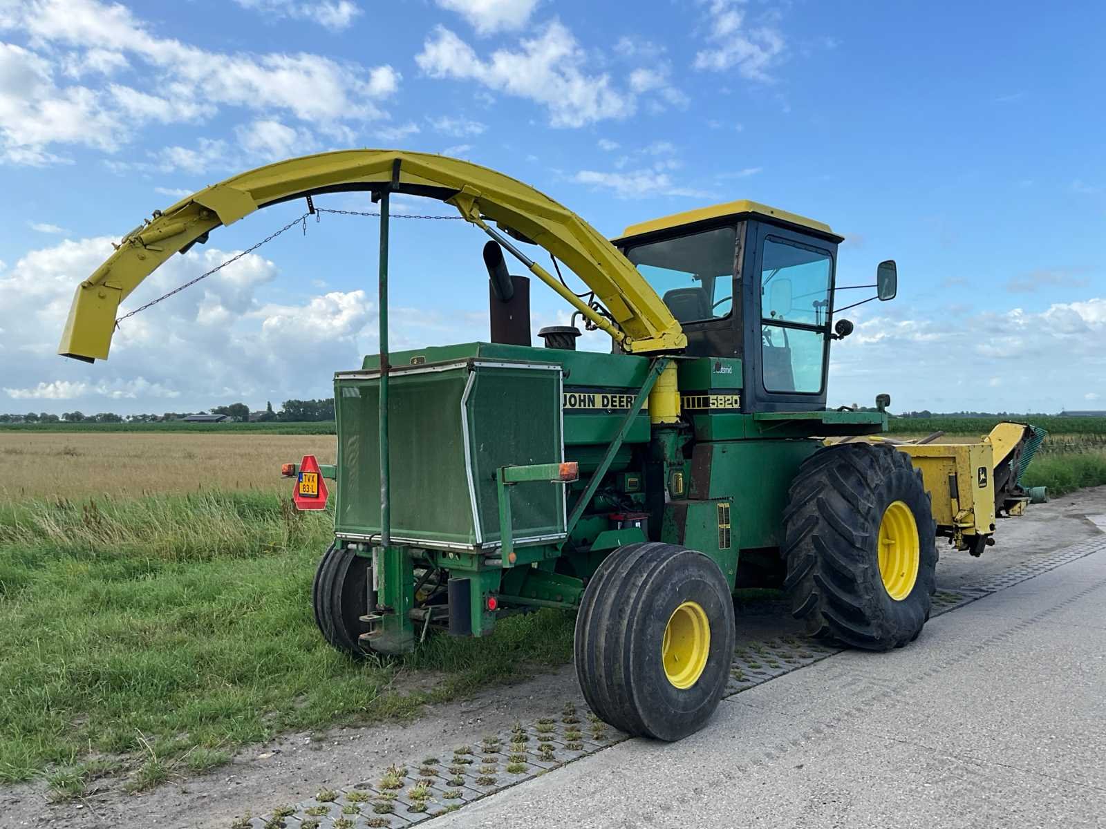 2WD; v.v. 6-cil. dieselmotor; afgelezen urenstand 4324; maïsbek; verstelbare uitgiftepijp; dubbellucht (breedte 4500 mm); graspickup; vijzelbak; korrelkneuzer; gras- en maïsmessen; incl. diverse extra onderdelen/ Gras pick-up/banden (zie foto’s) Inclusief aanhanger! Voorzien van tandemonderstel; Nokia: 500/55-15.5 banden; laadvloer 6000 x 2500mm; ringtrekhaak; Houtenvloer; let op, trekhaak is krom! Met kenteken: LPT-95-P Nee Merk: John deere Type: 5820 Bouwjaar: 1985 Serienummer: E05820X695036 Kenteken: TVX-83-L Brandstof: diesel APK vervaldatum: 1987-06-30 Motorvermogen (kW): 190kW Versnellingsbaktype: Hydrostaat 4-speed Bandenmaat voor: Michelin 620-75/R26 Bandenmaat achter: Goodyear 16.5L-15.1 Max. snelheid: 35km/h Cabine: true Luchtgeveerde stoel: true Afgelezen urenstand: 4033