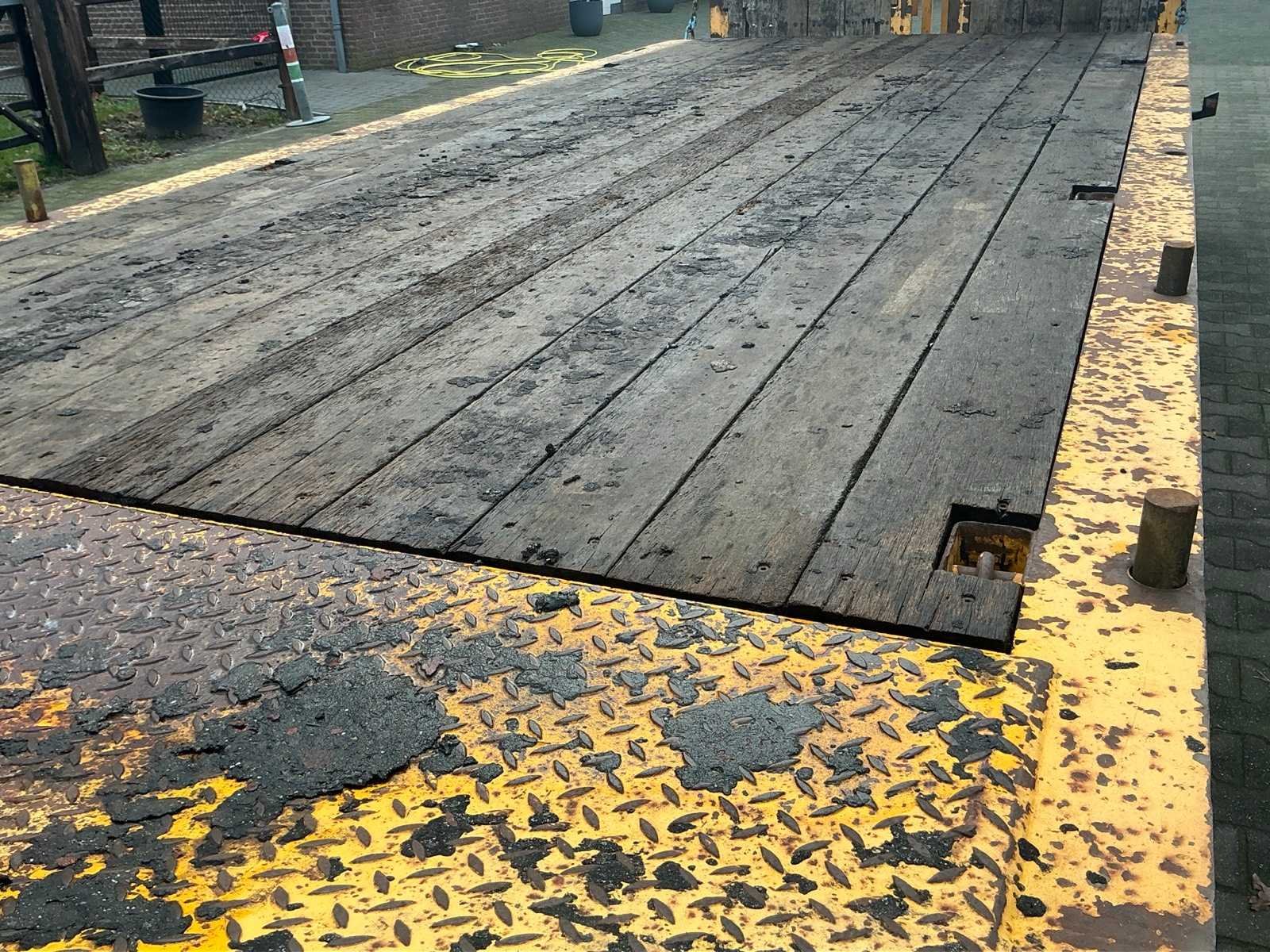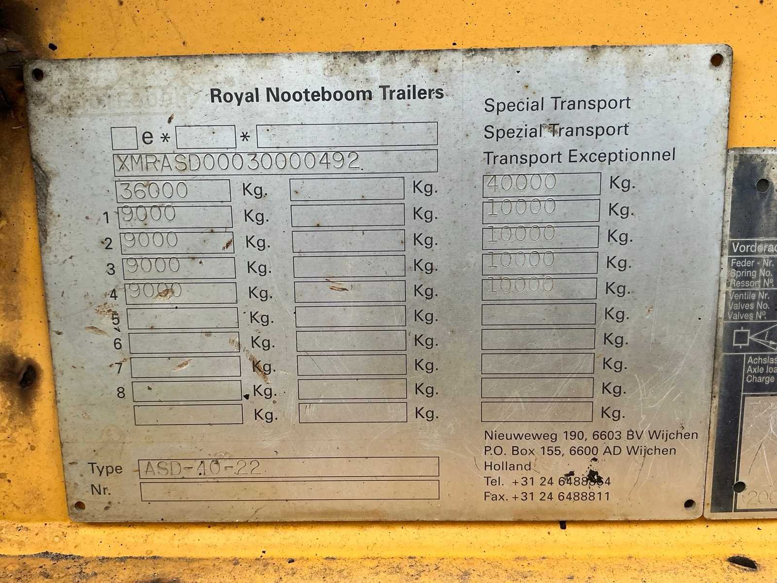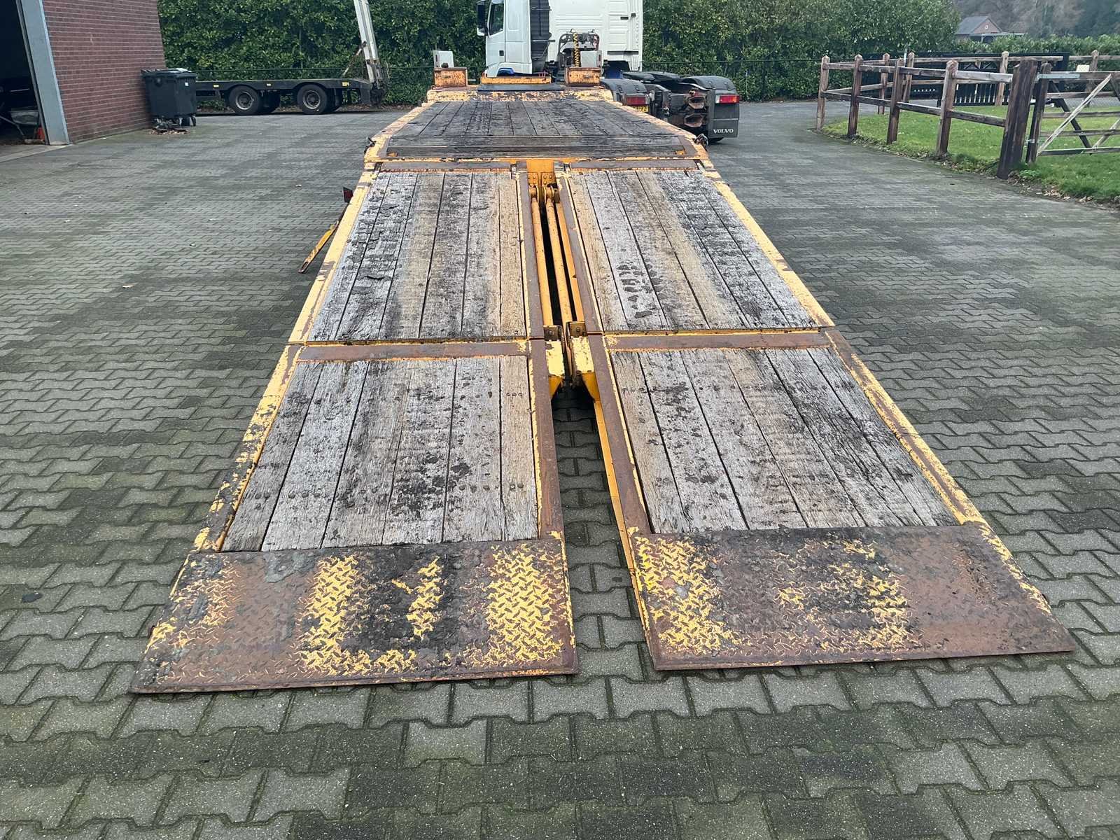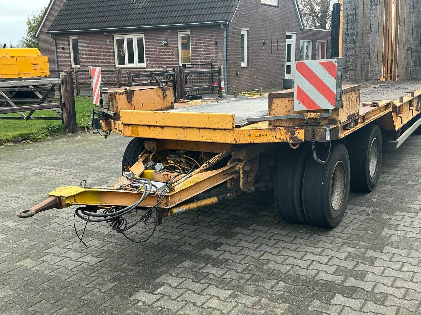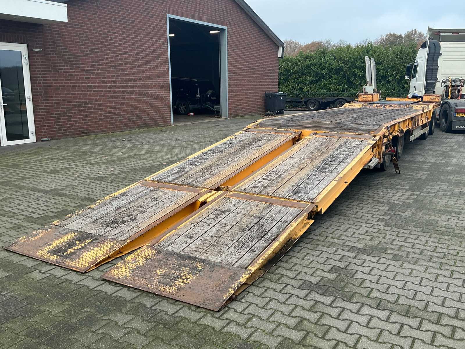 Laadvloer lagere gedeelte 590cm, . Eigen systeem om oprijplaten te laten zakken. (Accu’s zijn slecht) trekoog 40 en 50 aanwezig. Hoogtes: 102cm, 92m en 355cm. Voorzien van nieuwe APK. Nee Merk: Nooteboom Type: ASD-40-22 Kenteken: WJ-LL-73 Bouwjaar: 2003 Chassisnummer: XMRASD00030000492 Type aanhangwagencarrosserie: Plateauwagen Laadvermogen: 26480kg Aantal assen: 4 Kleur: Geel Datum eerste toelating: 2003-08-01 Datum eerste toelating (NL): 2003-08-01 APK vervaldatum: 2026-11-19 Lengte: 1150 Breedte: 255