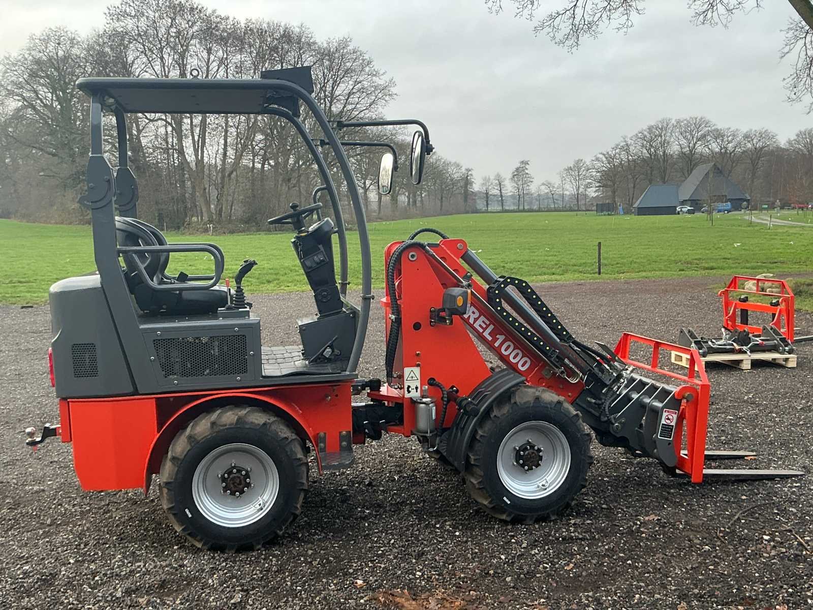 Voorzien van graafbak 0,23m³ en vorkenbord. Nominaal Hefvermogen: 900kg, max hefvermogen: 1100kg. Max storthoogte: 2715mm, spoorbreedte: 960mm. Voorzien van hydraulische snelkoppeling, load sensing, extra hydraulisch ventiel, led werkverlichting, trekhaak, verstelbare zitting en stuurkolom. Voorzien van lithium accu 72V/250A. Nee Merk: Everrun Type: Erel 1000TE Bouwjaar: 2024 Serienummer: 232521 Brandstof: Elektrisch Graafbak afm. b: 1280mm Bandenmaat: 29x12,50-15 Cabine: true Afgelezen urenstand: 12 Eigen gewicht: 2310kg Totale afmeting L: 3822mm Totale afmeting Breedte: 1270mm Totale afmeting Hoogte: 2380mm