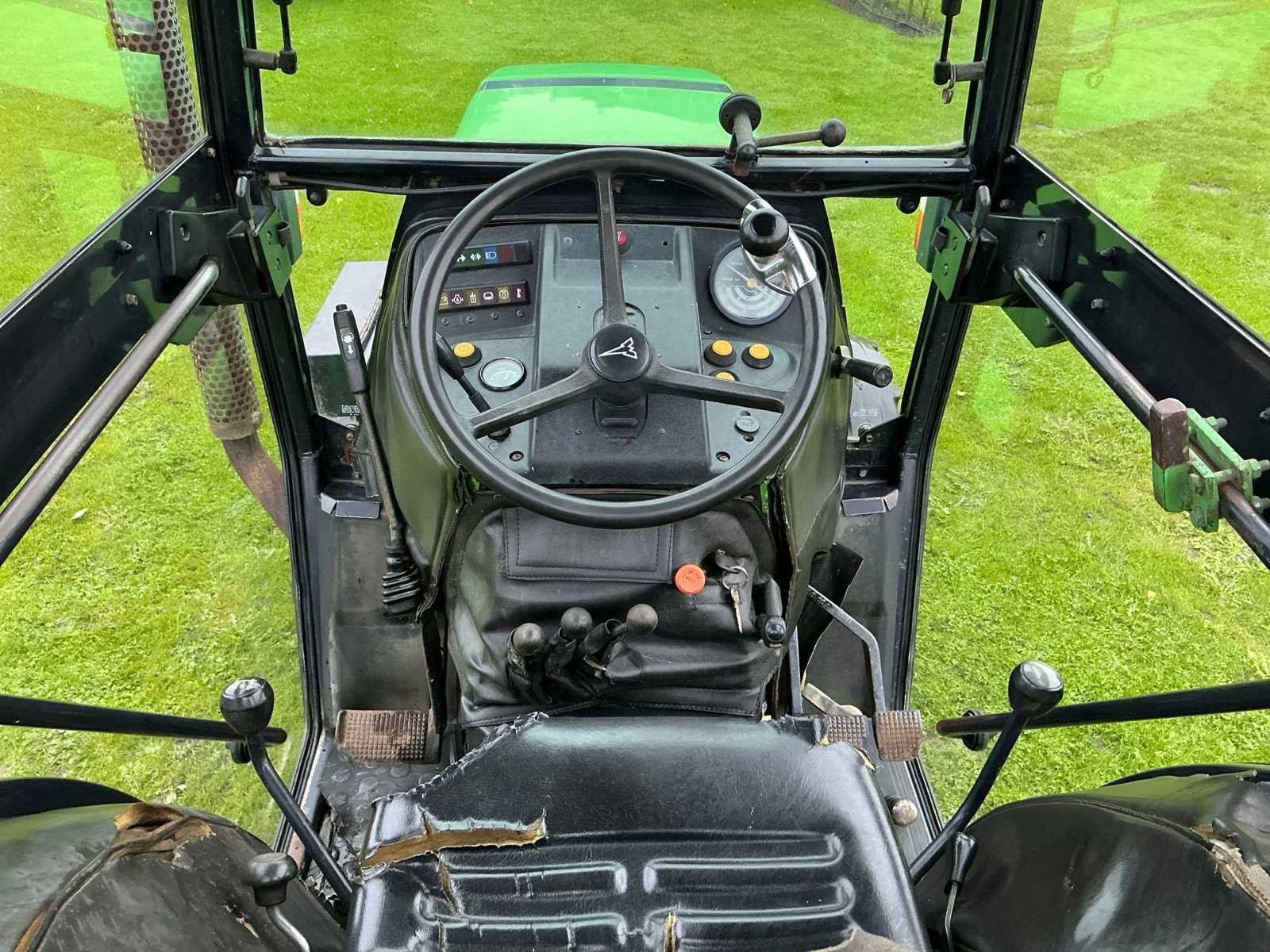 Voorzien van: 4cilinder Deutz dieselmotor, 2 xdubbelwerkende hydraulische ventielen, 1x enkelwerkend ventiel, remventiel, 540/750/1000 rpm aftakas Nee Merk: Deutz Type: DX 3.70F Bouwjaar: 1992 Kenteken: T-75-GHG Afgelezen urenstand: 7379 Versnellingsbaktype: Handgeschakeld Bandenmaat voor: 7.50-16 Bandenmaat achter: 380/85R28 Aantal hydraulische ventielen achter: 3 Cabine: true Chassisnummer: 77760419 Datum eerste toelating: 1992-05-19