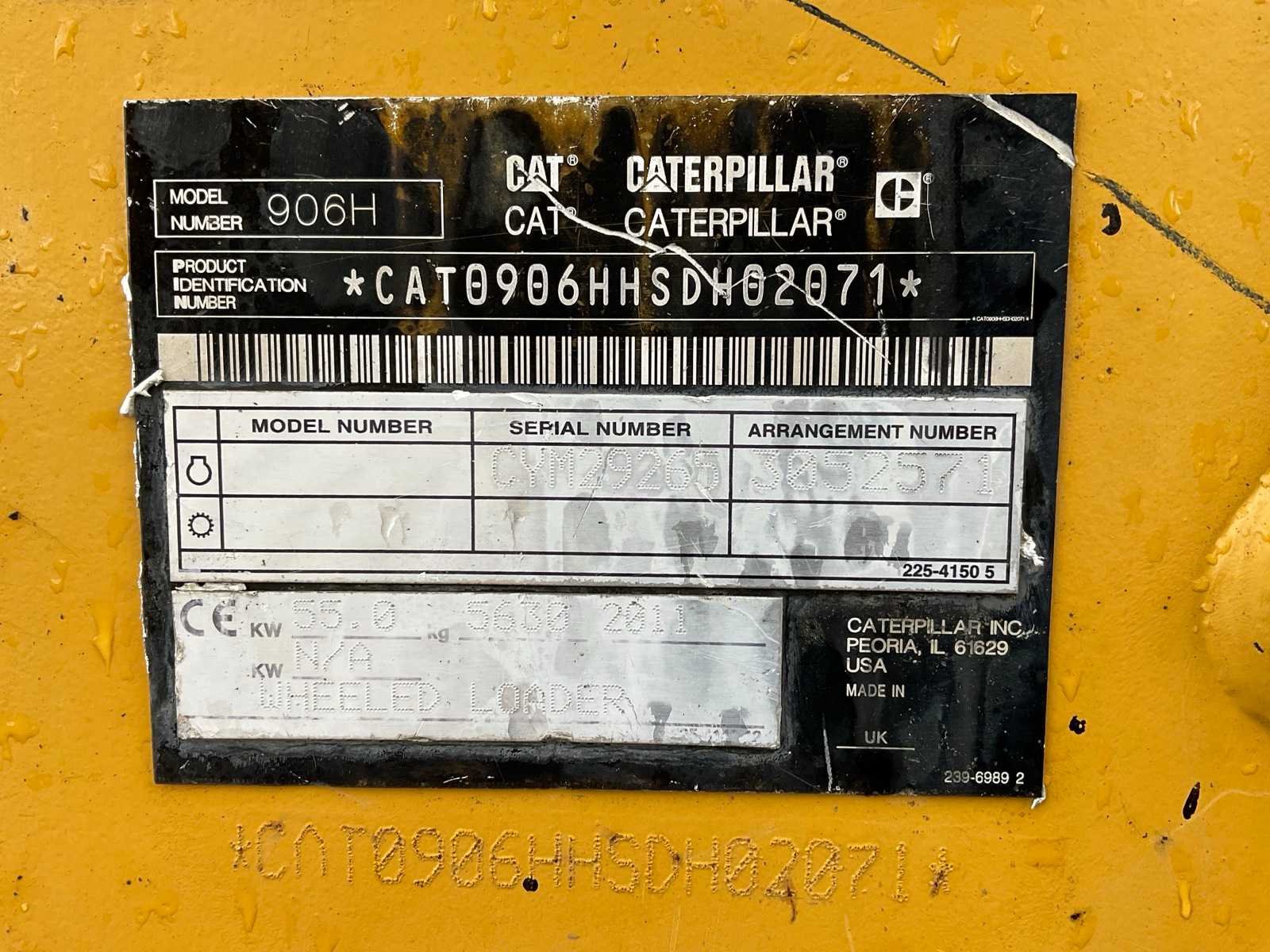 Voorzien van: schepbak (2060mm), (rookt in verband met lekkende verstuiver) No Merk: Caterpillar Type: 906H Bouwjaar: 2011 Serienummer: CAT0906HHSDH02071 Merk motor: Cat 3.4H Motorvermogen (kW): 55kW Aantal cilinders: 4 Brandstof: diesel Bandenmaat: BKT 12,5/80-18 Cabine: true Afgelezen urenstand: 6114 Totale afmeting Breedte: 2060mm