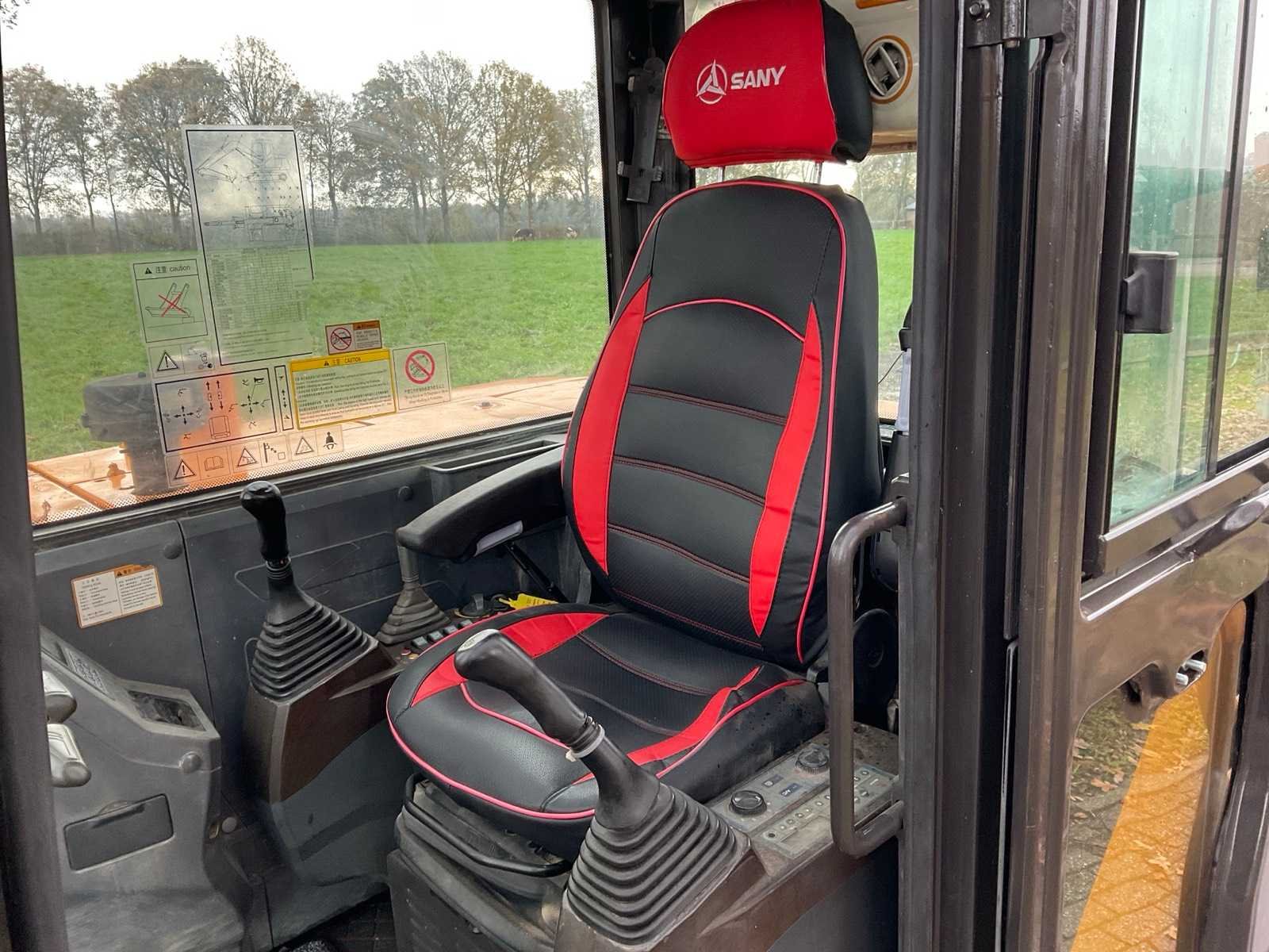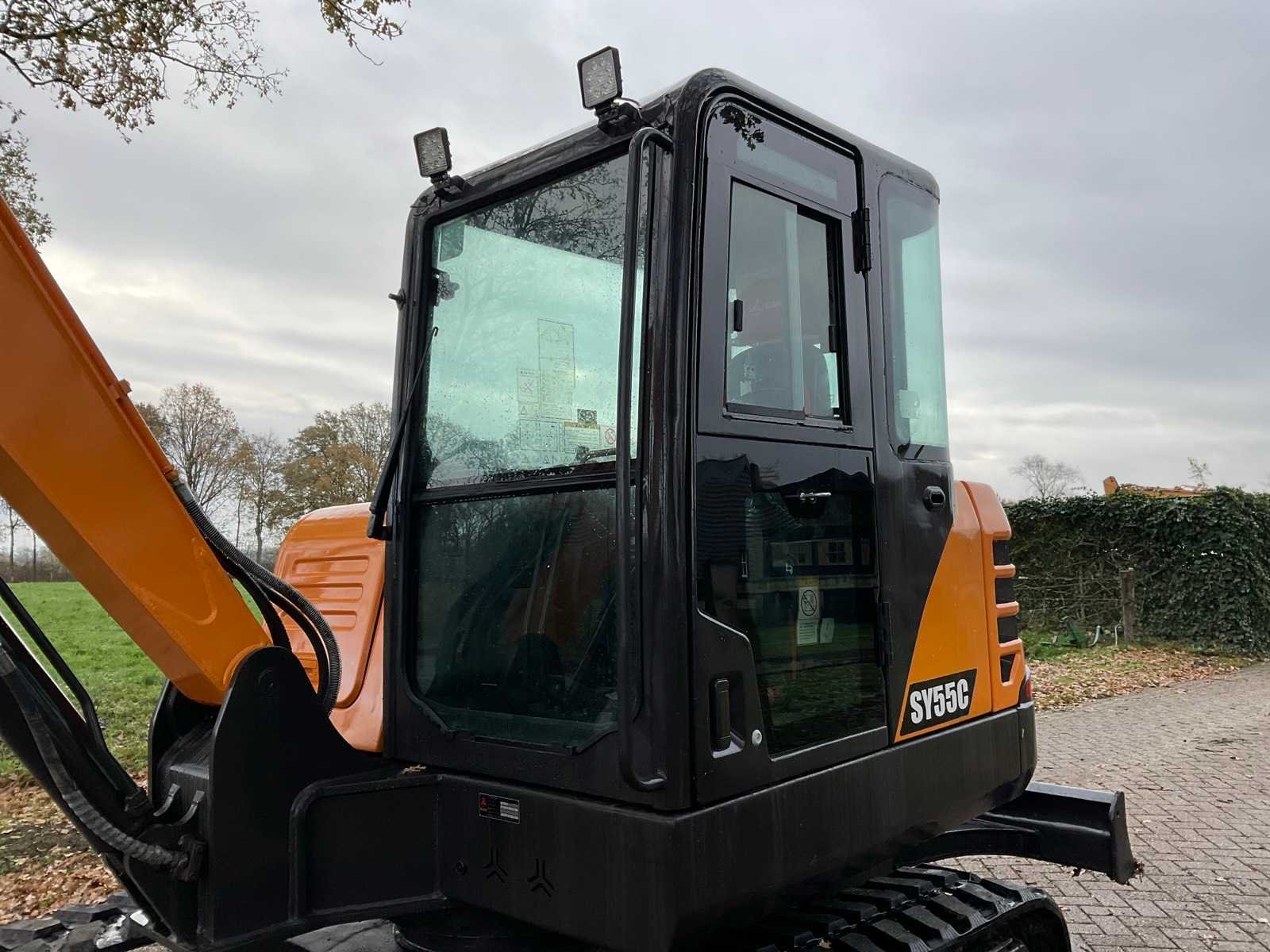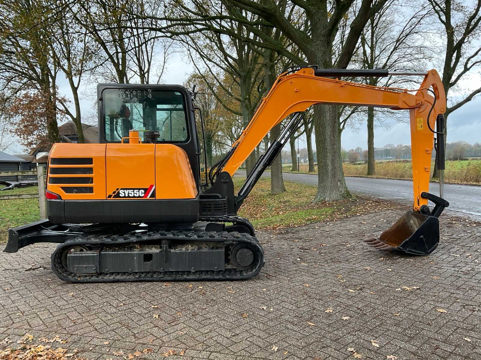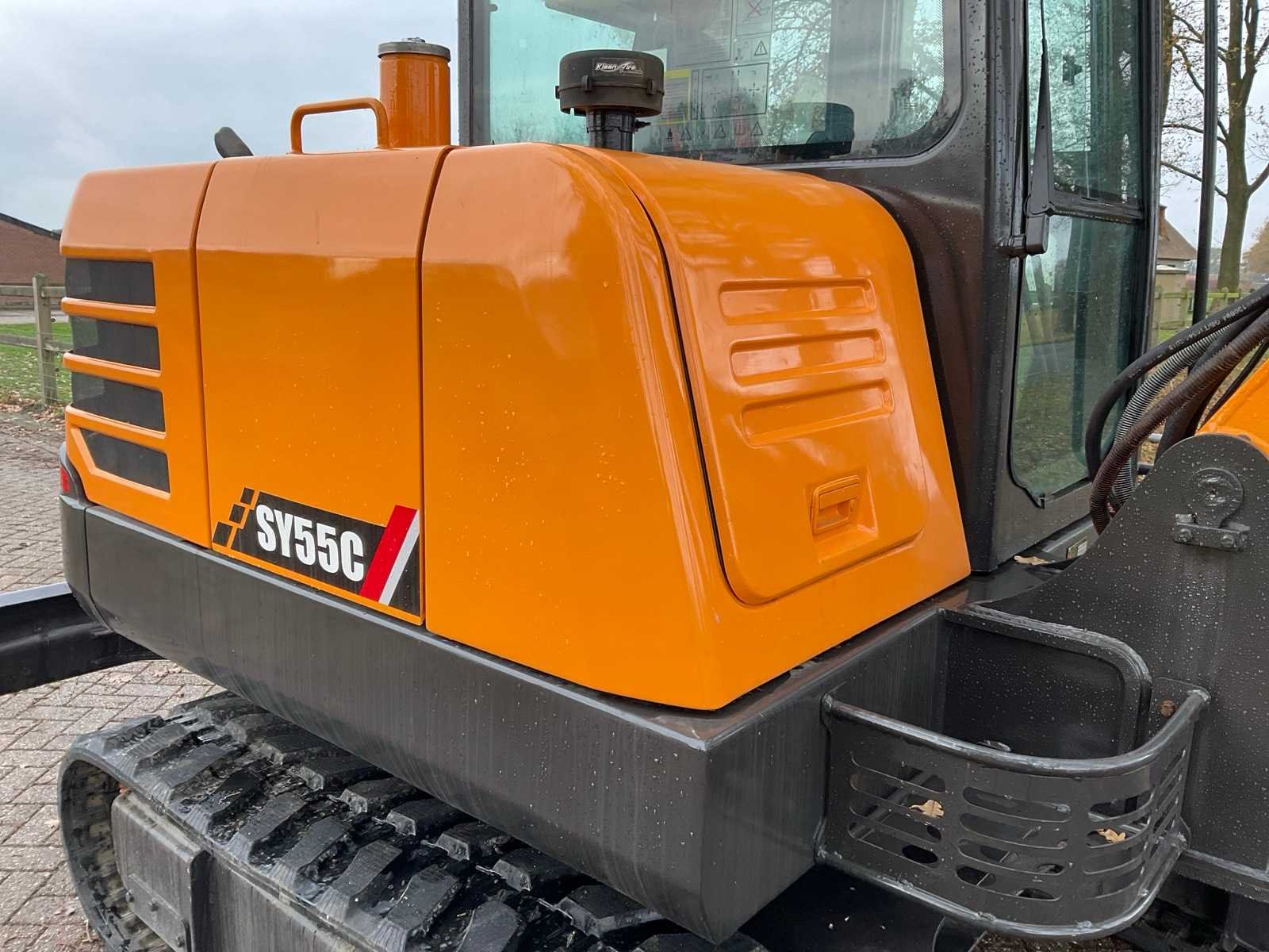 Voorzien van: graafbak (690mm), 2-delige giek, schaafblad, airconditioning, No Merk: Sany Type: SY55C Serienummer: SY005QCBN0765 Motorvermogen (kW): 36kW Aantal cilinders: 4 Brandstof: diesel Gieklengte: 4550mm Met graafbak: true Graafbak afm. b: 690mm Rups breedte: 390mm Cabine: true Afgelezen urenstand: 5800 Totale afmeting Breedte: 2000mm Totale afmeting Hoogte: 2540mm
