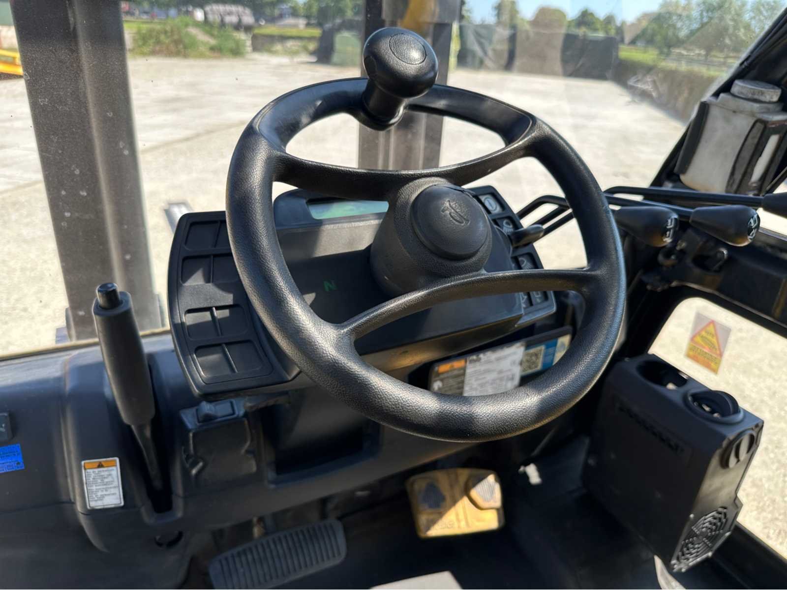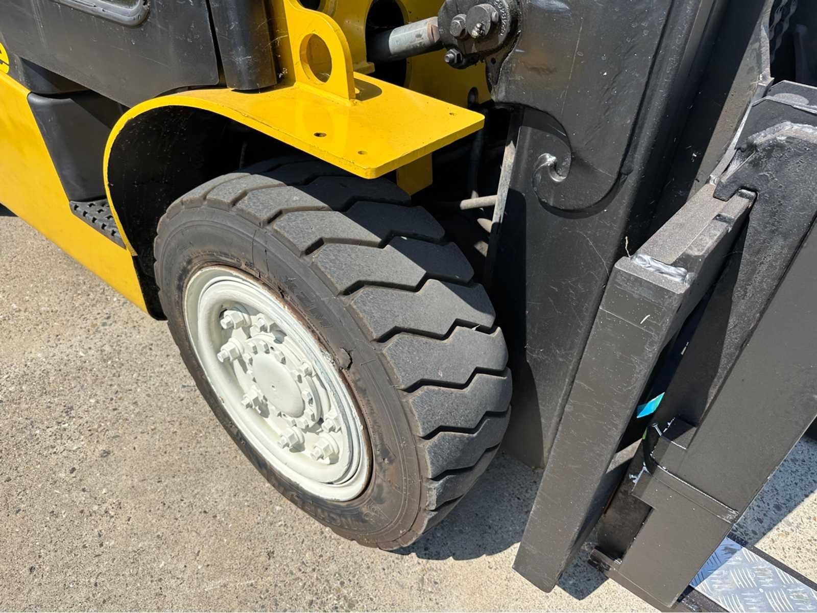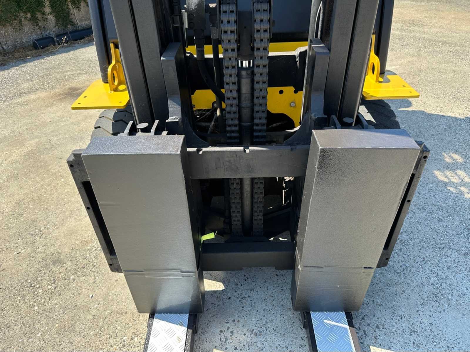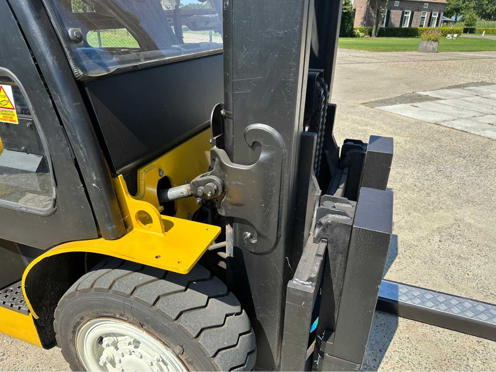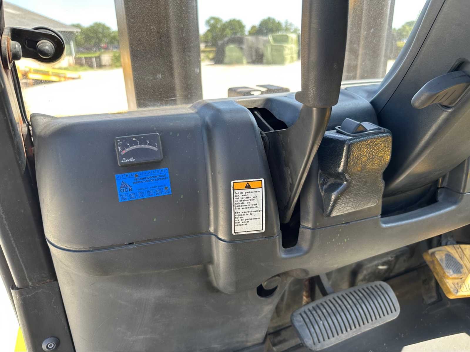 Motor: Kubota WG3800-L-C, Motorvermogen: 63,2 kW bij 2.400 tpm, Cilinderinhoud: 3,769 liter, Aantal cilinders: 4, Emissienorm: Stage IIIA, Transmissie: Hydrostatisch (EW-type),Gewicht: 6.830 kg, Banden: Superelastisch (SE), Draaicirkel: 2,62 m, Maximale rijsnelheid: 25,3 km/u, Cabine: ROPS/FOPS gecertificeerd, zonder lange vorken en contragewicht; Nee Merk: Yale Type: GLP45S Bouwjaar: 2011 Serienummer: G813B02494J Brandstof: LPG Free-lift: true Duplex mast: true Hefvermogen: 4500kg Luchtbanden: true Minimale doorrijhoogte: 2200mm LPG: true