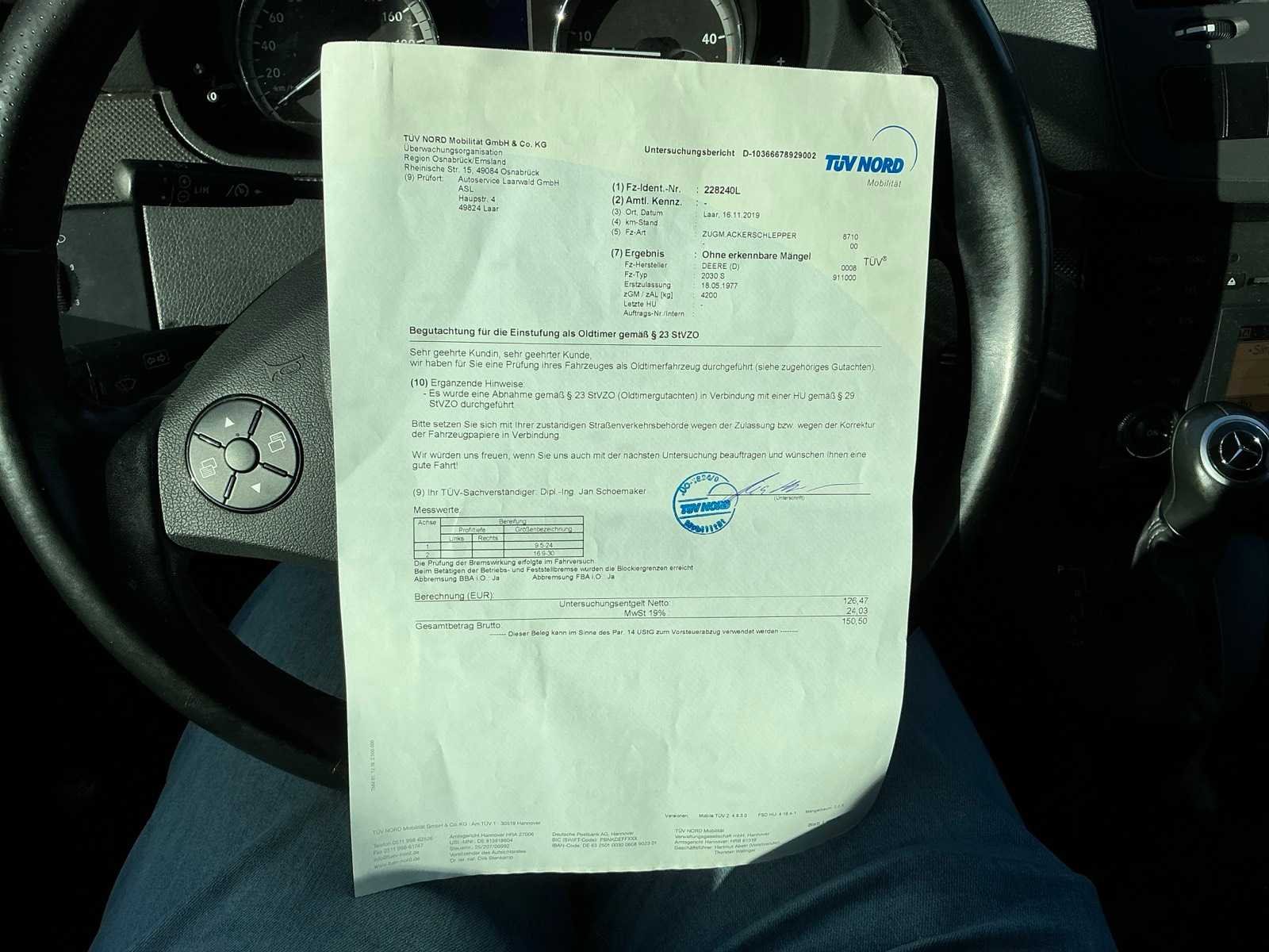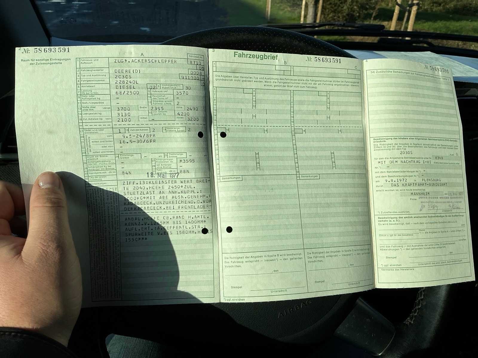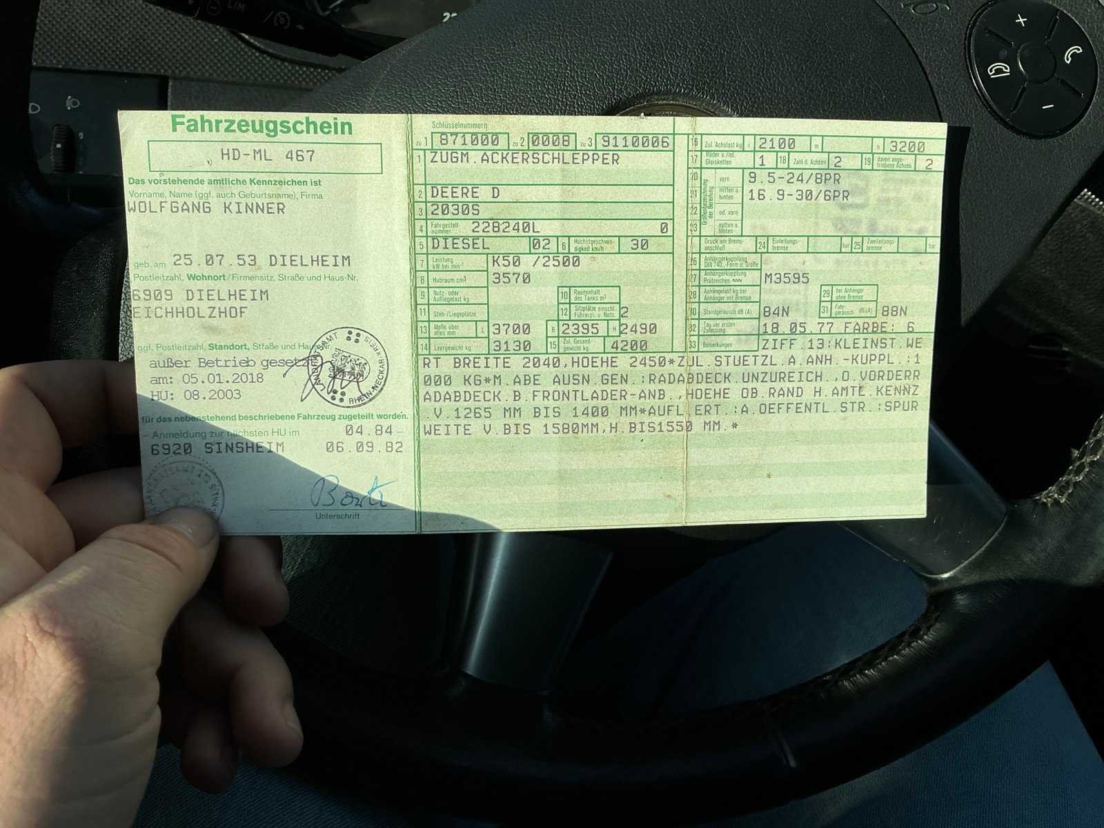 John deere 2030s;met Duitse papieren;compleet opnieuw gespoten 2k lak; 4 nieuwe alliance farmpro banden; mechanische 4wd elektrisch inschakelbaar;boventrekhaak;verlichting werkend;handgeschakeld 4 versnellingen hoge en lage gearing; snelheid 32kmp;Fritsmeijer zonnedak; Nee Merk: John Deere Type: 2030S Bouwjaar: 1977 Kenteken: Duitse papieren/tuv brief zie foto’s! Motorvermogen (kW): 50kW Afgelezen urenstand: 67 Versnellingsbaktype: Handgeschakeld hoge en lage gearing 4 versnellingen Aftakastoerental: 540rpm Aantal hydraulische ventielen achter: 1 Bandenmaat voor: 250/85R24 Bandenmaat achter: 420/85R30 Chassisnummer: 228240L Datum eerste toelating: 1977 Nationaliteit documenten: Duitse papieren/tuv brieven Zelf rijdend exporteren: Yes Leveringsvoorwaarden: Na aankoop ophalen binnen 15 dagen
