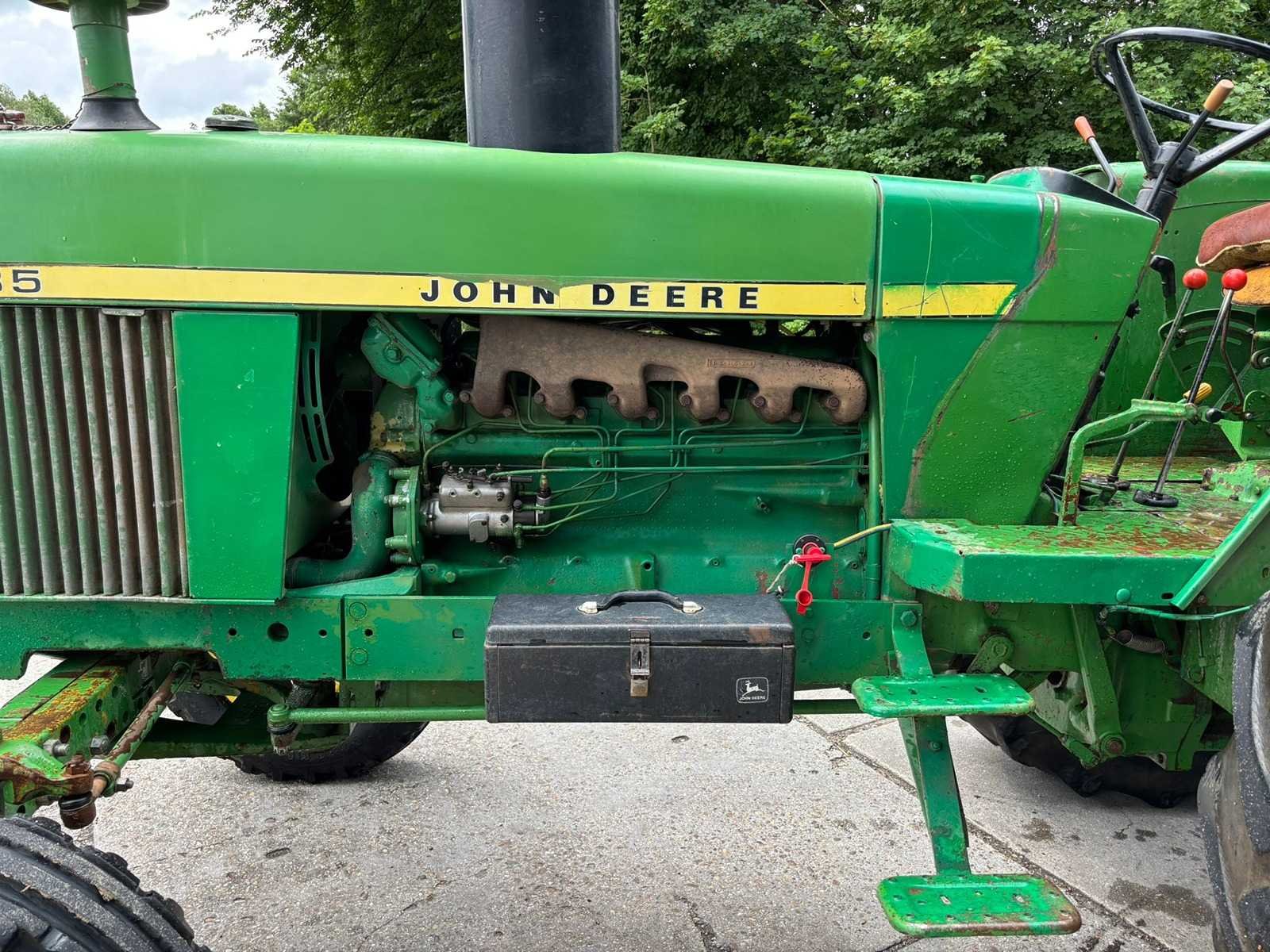 Voorzien van: John Deere motor 6329 DCE 11, 6 cilinder , bouwjaar:1978, motoruren:1800, motorvermogen:90 Pk, maximale snelheid:30 Km/u, aftakas:540/1000, tweewielaandrijving, mechanisch differentieelslot achter,8 vooruit, 4 achteruit, stuurbekrachtigingechanische, open bestuurdersplaats. No Merk: John Deere Type: 3135 2RM Bouwjaar: 1977 Serienummer: 065675CB Chassisnummer: 065675CB Motorvermogen (kW): 67kW Versnellingsbaktype: 8/4 Bandenmaat voor: 7.50-18 Bandenmaat achter: 18.4R34 Frontgewichtenset: true Eigen gewicht: 6000kg Totale afmeting L: 4936mm Totale afmeting Breedte: 2400mm Totale afmeting Hoogte: 2485mm