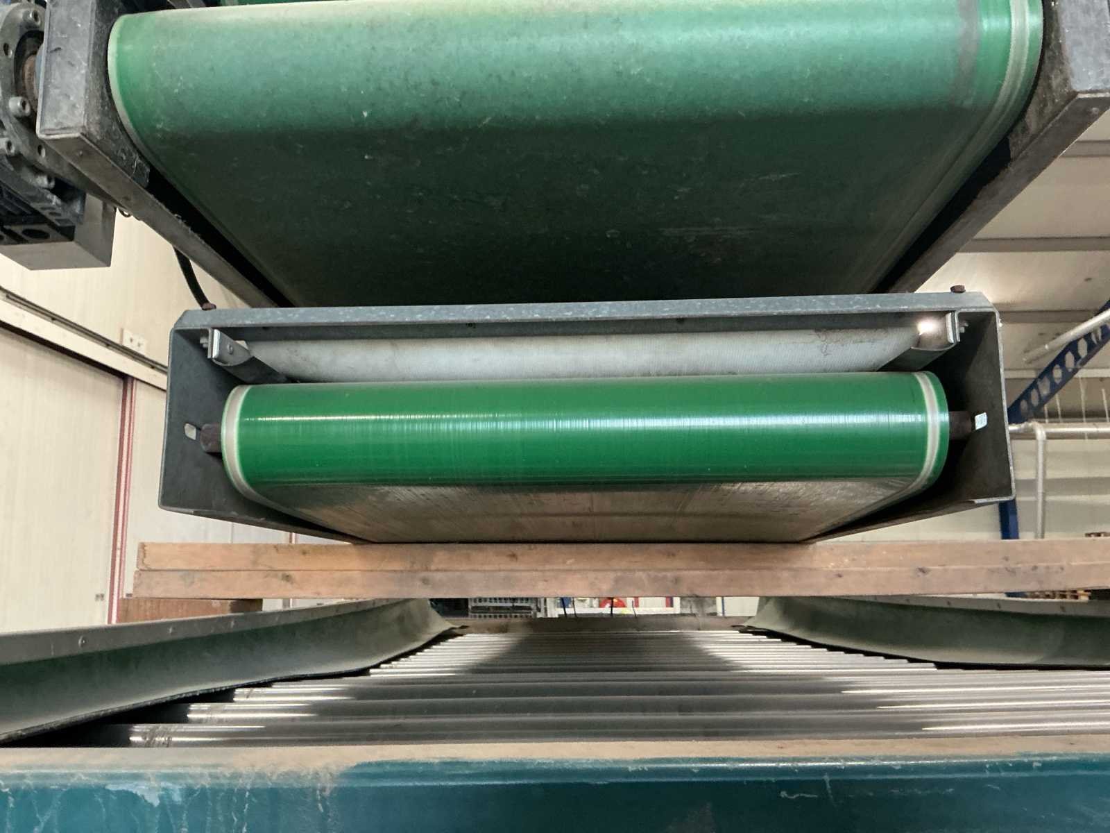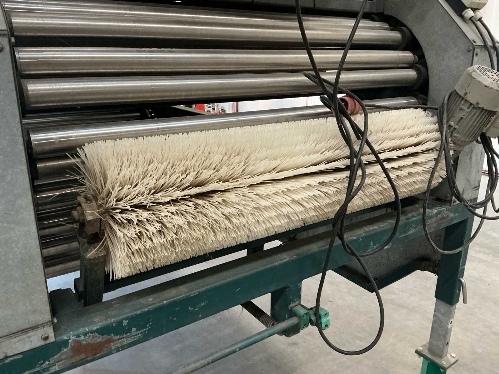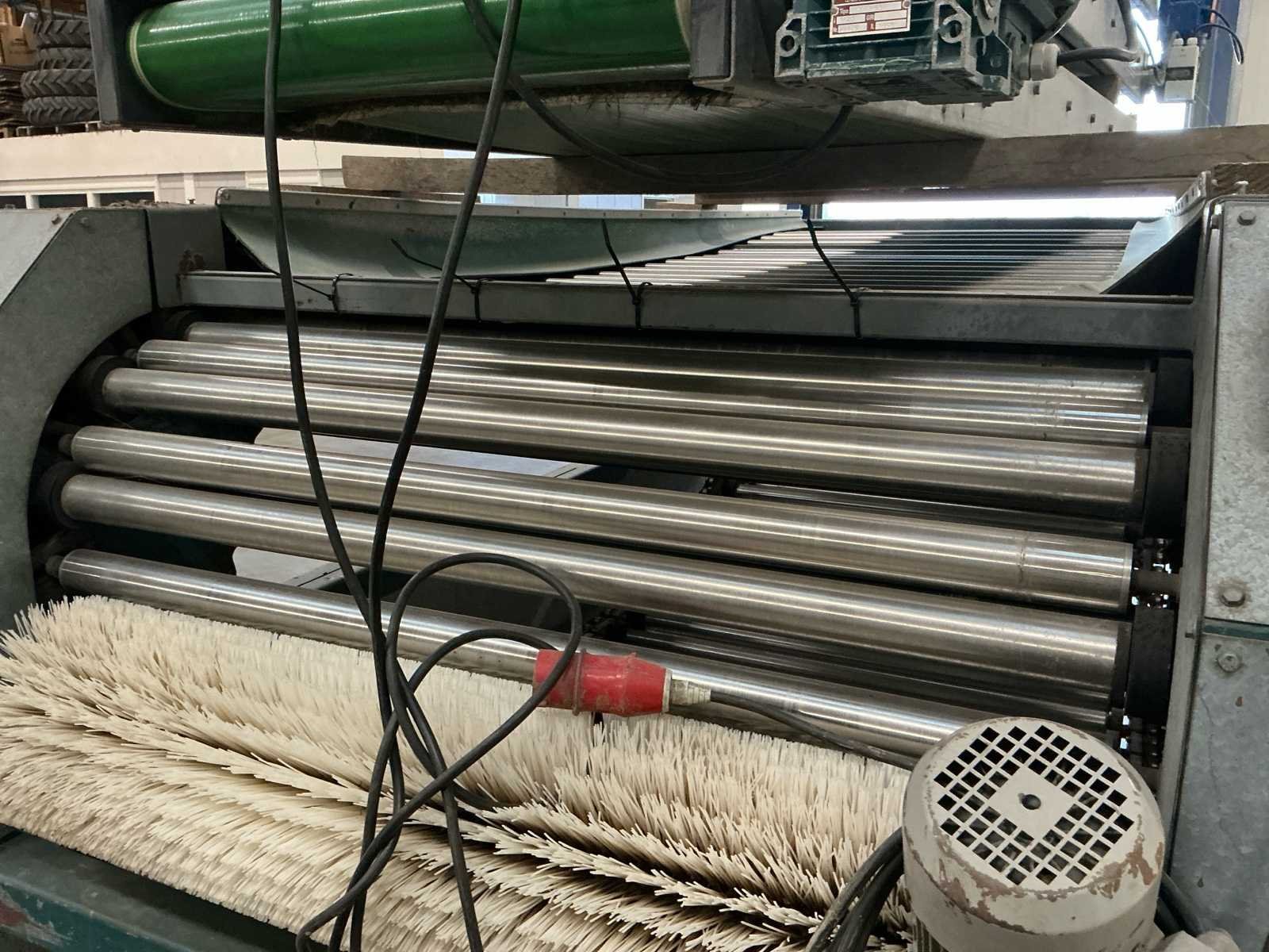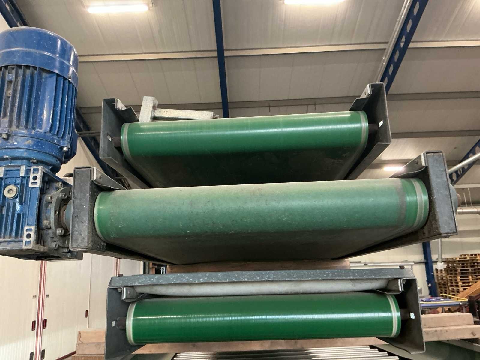 Lopers breedte (rollen) 1200mm; doorlaat variabel instelbaar 6mm tot 70mm; afvoerbanden 600mm breed; 3x 3M afvoerbanden; 6 standaarden voor de rollen; 220v frequentie regeling; 380V voor de afvoerbanden Nee Merk: Allround Type: R120-57 Bouwjaar: 1998 Aansluiting: 220V Totale afmeting L: 3800mm Totale afmeting Breedte: 1750mm Totale afmeting Hoogte: 2000mm