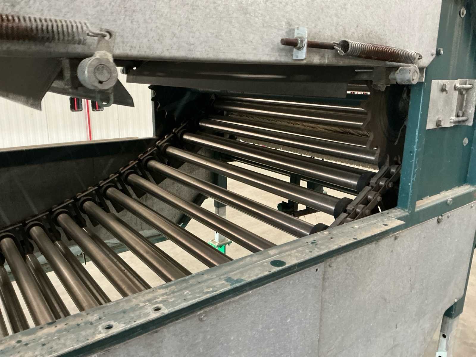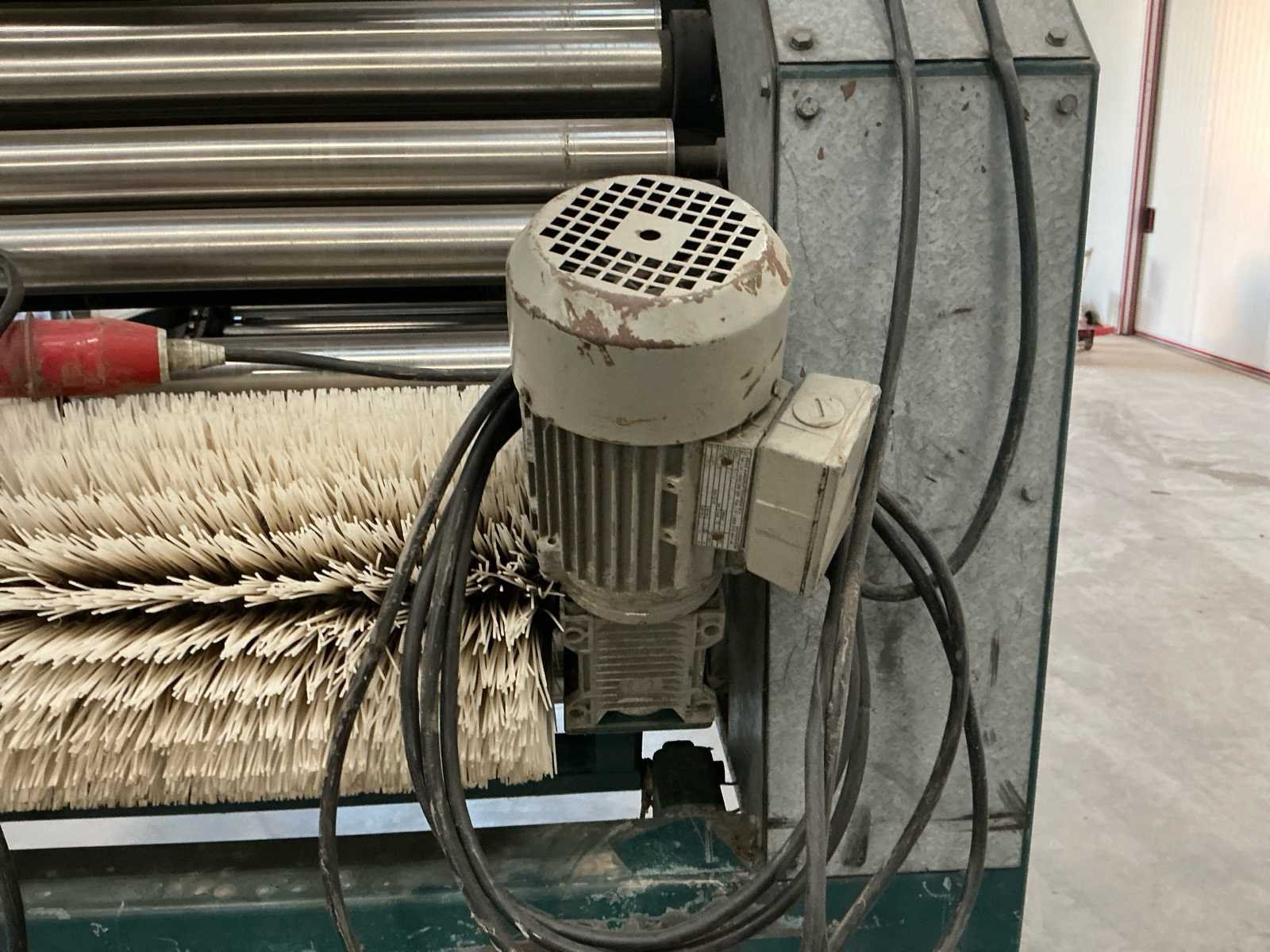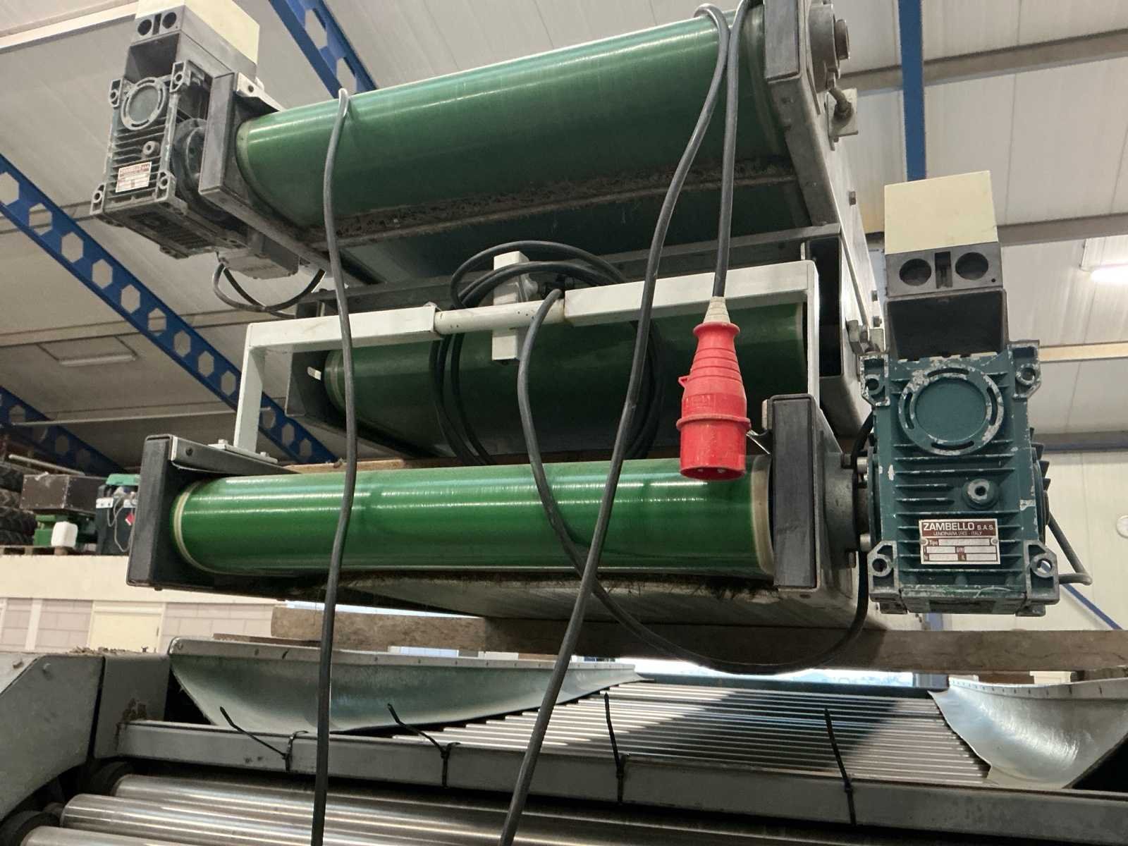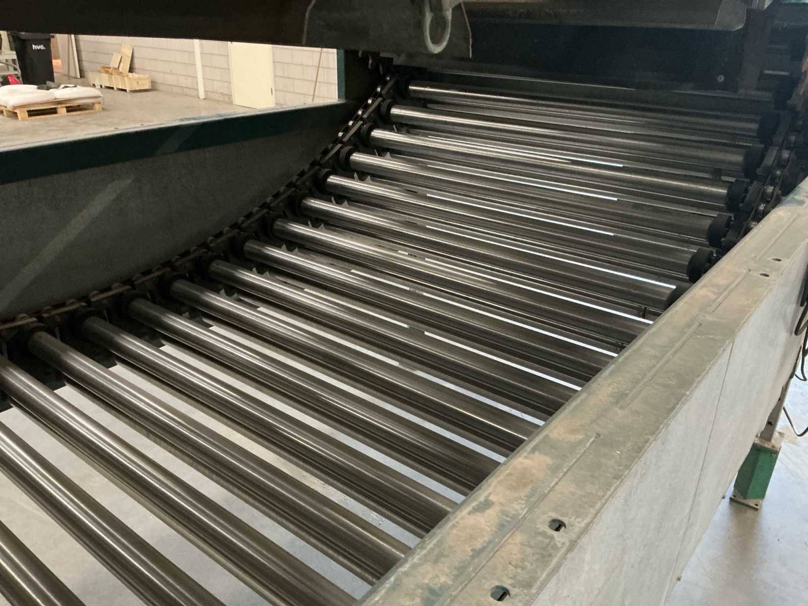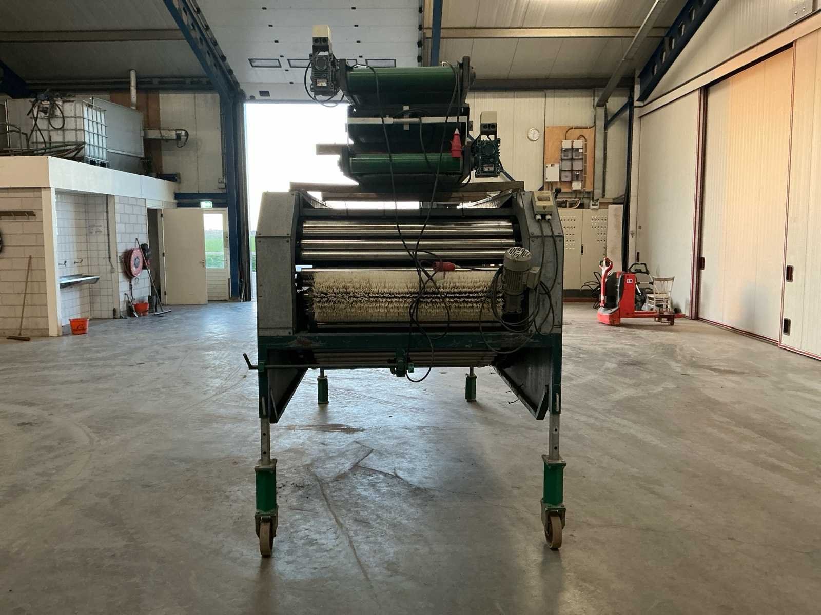 Lopers breedte (rollen) 1200mm; doorlaat variabel instelbaar 6mm tot 70mm; afvoerbanden 600mm breed; 3x 3M afvoerbanden; 6 standaarden voor de rollen; 220v frequentie regeling; 380V voor de afvoerbanden Nee Merk: Allround Type: R120-57 Bouwjaar: 1998 Aansluiting: 220V Totale afmeting L: 3800mm Totale afmeting Breedte: 1750mm Totale afmeting Hoogte: 2000mm