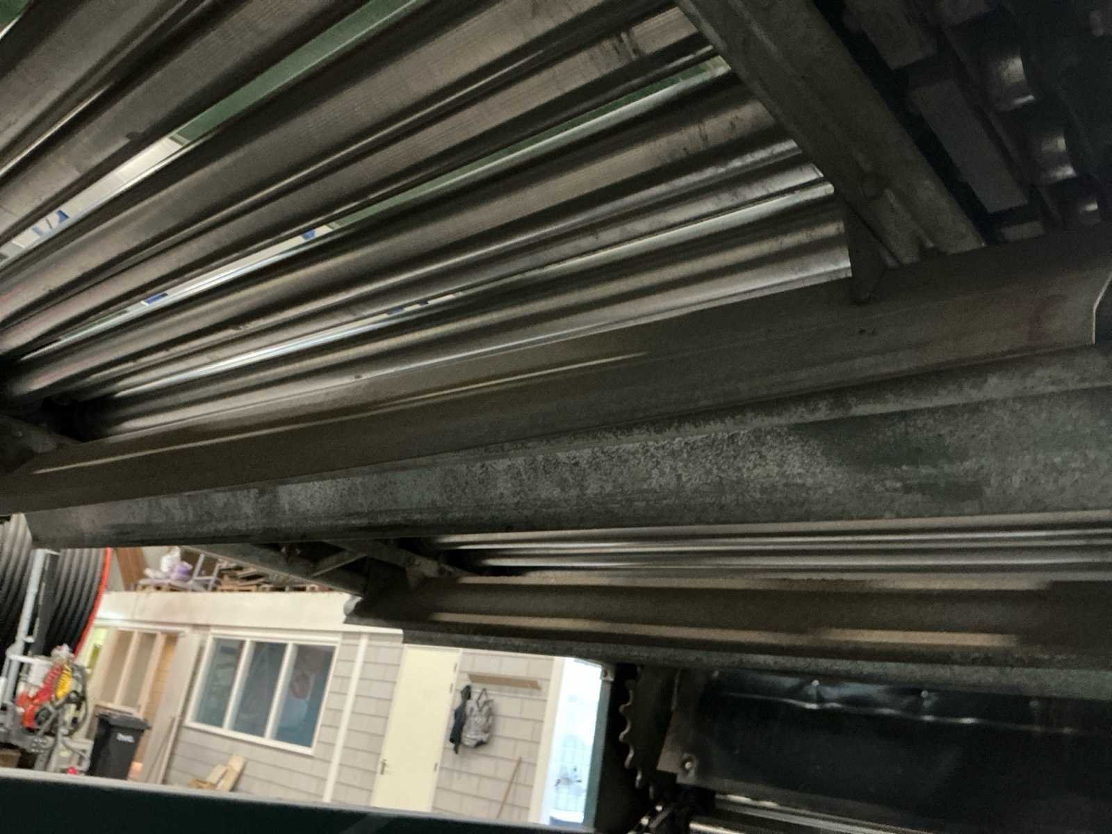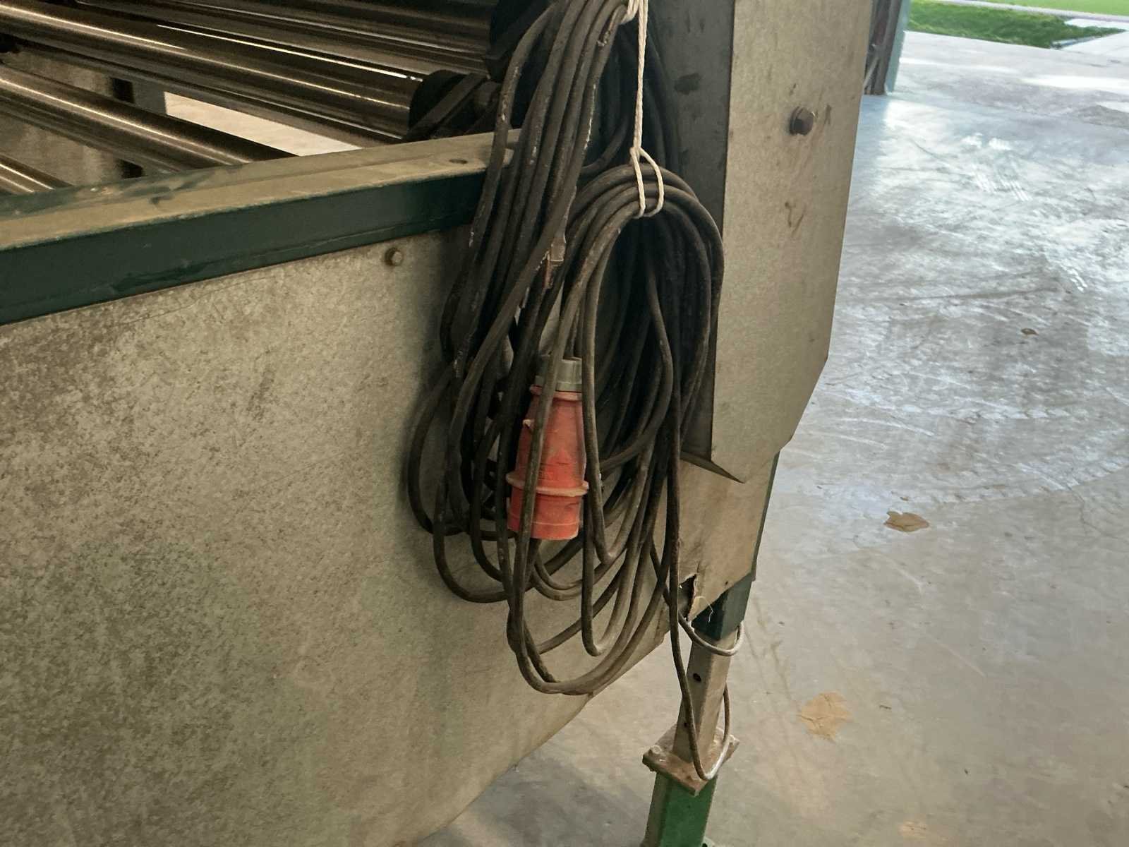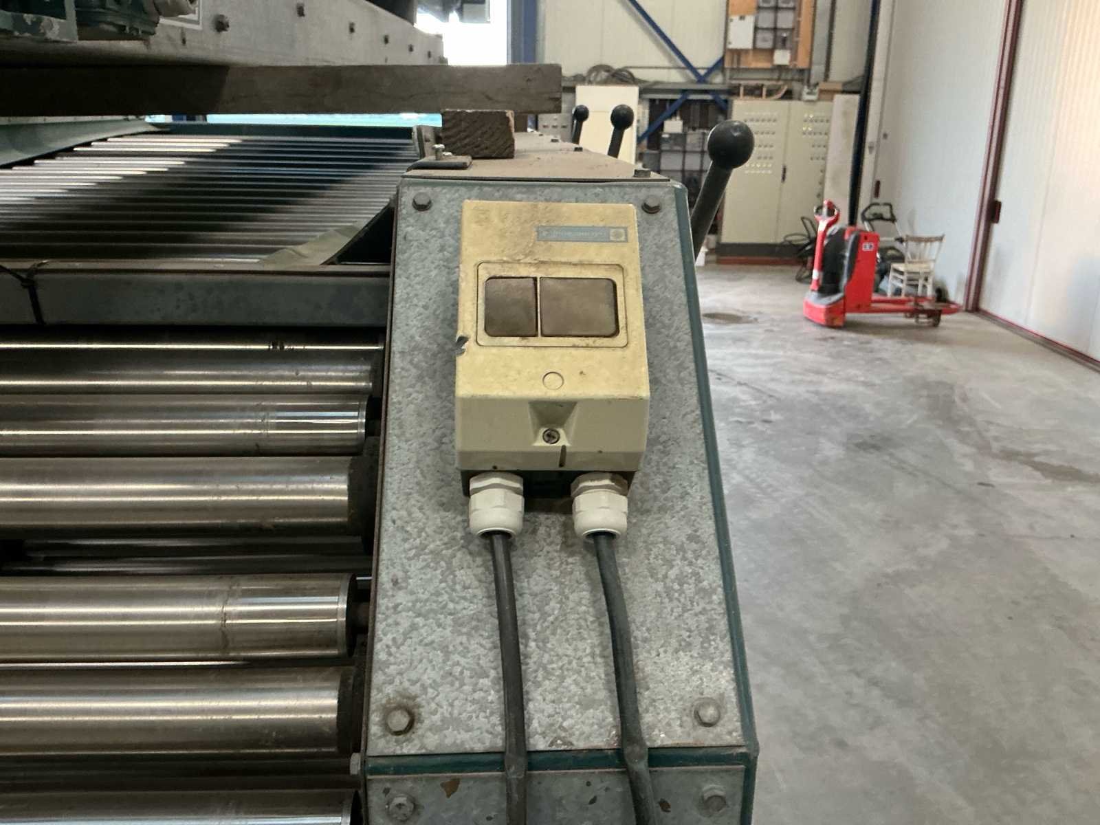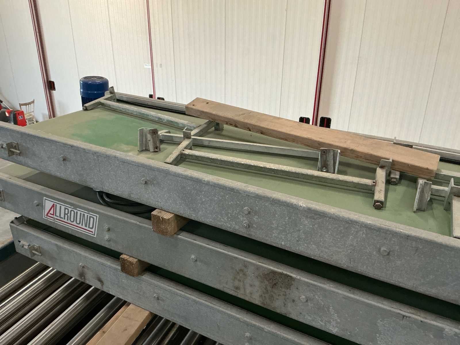 Lopers breedte (rollen) 1200mm; doorlaat variabel instelbaar 6mm tot 70mm; afvoerbanden 600mm breed; 3x 3M afvoerbanden; 6 standaarden voor de rollen; 220v frequentie regeling; 380V voor de afvoerbanden Nee Merk: Allround Type: R120-57 Bouwjaar: 1998 Aansluiting: 220V Totale afmeting L: 3800mm Totale afmeting Breedte: 1750mm Totale afmeting Hoogte: 2000mm