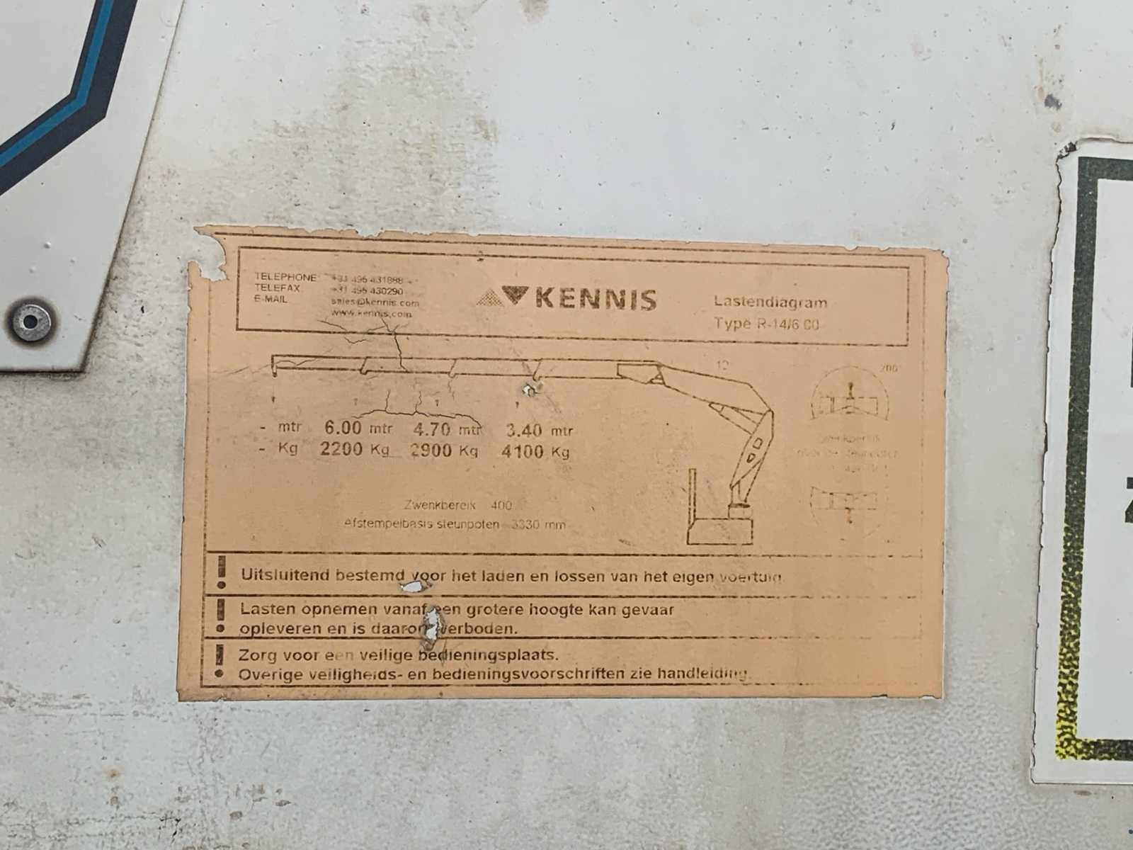 1 as liftas * 2 assen meegestuurd * voorzien van. 2006 Kennis 14000 kraan 2x uitschuifbaar tot 6 meter max hefvermogen 4100Kg Nee Merk: kennis Type: Pacton TPD.348.C-B Type aanhangwagencarrosserie: Open Aanhangwagen Bouwjaar: 2008 Chassisnummer VIN: XL9TPD348KCZ52069 Kenteken: OK86RR Datum eerste toelating (NL): 2008-10-02 Datum eerste toelating: 2008-10-02 APK vervaldatum: 2025-11-13 Aantal assen: 3 Laadvermogen: 39320kg Eigen gewicht: 8680kg Totale afmeting L: 13580mm Totale afmeting Breedte: 2550mm Zelf rijdend exporteren: Mogelijk Leveringsvoorwaarden: Niet gefundeerd - onverpakt