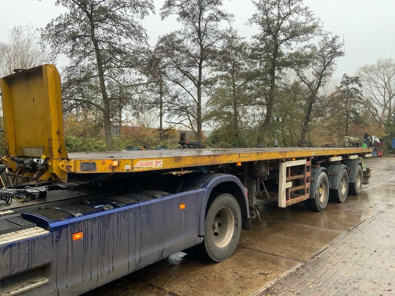 Maximaal toegestane massa 45000Kg * uitschuifbaar tot 18300 mm * 3x meesturende as * lucht geveerd * trommelremmen * let op vrachtwagen niet inbegrepen Nee Merk: broshuis Type: 3 AOU-48S Type aanhangwagencarrosserie: Open Aanhangwagen Bouwjaar: 2001 Chassisnummer VIN: XL933H0SE1L007203 Kenteken: OG34TD Datum eerste toelating (NL): 2001-10-12 Datum eerste toelating: 2001-10-12 APK vervaldatum: 2024-03-07 Aantal assen: 3 Laadvermogen: 36630kg Eigen gewicht: 8370kg Totale afmeting L: 12200mm Totale afmeting Breedte: 255mm Totale afmeting Hoogte: 1600mm Zelf rijdend exporteren: Mogelijk