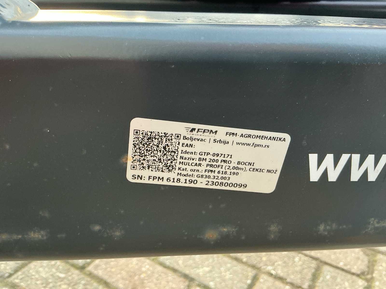 Capaciteit tot 5cm dik, Voorzien van: aftakas, achteraanbouw, verstekvertelling, categorie 2 en 3 aansluiting, 45 toeren aandrijving, aandrijving via 4 V-snaren, tegenmes, 24 klepels, loper met schraper, uitbreekbeveiliging, Nee Merk: FPM Type: 618 190 / BM 200PRO Bouwjaar: 2023 Serienummer: 230800099 Gewicht: 788kg Totale afmeting L: 2600mm Totale afmeting Breedte: 2800mm Totale afmeting Hoogte: 1350mm