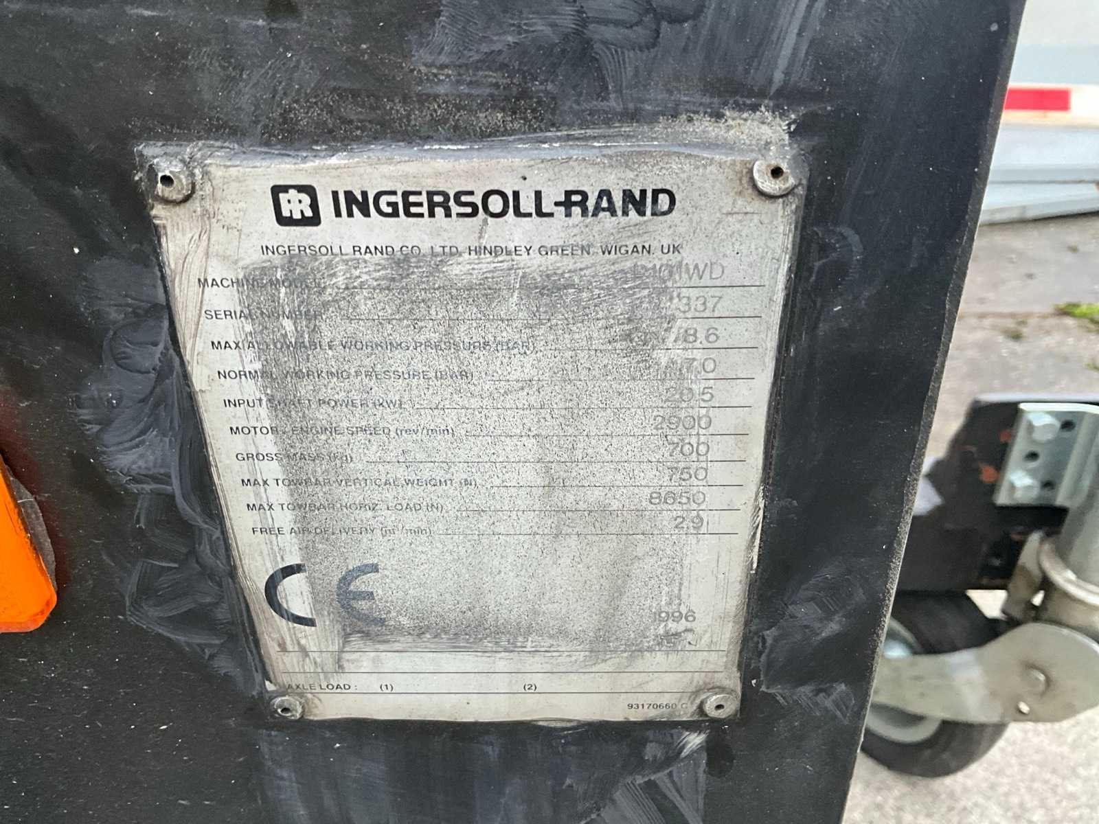 Start en loopt, geeft lucht Nee Merk: Ingersoll Rand Type: P101WD Bouwjaar: 1996 Mobiel: true Capaciteit.: 7bar Vermogen: 20.5kW Eigen gewicht: 700kg