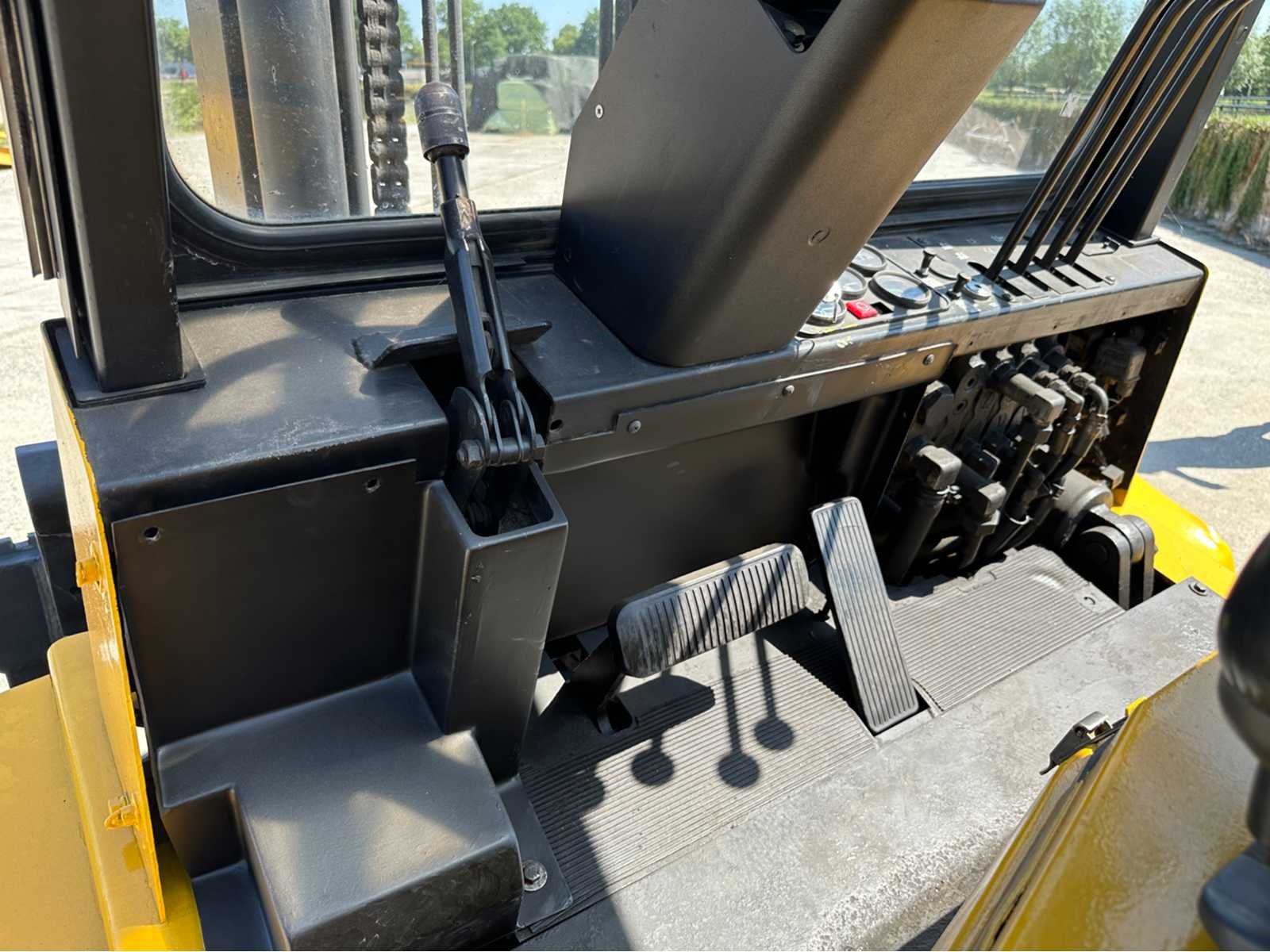 Motor: Perkins 1004.42 dieselmotor met een vermogen van 60 kW, Gewicht: 7,08t, Draaicirkel: circa: 2,75 m, Rijsnelheid: ± 22–24 km/h, Hefsnelheid: ± 0,53–0,55 m/s, Daalsnelheid: ± 0,51/0,39 m/s (met/zonder last) Nee Merk: Jungheinrich Type: DFG50 Bouwjaar: 1992 Serienummer: 74611023x8 Brandstof: Diesel Aantal wielen: 4 Afgelezen urenstand: 4288 Duplex mast: true Hefvermogen: 5000kg Lepellengte: 1200mm Max. hefhoogte: 5000mm Vol rubber banden: true Minimale doorrijhoogte: 2700mm Totale afmeting Breedte: 4530mm Totale afmeting Hoogte: 3290mm Diesel: true
