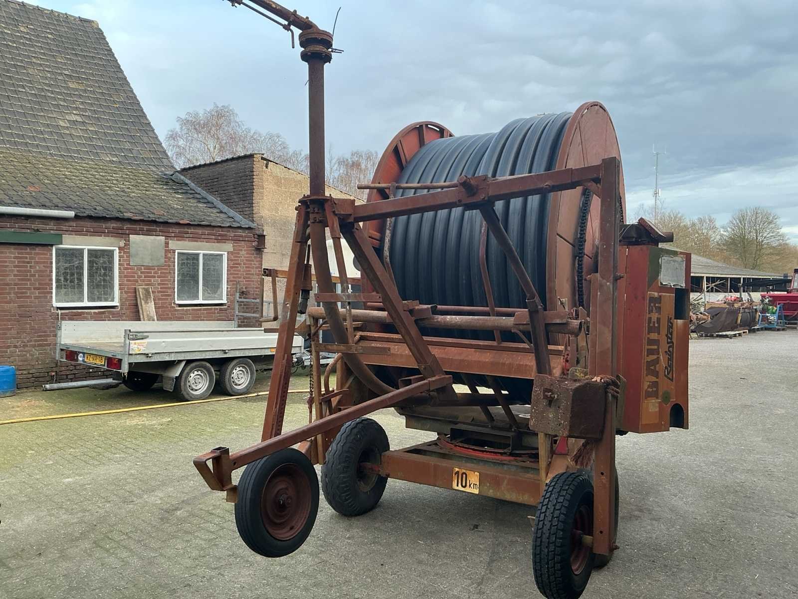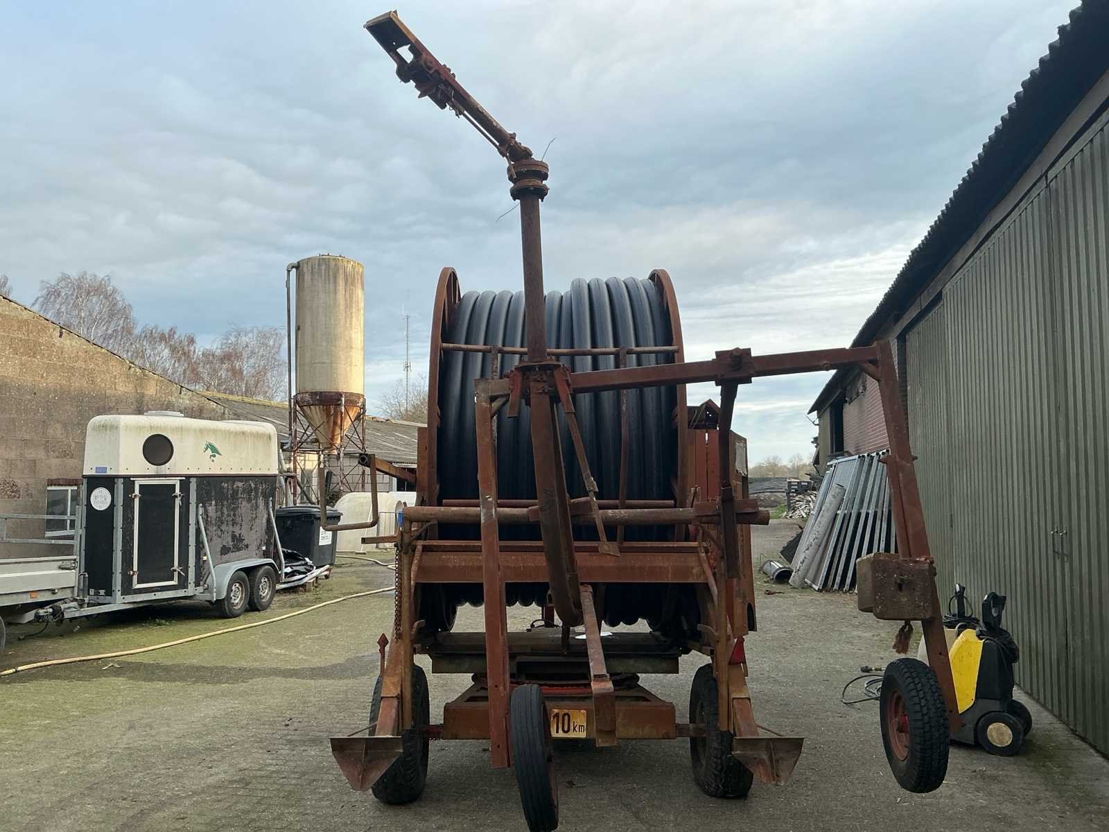 Voorzien van: sproeikop, Haspelinstallatie Bauer Pumpenwerk (Oostenrijk) type 100-510, bouwjaar 1997, met ±300–310 m slang Ø100 mm, maximale bedrijfsdruk 9 bar, verrijdbaar chassis met trekboom, geschikt voor watertransport/beregening. No Merk: Bauer Lengte: 3000cm Type: 100-310 Bouwjaar: 1997 Serienummer: 009-24236 Diameter circa: 100mm Aftakaspomp: true Steunpoten: true Totale afmeting L: 6000mm Totale afmeting Breedte: 2500mm Totale afmeting Hoogte: 3200mm