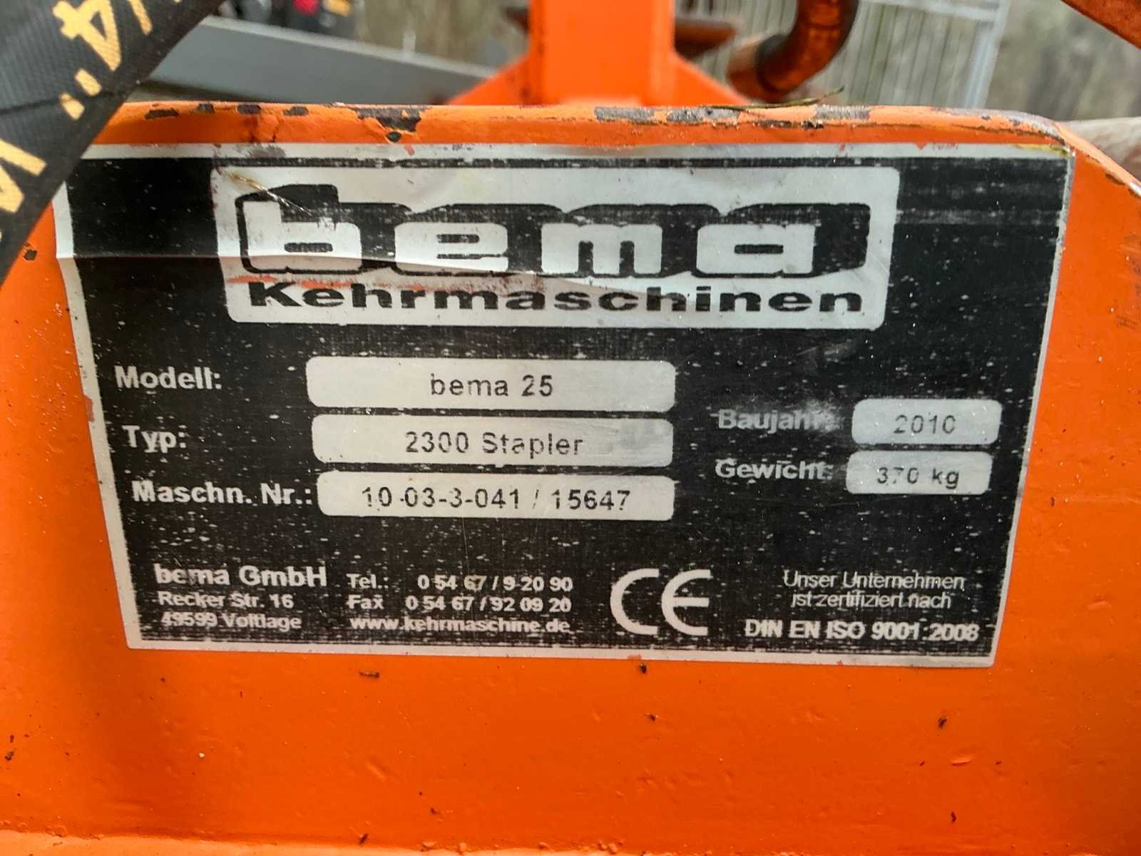 Voorzien van: zijborstel, geleidewielen, afvangbakbevestiging, hijsogen Nee Merk: Bema Type: Serie 25 Bouwjaar: 2010 Serienummer: 15647 Eigen gewicht: 370kg Werkbreedte: 2300mm Totale afmeting L: 1600mm Totale afmeting Breedte: 2700mm Totale afmeting Hoogte: 850mm