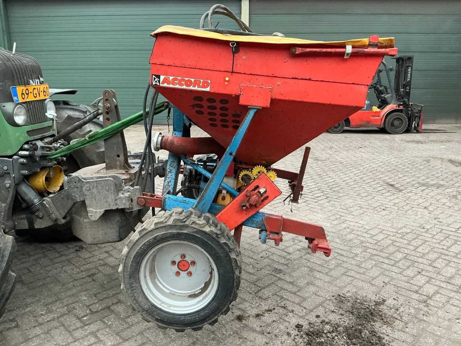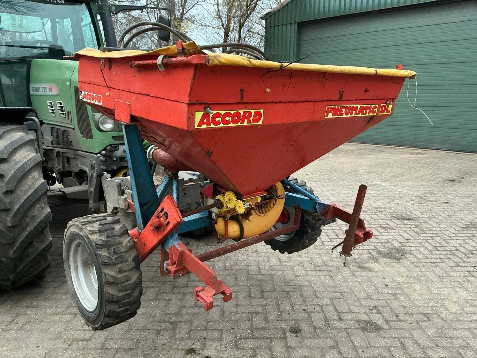 Voorzien van: stapwiel, hydraulisch aangedreven blower, lange hydrauliekslang (6m), afgifte instelbaar, hectareteller (50553), steunpoot Nee Merk: Accord Type: Pneumatic DL Totale afmeting L: 1350mm Totale afmeting Breedte: 1600mm Totale afmeting Hoogte: 1500mm