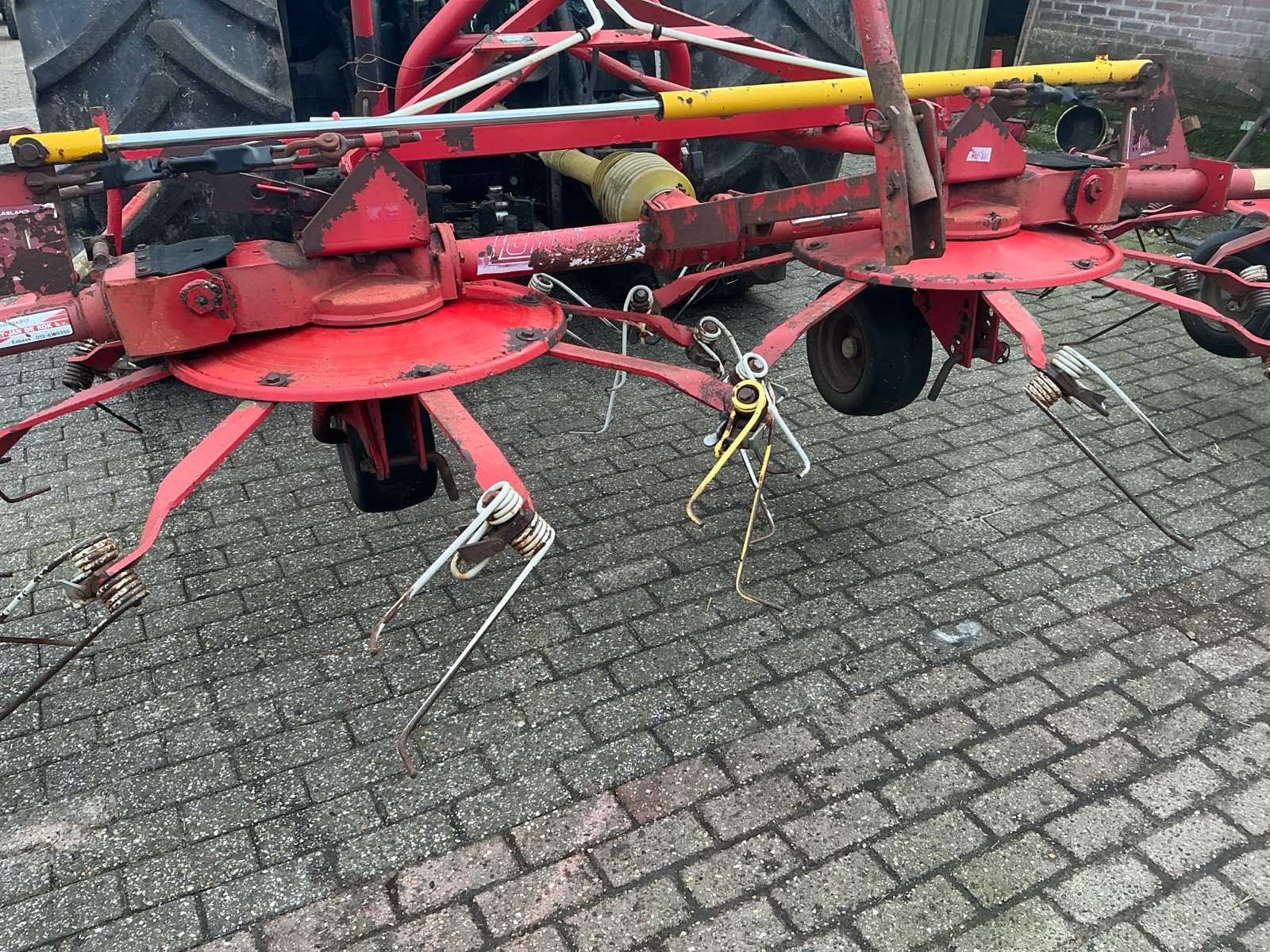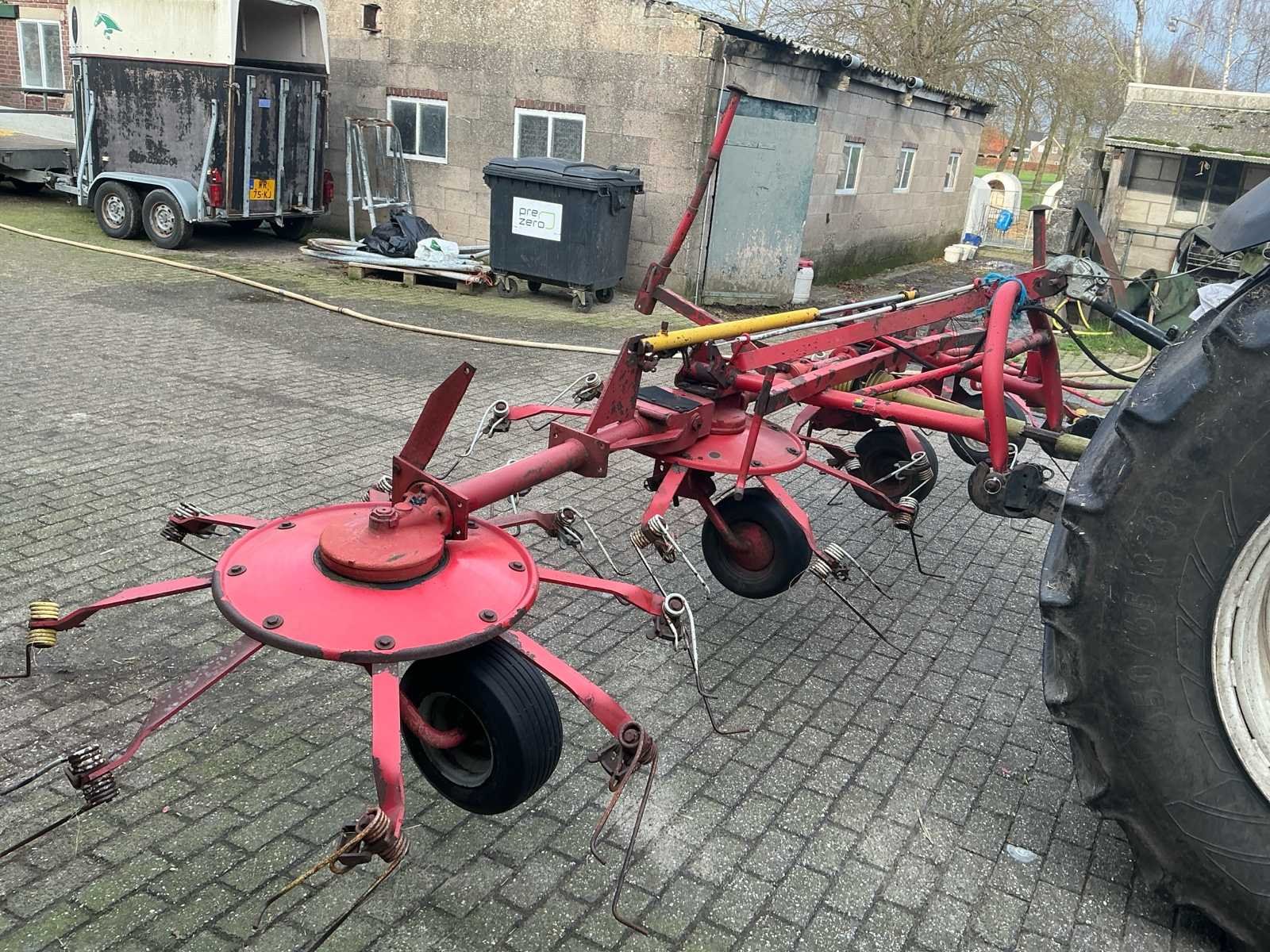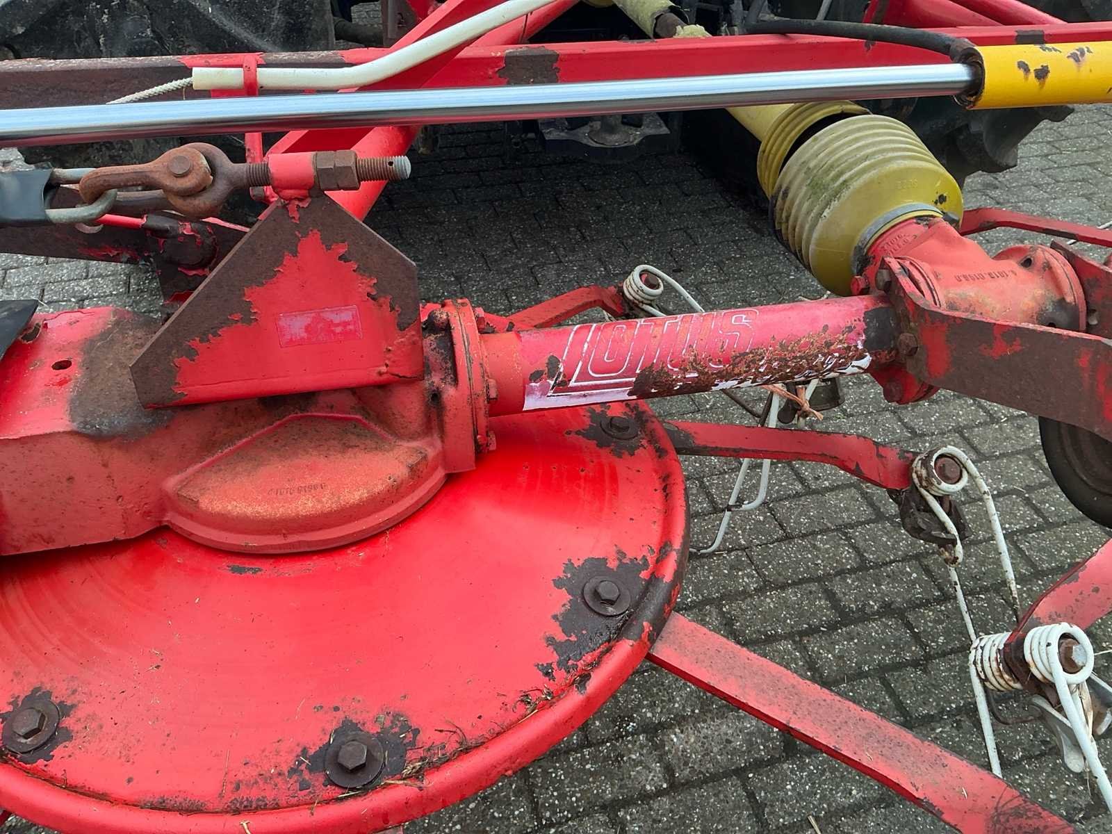 Voorzien van: Gedragen Lely Lotus hooischudder, 4 rotoren, werkbreedte ca. 6,0–6,5 m, aftakas (PTO) aangedreven, driepuntshef, individuele loopwielen per rotor, geschikt voor het schudden en spreiden van hooi/gras. No Merk: Lely Type: Lotus Serienummer: 9000503 Werkbreedte: 6500mm Totale afmeting L: 1600mm Totale afmeting Breedte: 2550mm Totale afmeting Hoogte: 1000mm