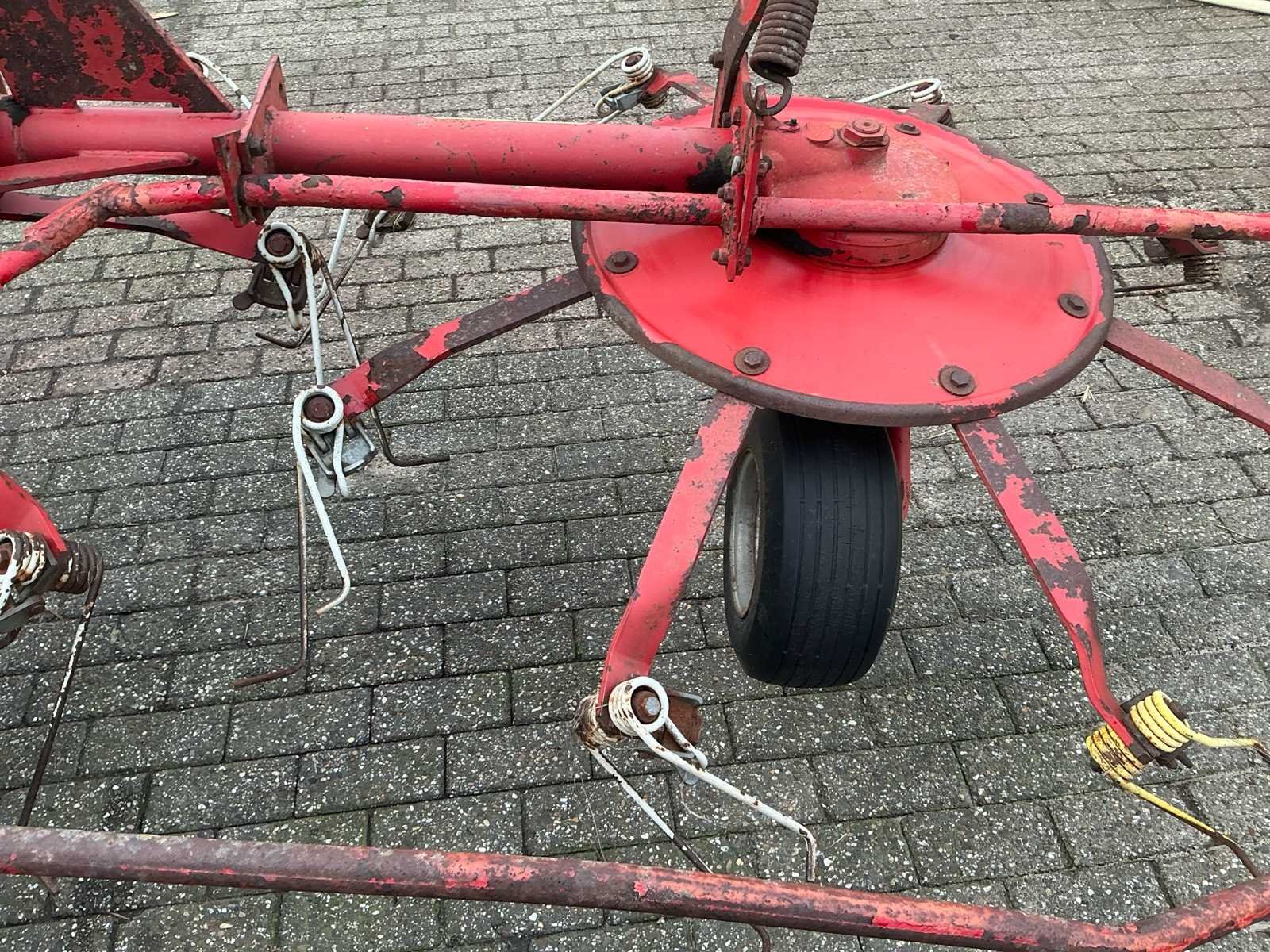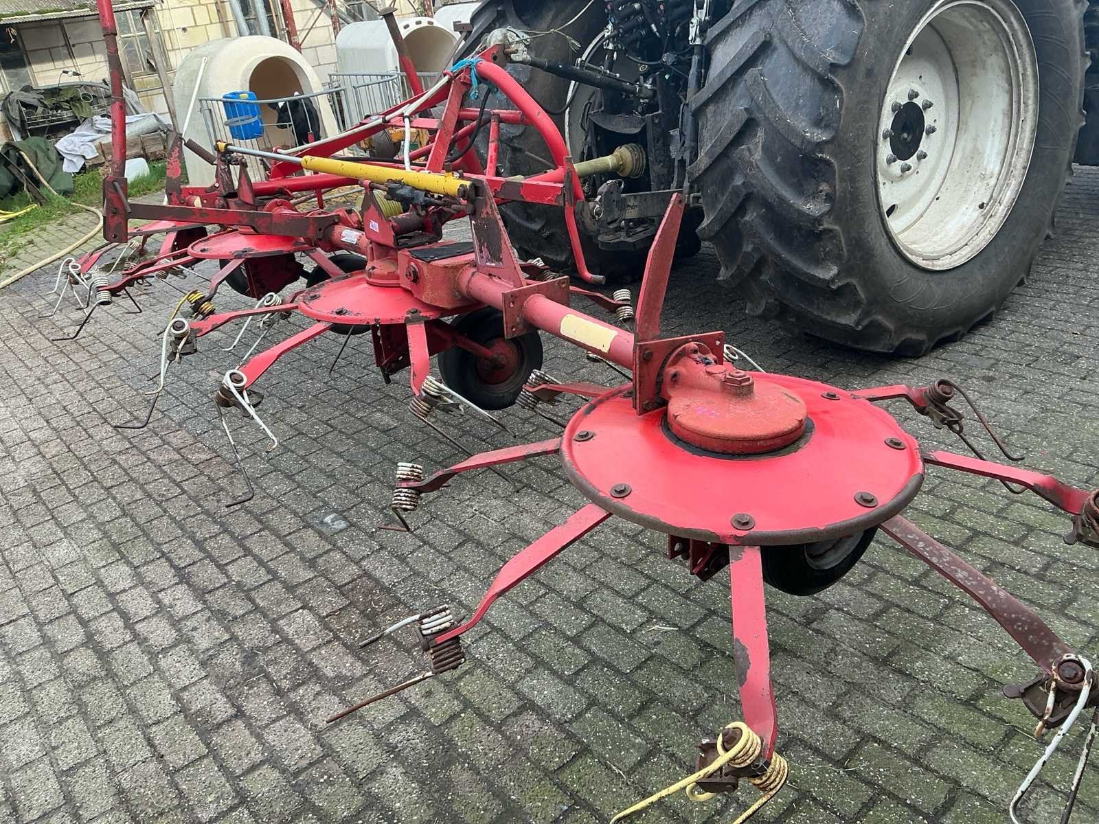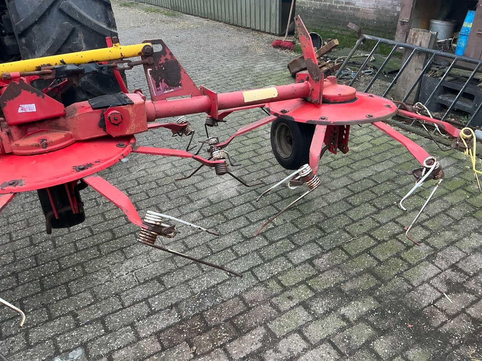 Voorzien van: Gedragen Lely Lotus hooischudder, 4 rotoren, werkbreedte ca. 6,0–6,5 m, aftakas (PTO) aangedreven, driepuntshef, individuele loopwielen per rotor, geschikt voor het schudden en spreiden van hooi/gras. No Merk: Lely Type: Lotus Serienummer: 9000503 Werkbreedte: 6500mm Totale afmeting L: 1600mm Totale afmeting Breedte: 2550mm Totale afmeting Hoogte: 1000mm