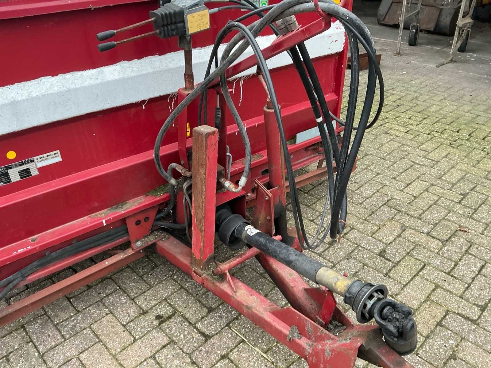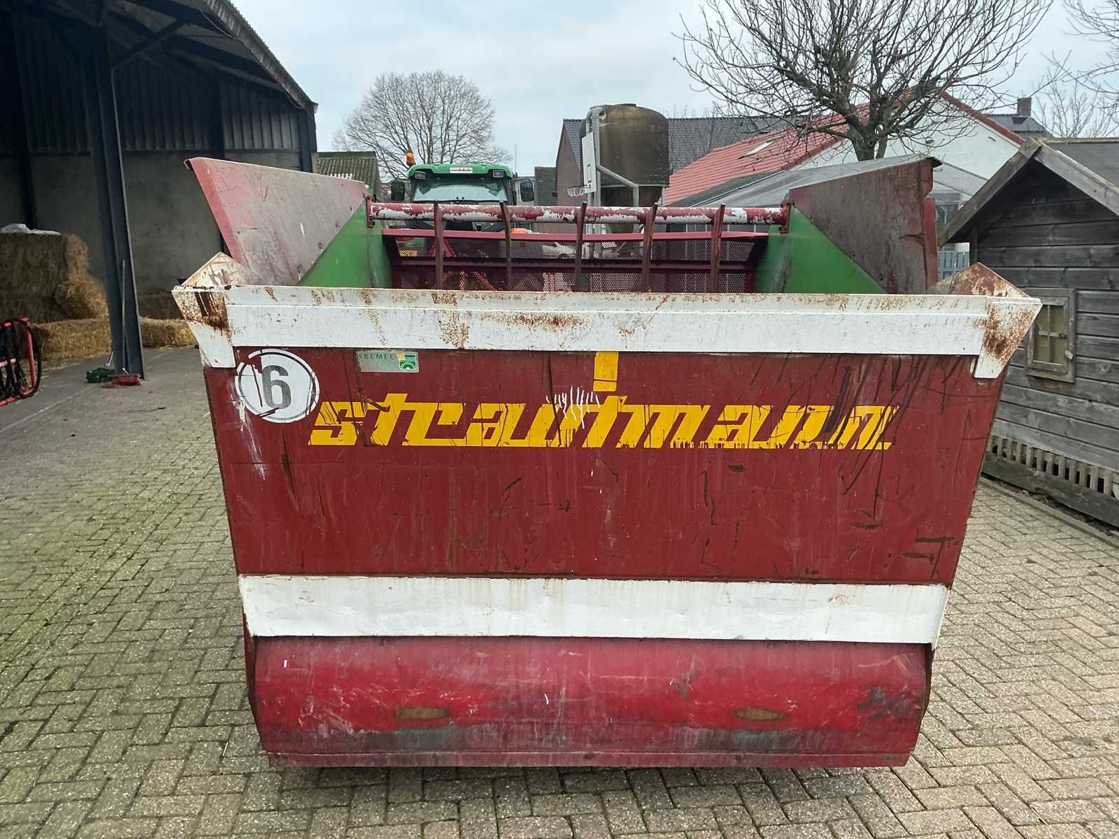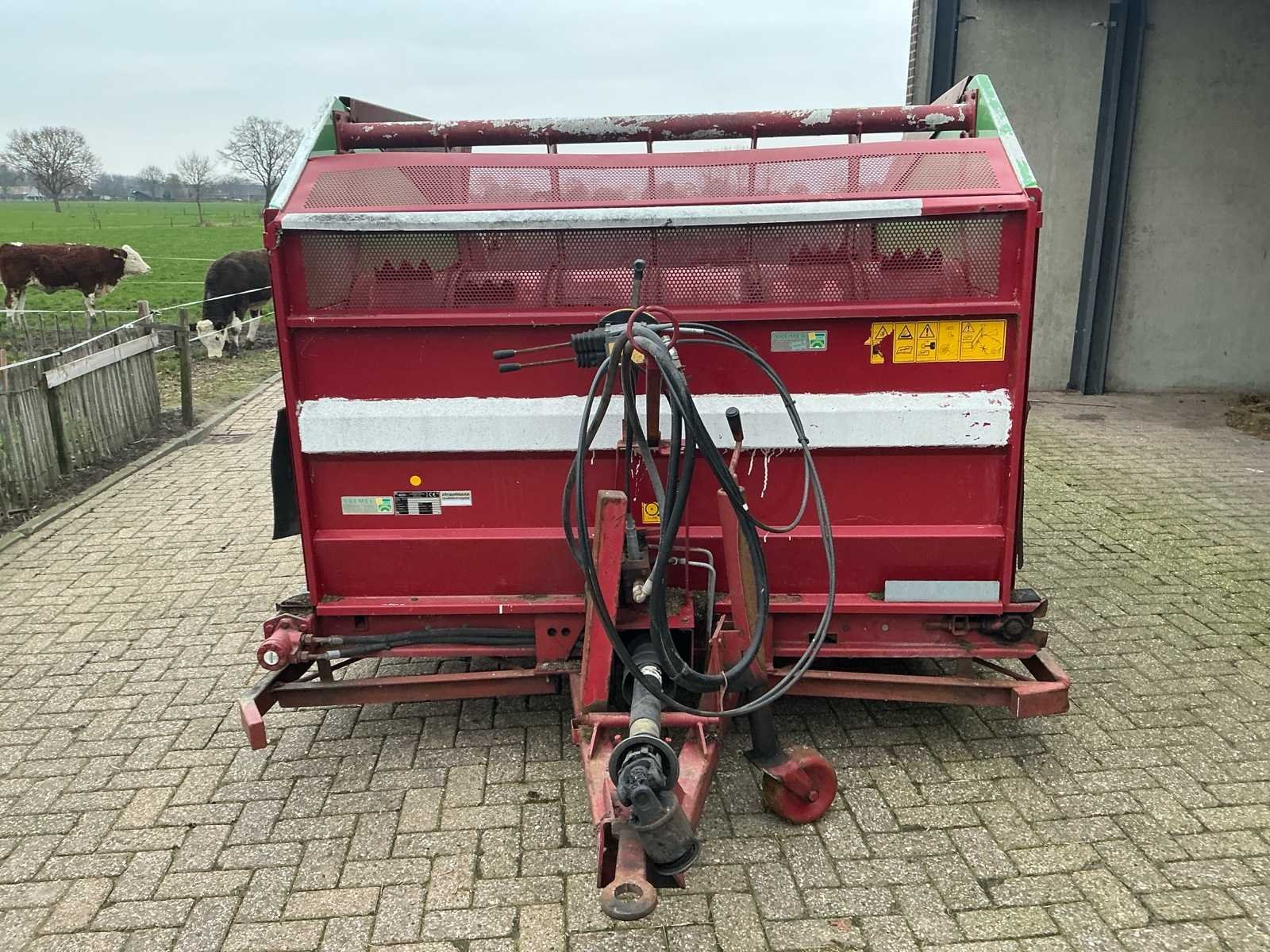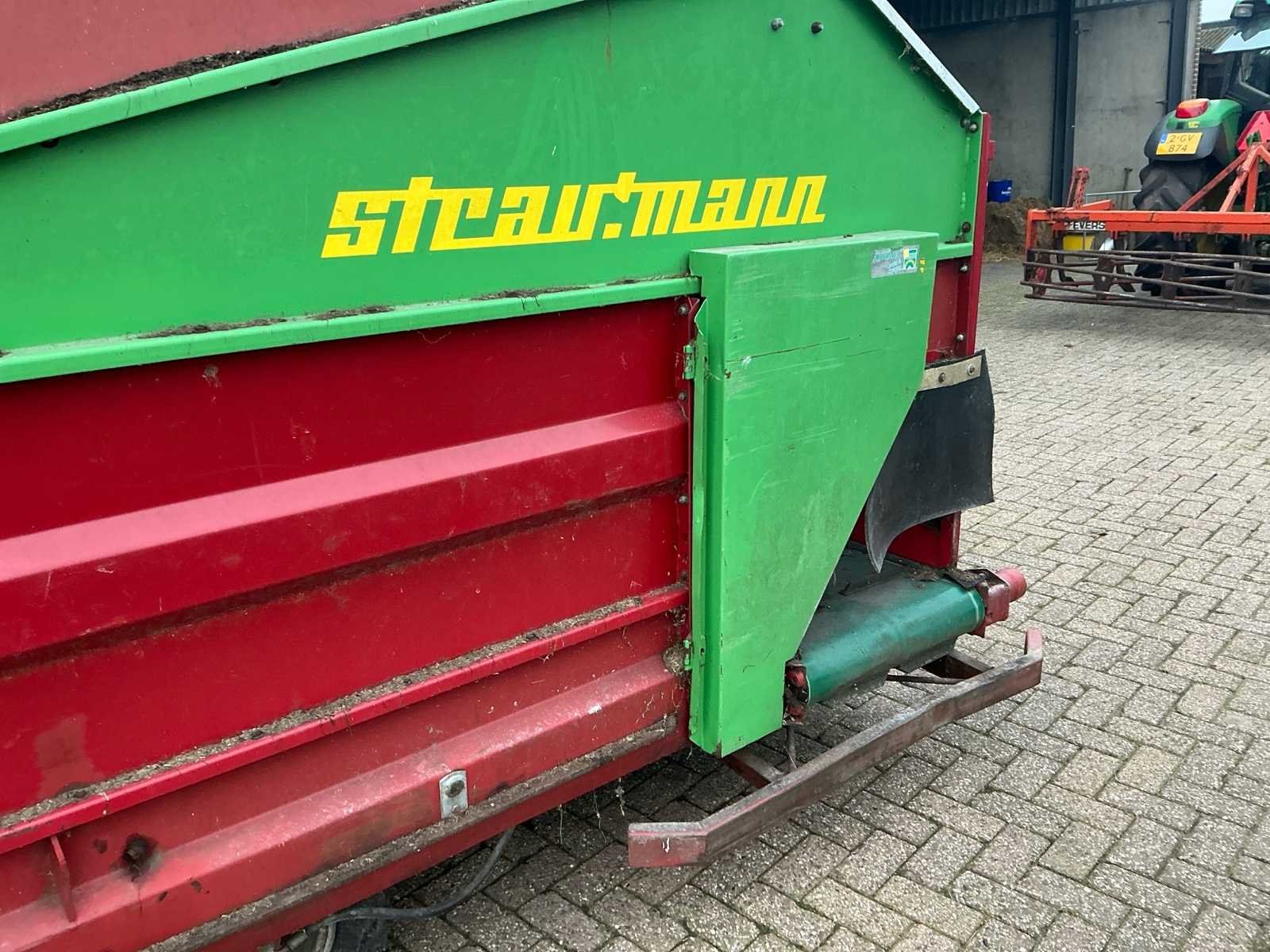 Voorzien van: Strautmann BVV getrokken voer-/strooimengwagen (bouwjaar ca. 1998–2003) met PTO 540 t/min, hydraulische aandrijving tot 210 bar, transportbandbodem met doseerrol, leeggewicht 1.600 kg, toegestaan totaalgewicht 3.600 kg, aslast achter 2.720 kg en steunlast 880 kg, CE-gekeurd. No Merk: Straumann Type: BVW Serienummer: 214030326 Eigen gewicht: 1600kg Totale afmeting L: 4000mm Totale afmeting Breedte: 2200mm Totale afmeting Hoogte: 2000mm
