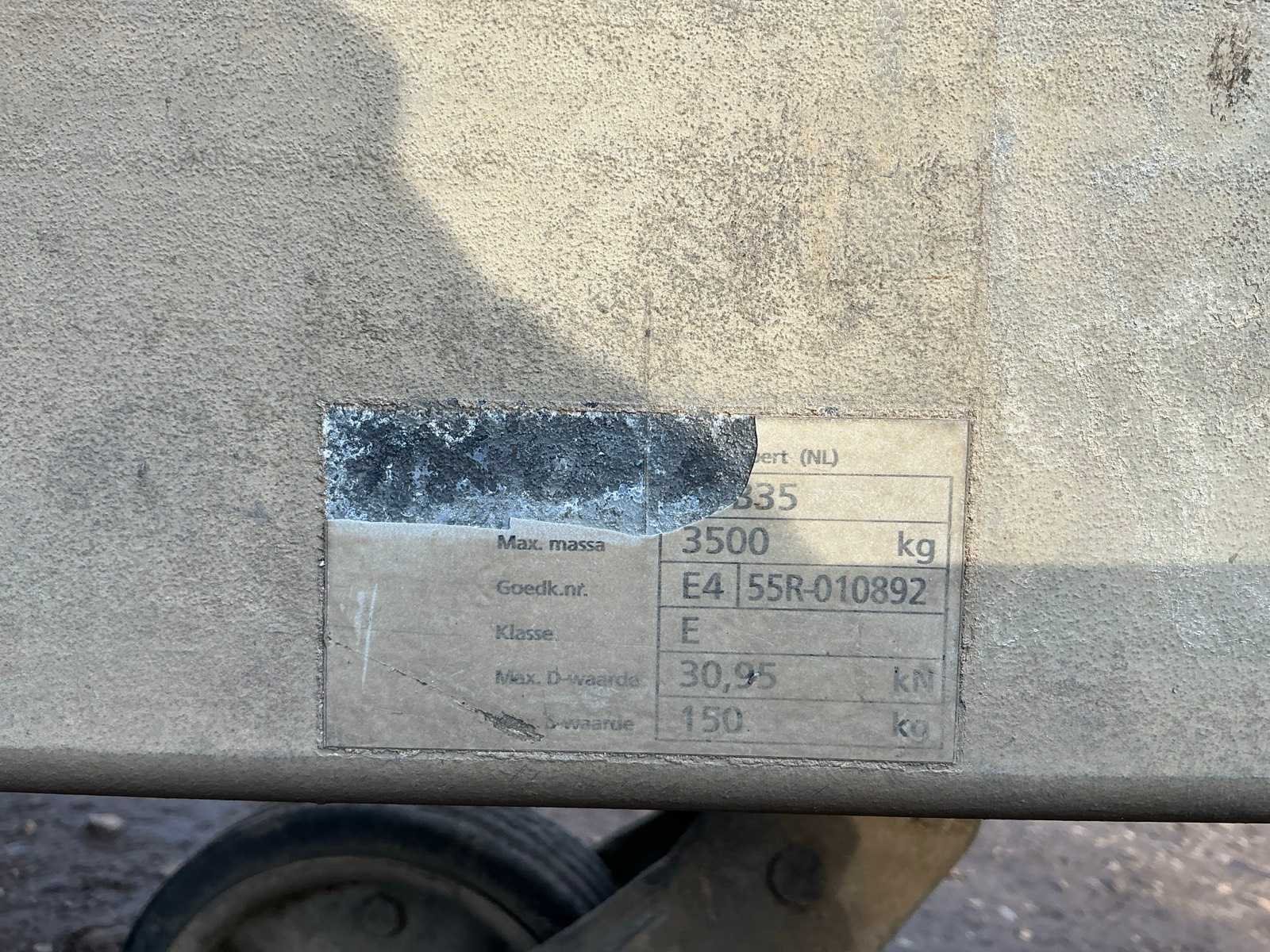 Laadvloer 3600x1750, bindhaken in vloer, 13 polige stekker, oprijklep 1450x1750mm, Nee Merk: Hapert Type: Machine Transporter Model: TA 3500 Bouwjaar: 2007 Chassisnummer: LXLH00000000829938 Aantal assen: 2 Laadbak afmeting l: 3600cm Laadbak afmeting b: 1750cm Ledig gewicht: 950kg Laadvermogen: 2550kg Datum eerste toelating: 2020-04-22 Datum eerste toelating (NL): 2020-04-22 Kenteken: 59-WX-DB Hoogte: 1850cm Lengte: 5500cm Breedte: 2300cm Nationaliteit documenten: Nederland