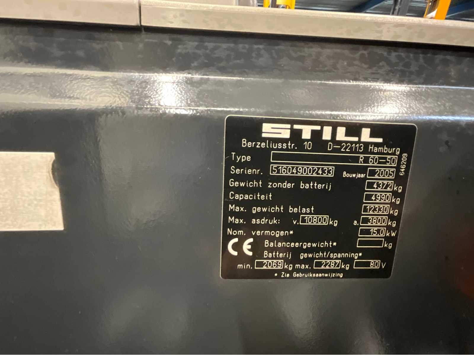 Nieuwe vorken 2024 2400x150x50 Nee Merk: Still Type: R60-50 Bouwjaar: 2005 Serienummer: 516049002433 Brandstof: Elektrisch Mast: Duplex Soort band: Volrubber banden Aantal wielen: 4 Hydraulisch verstelbare lepels: true Duplex mast: true Eigen gewicht: 6659kg Hefvermogen: 5000kg Lepellengte: 2400mm Max. hefhoogte: 3500mm Hefhoogte: 3500mm Vol rubber banden: true Minimale doorrijhoogte: 2600mm Totale afmeting L: 1400mm Totale afmeting Breedte: 1600mm