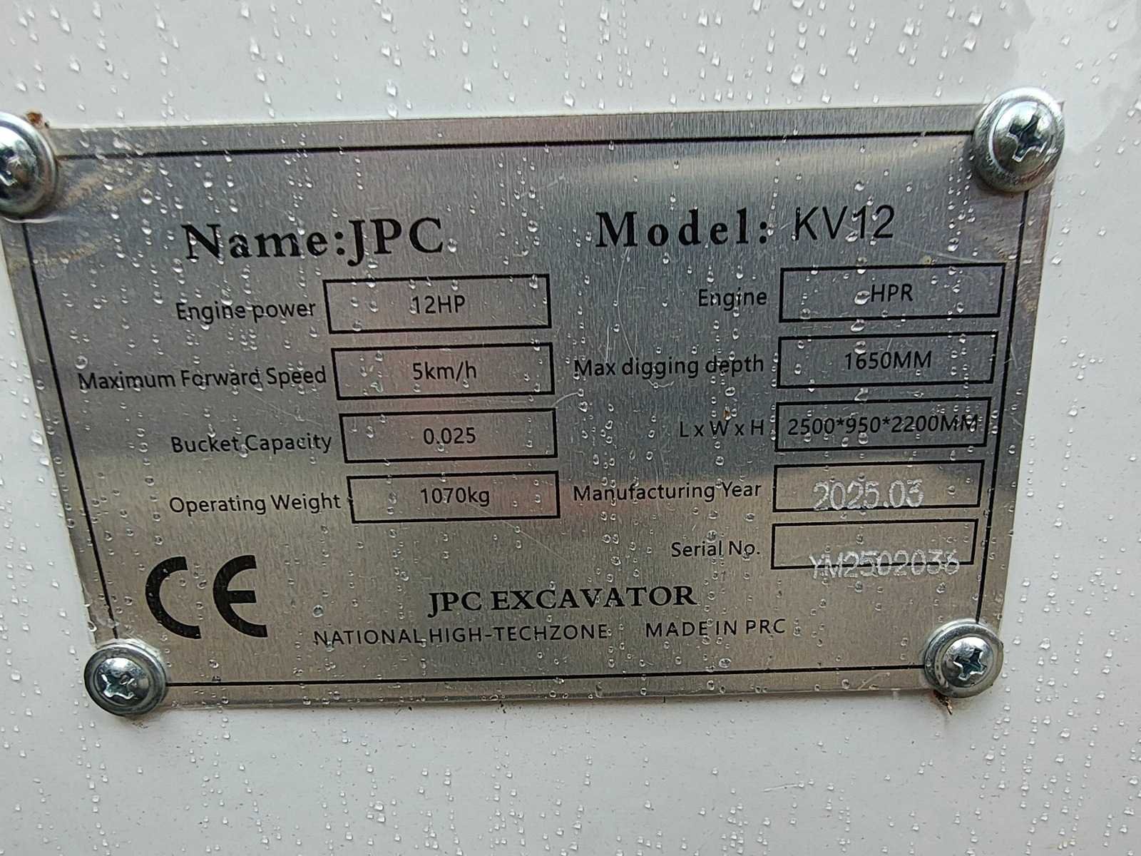 Ongebruikte minigraafmachine Nee Merk: JPC Type: KV12 Bouwjaar: 2025 Merk motor: HPR Motorvermogen (kW): 10kW Aantal cilinders: 1 Eigen gewicht: 1070kg