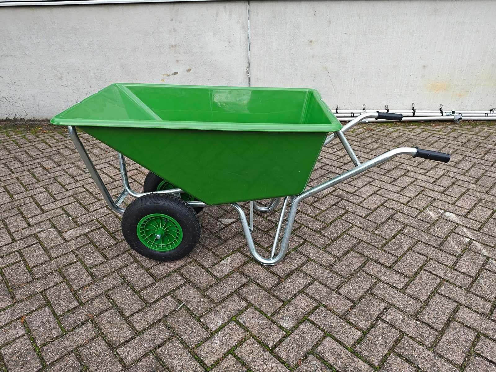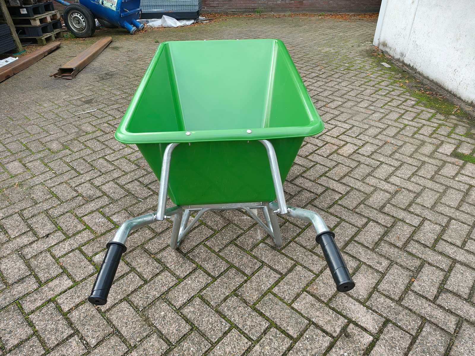 Kruiwagen 2 wielen kunststof bak 160 liter groen luchtband, moet afgemonteerd worden, ongebruikt Nee Model: 160 liter