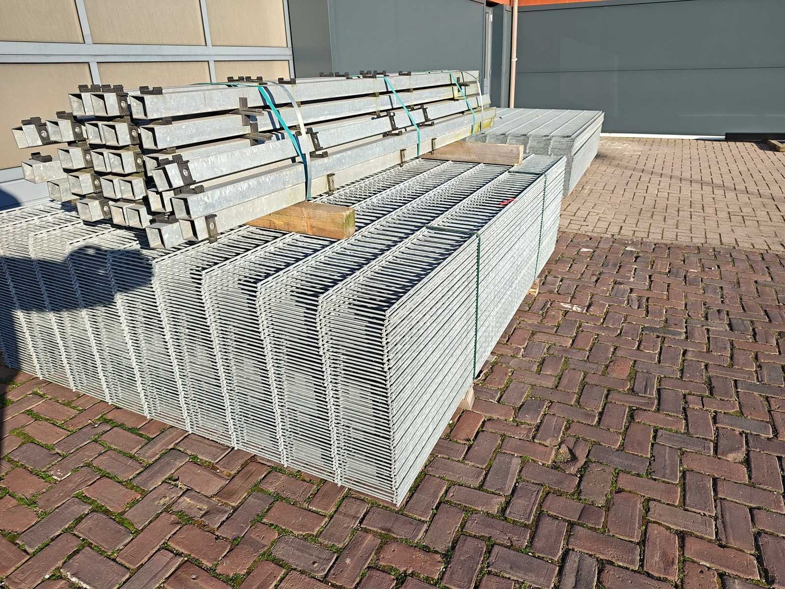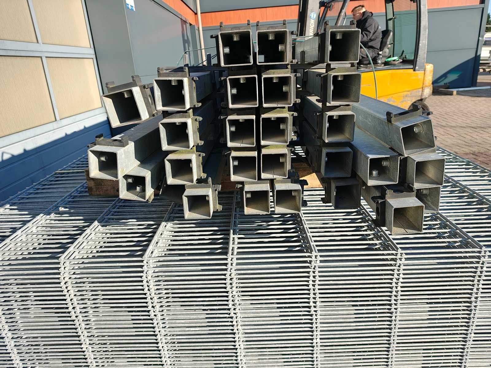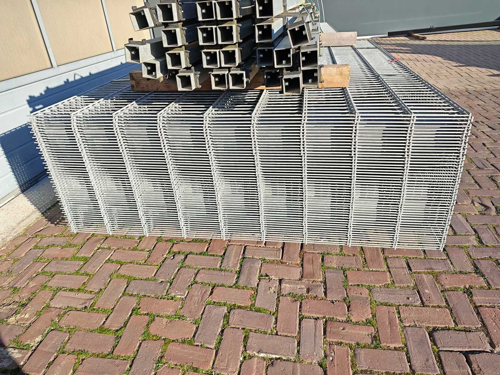 Partij 50x dubbelstaafs hekwerkpanelen gegalvaniseerd 183 hoog 8 / 6 / 8 - met palen 27x