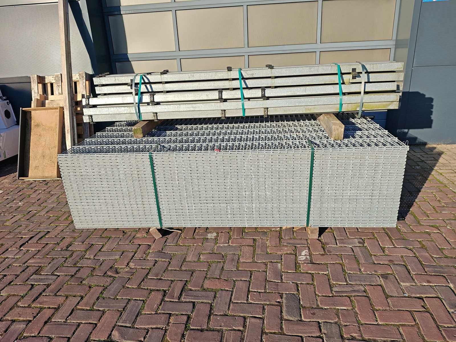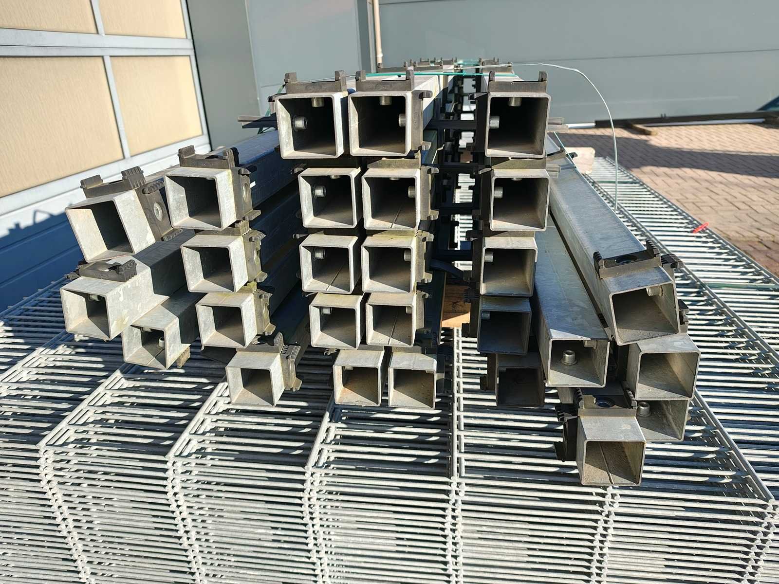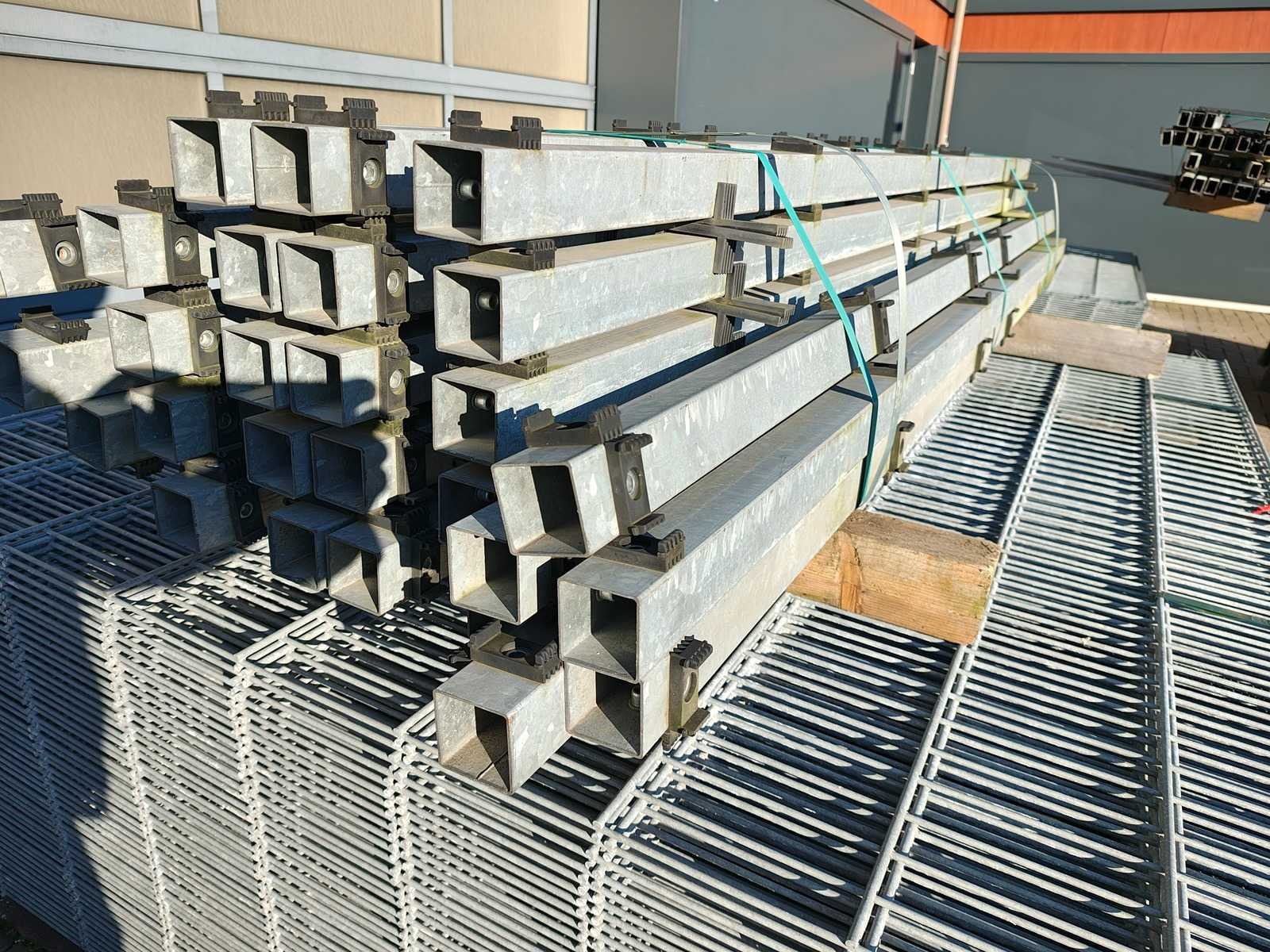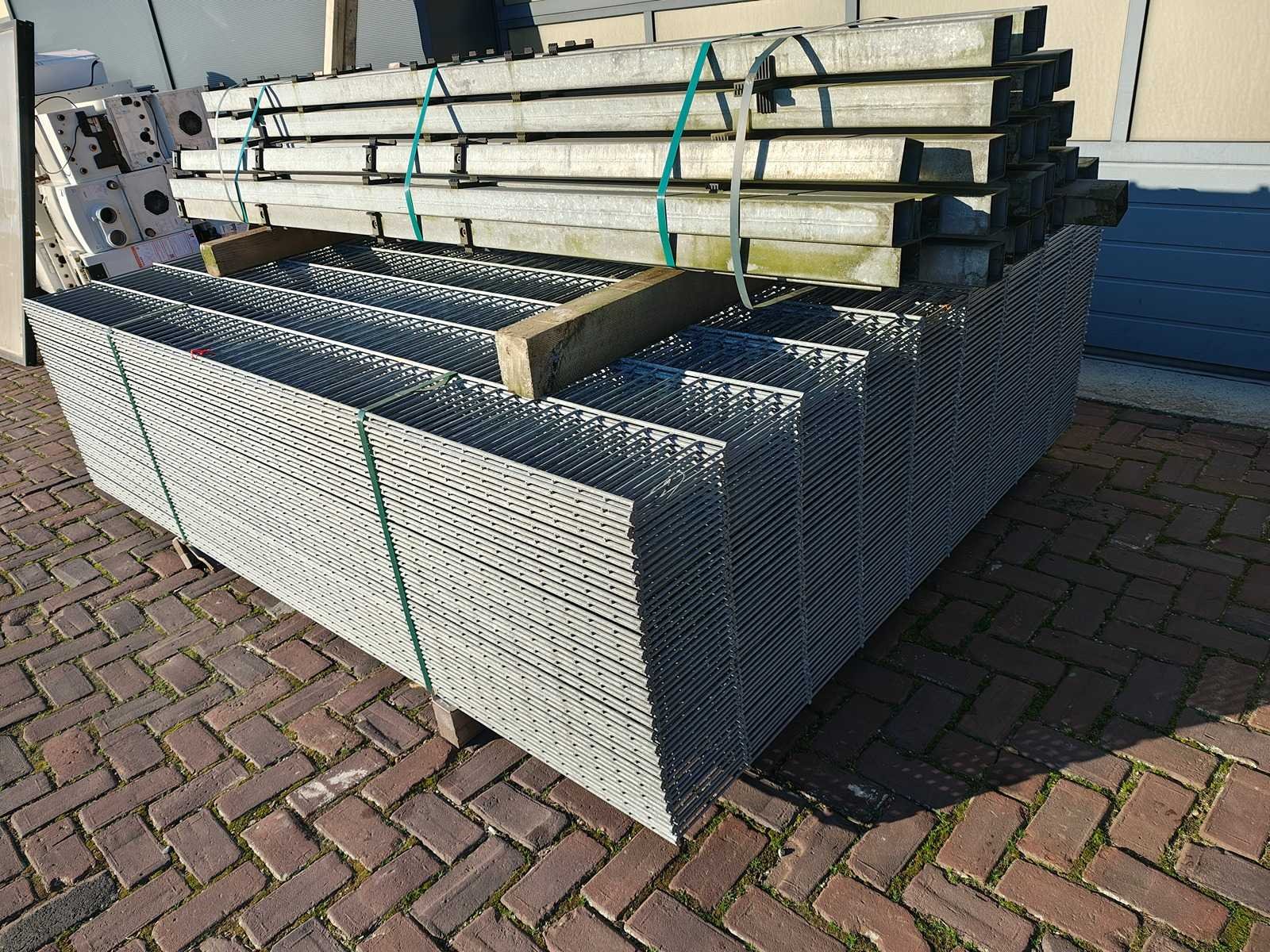 Partij 50x dubbelstaafs hekwerkpanelen gegalvaniseerd 183 hoog 8 / 6 / 8 - met palen 27x