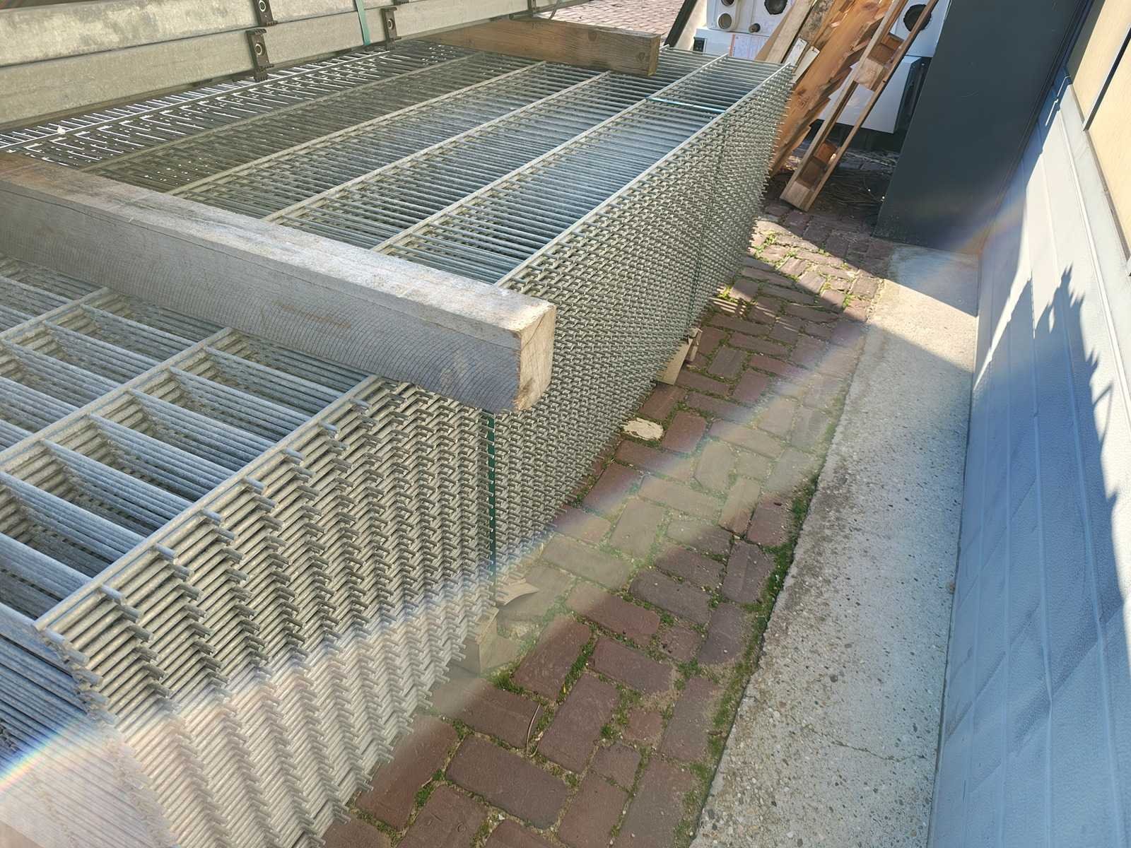 50 matten met 27 palen; afmeting 2500x1830 mm; maas grootte 50x200 mm; transport afmeting circa 2500x1830x1300 mm; zonder bevestigingsmaterialen; dikte 8/6/8mm ongebruikt let op max 27 palen 250cm lengte Nee Product type: 8 / 6 / 8 Kleur: gegalvaniseerd Gewicht: 2250kg Lengte: 250cm Hoogte: 183cm
